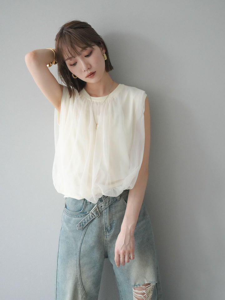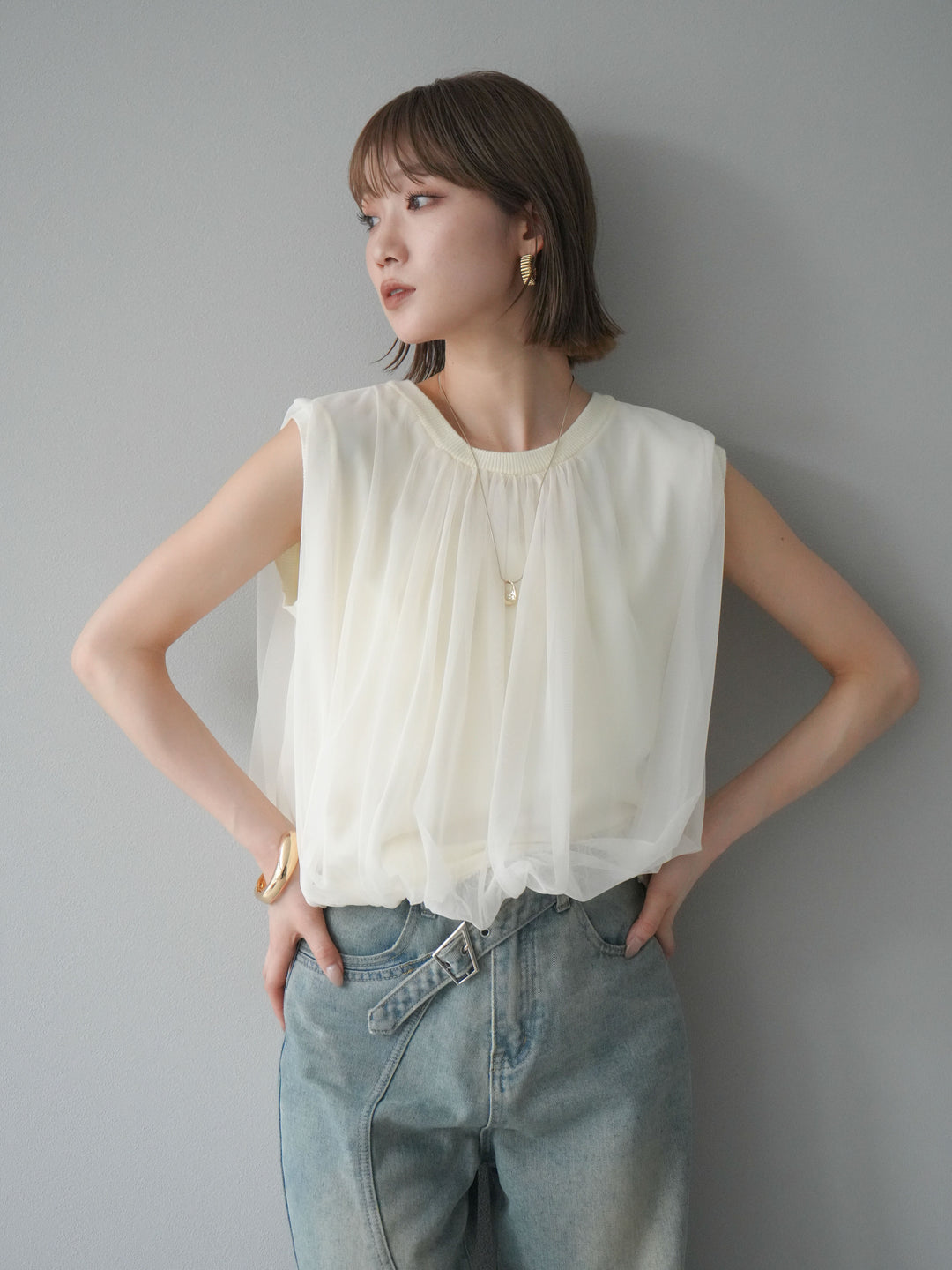 [予約]チュールドッキング2WAYベスト/アイボリー