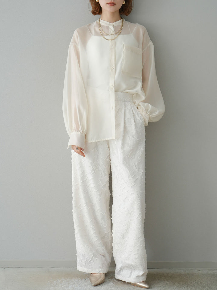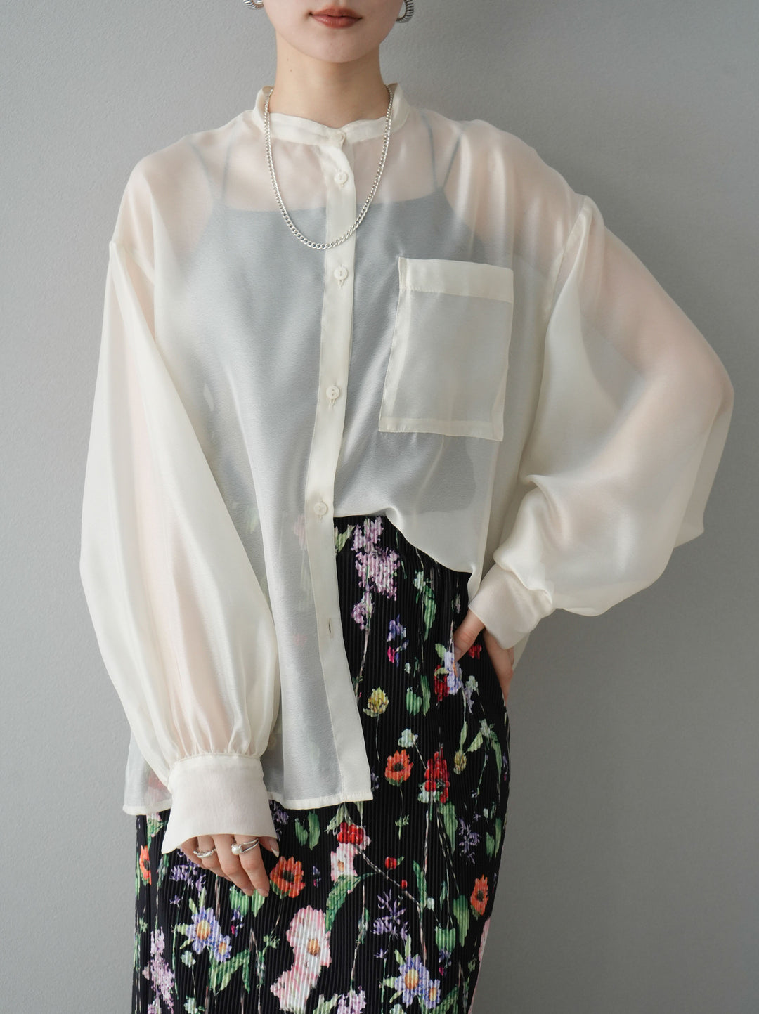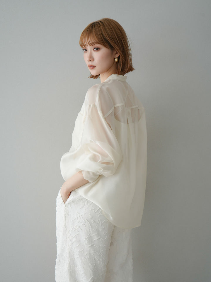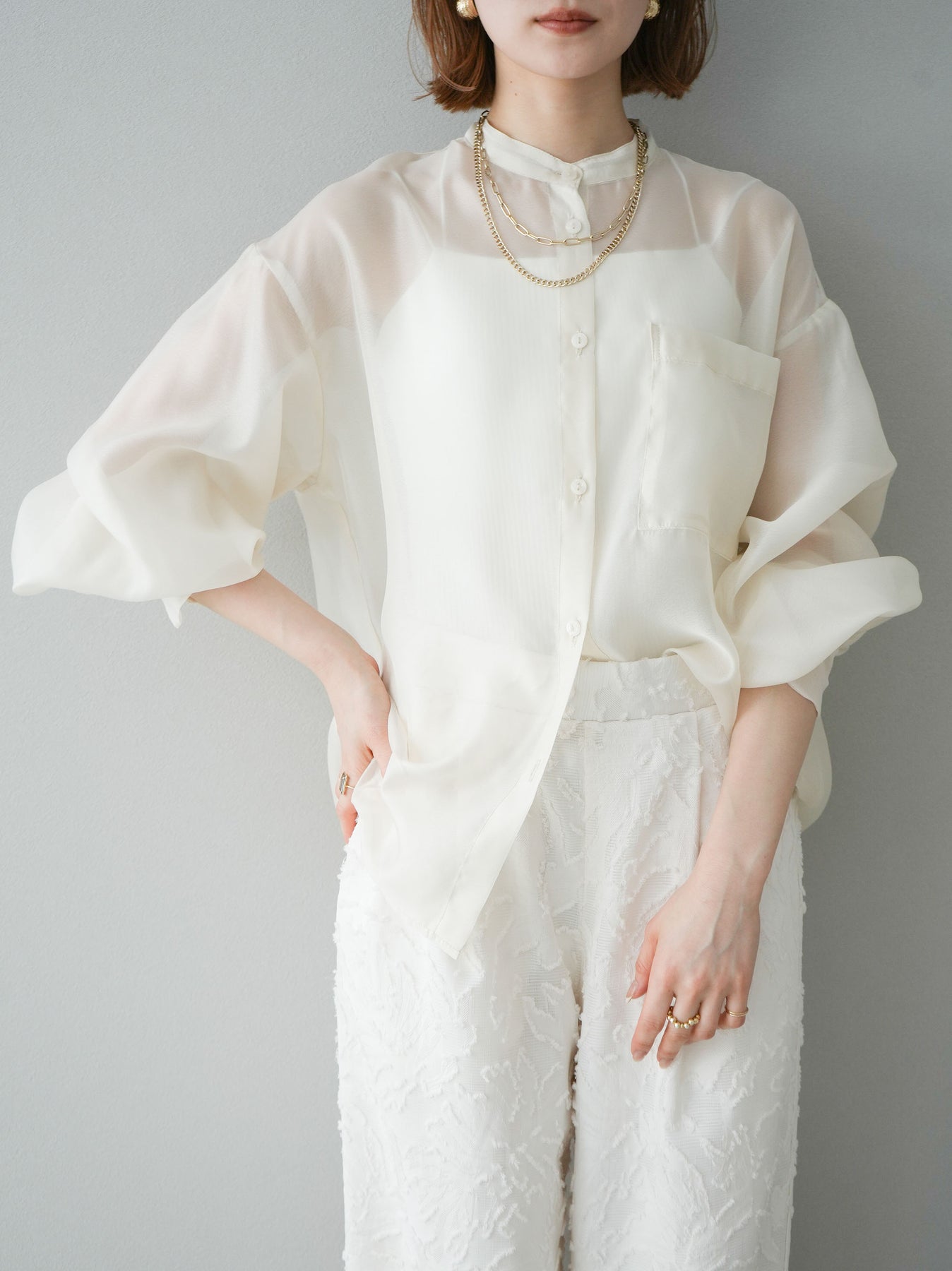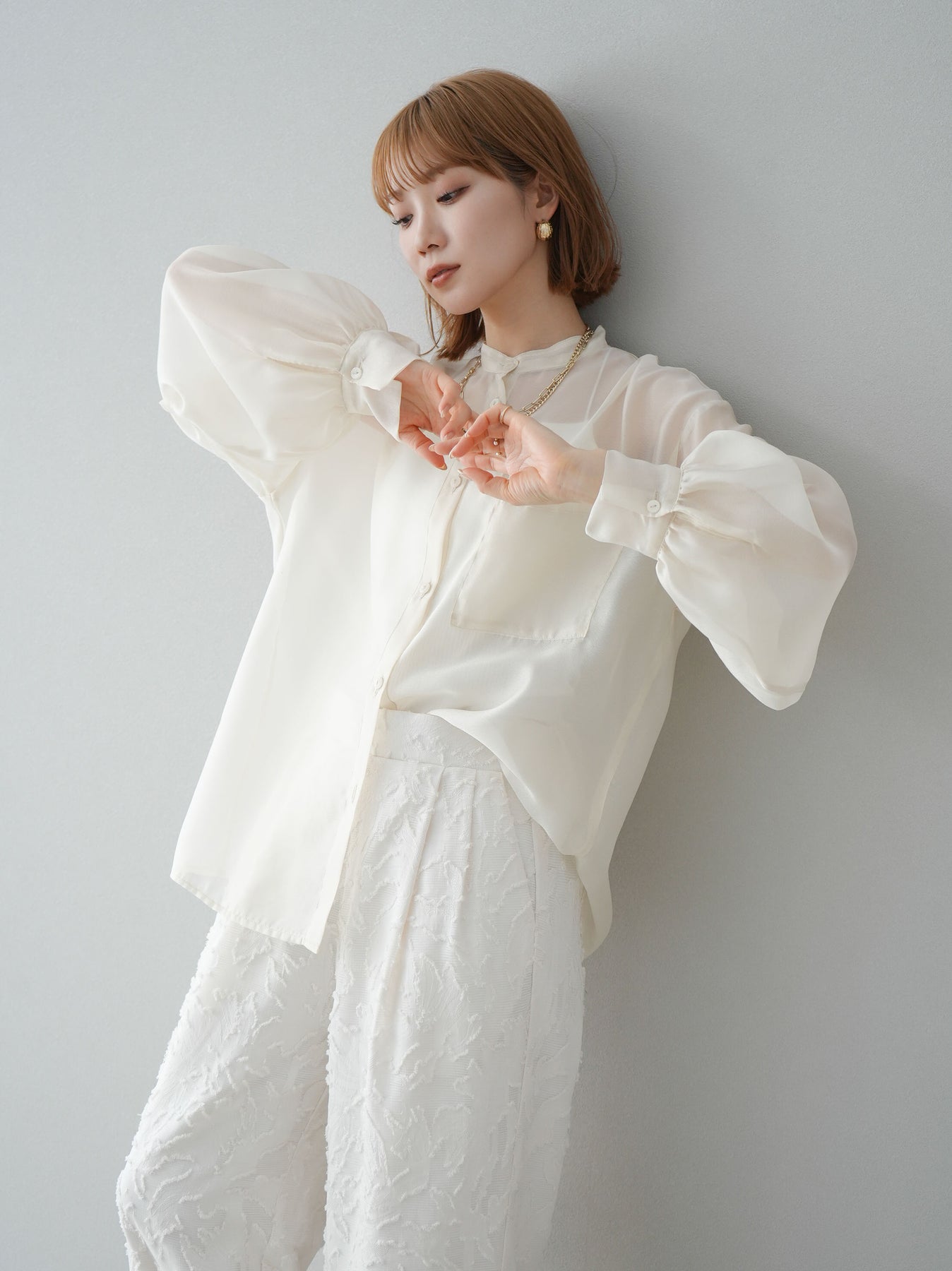 [予約]シアーシャイニーボリュームスリーブシャツ/アイボリー