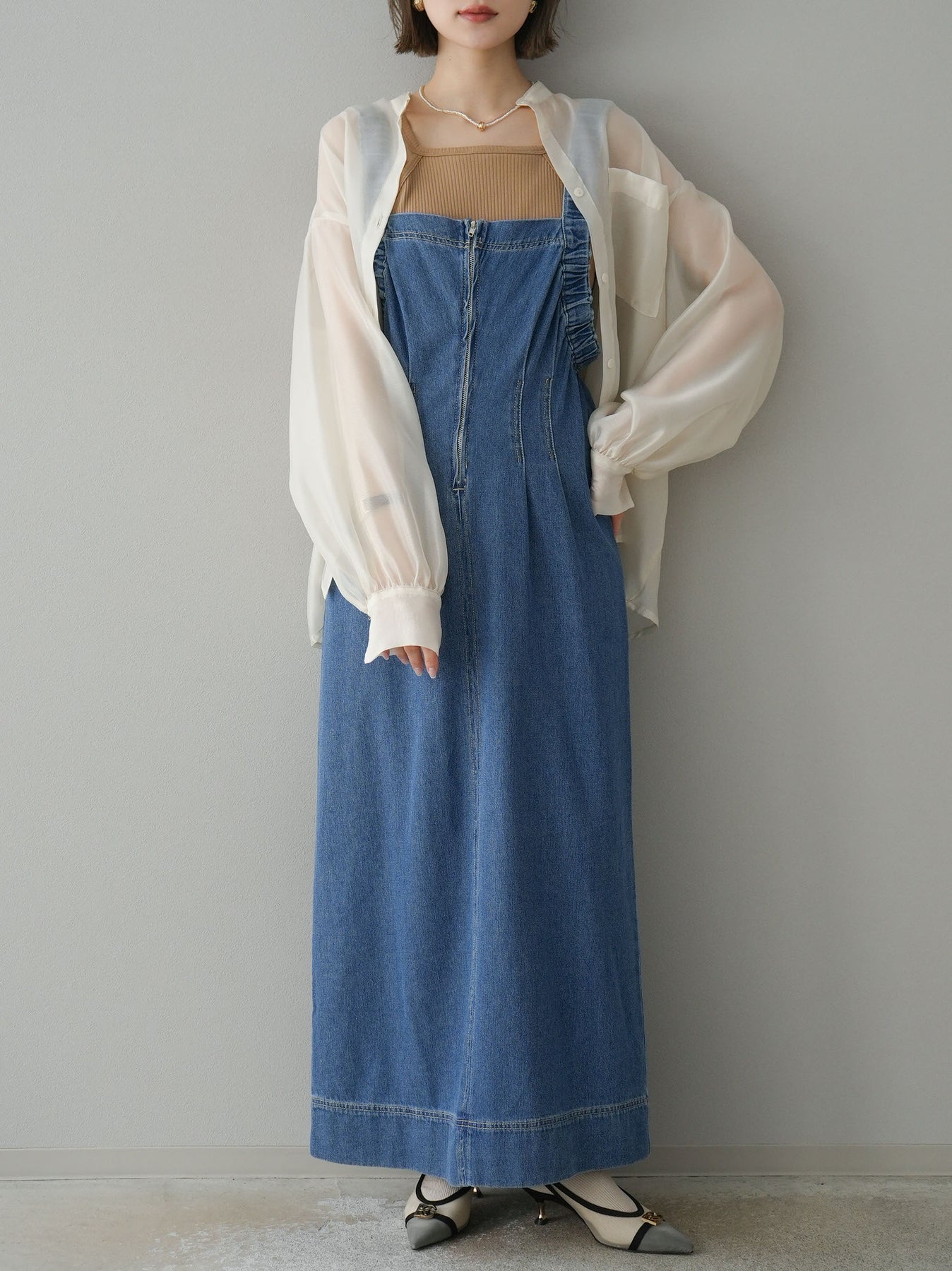 ほんのり光沢感のあるシアー素材が上品なボリュームスリーブシャツ。程よい透け感が軽やかさを演出し、トレンド感のあるスタイリングが叶います。ボリュームのある袖デザインがポイントで、シンプルながらも存在感のある一枚。羽織りとしても使えるので、幅広いコーディネートに活躍。 ※ボトムス、キャミソール(インナー)以外の商品は一律でインナーは付属していません。
