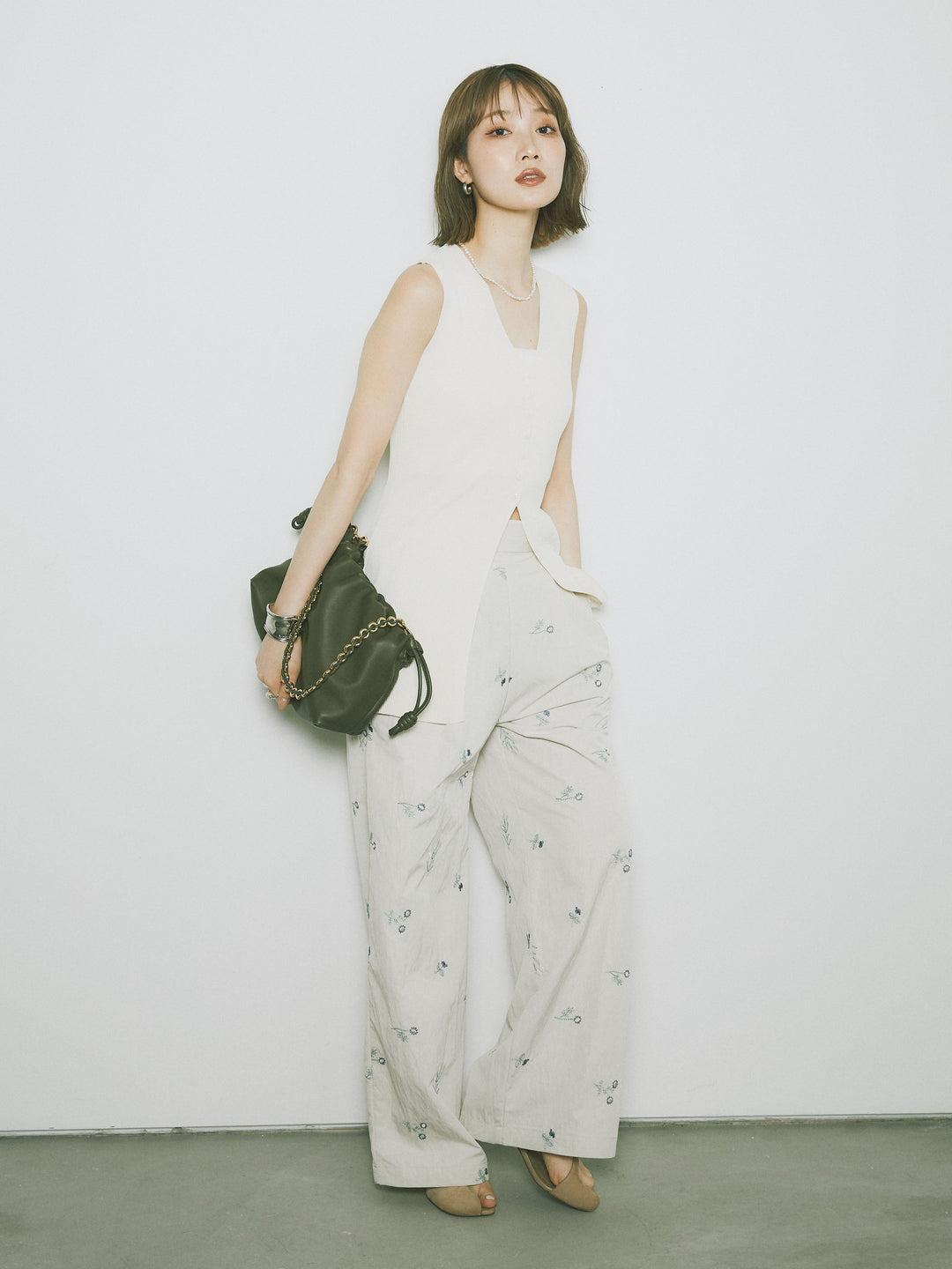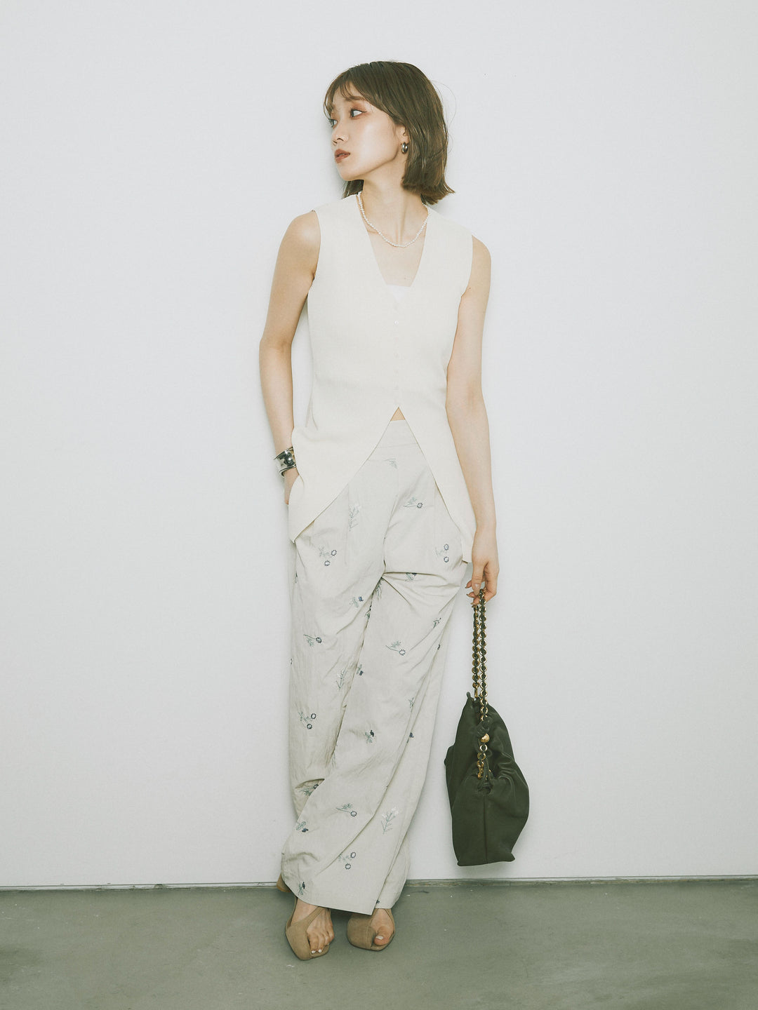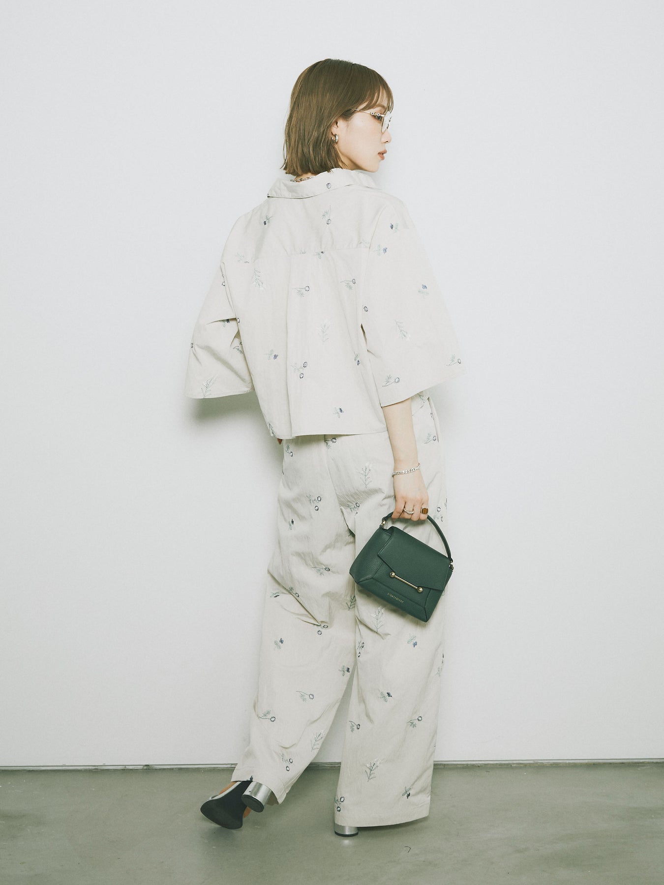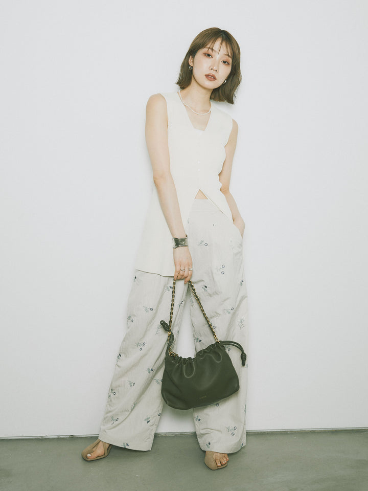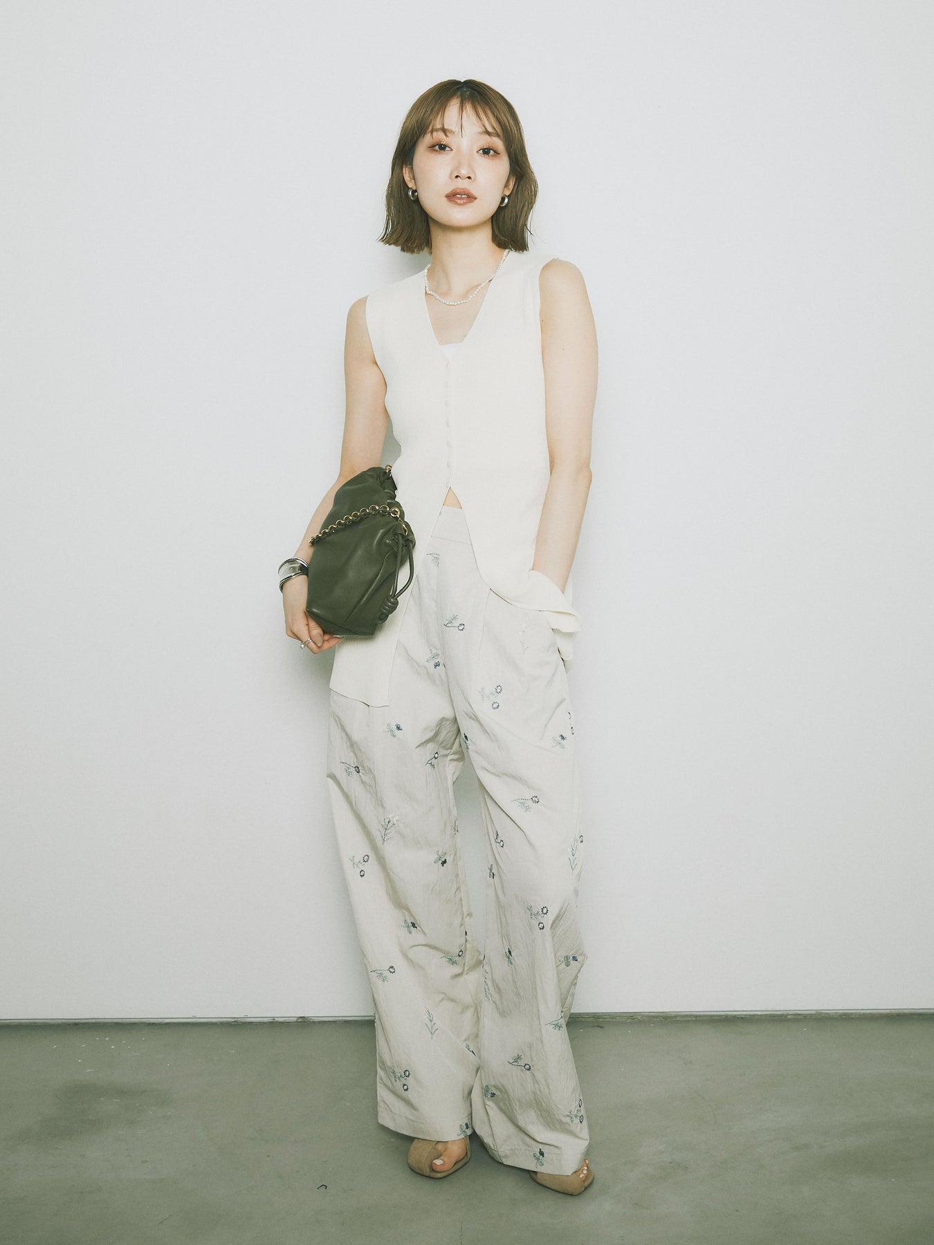 [予約]フラワー刺繍タフタタックパンツ/エクリュ