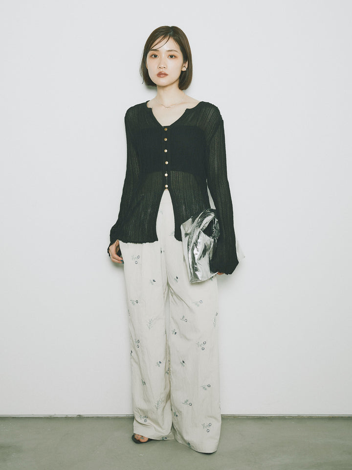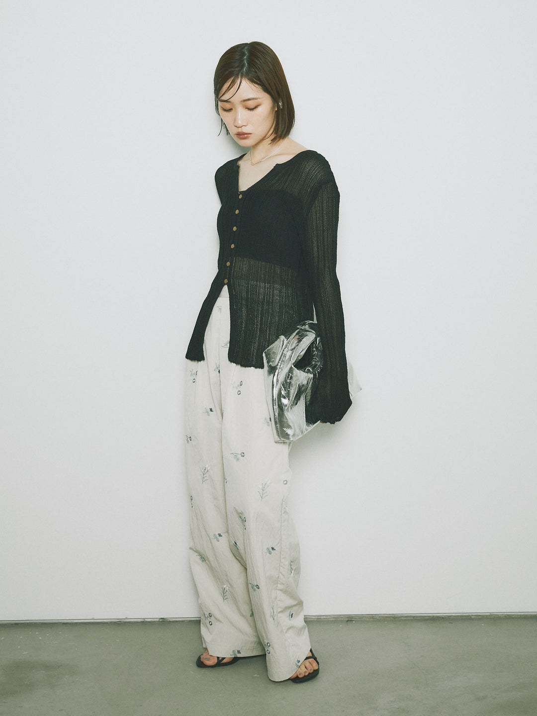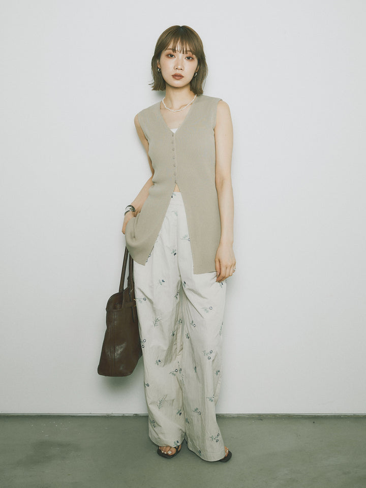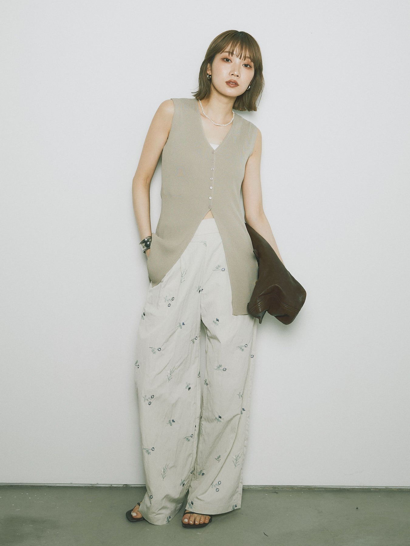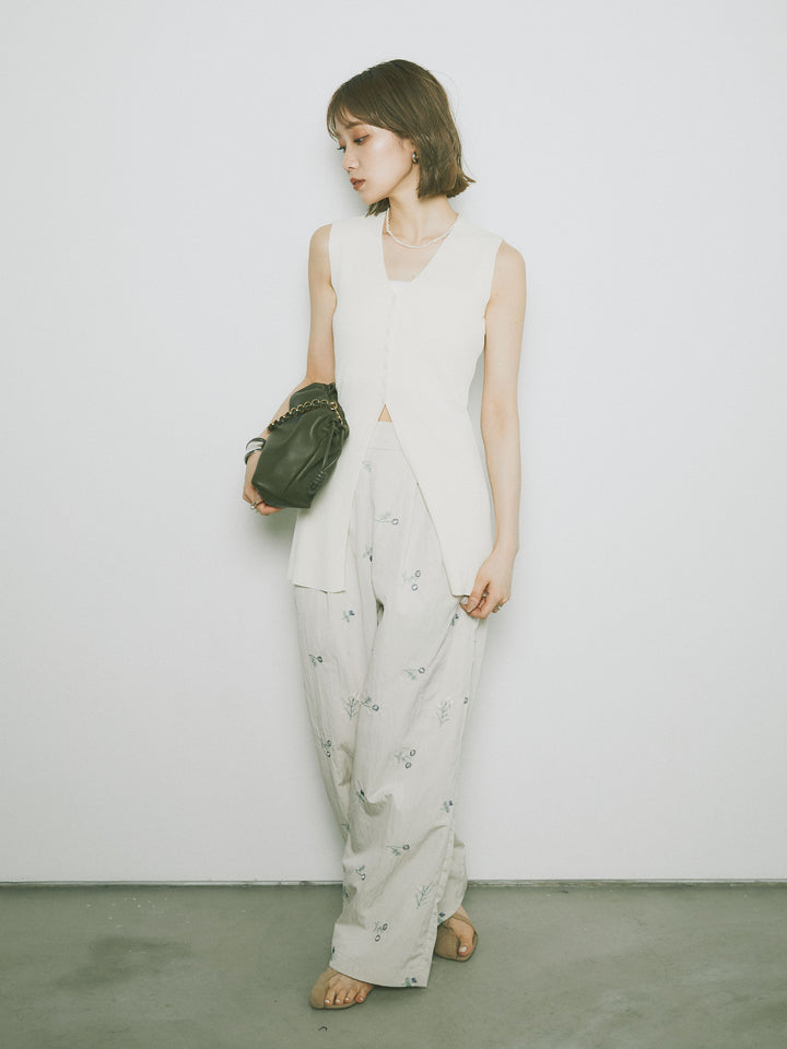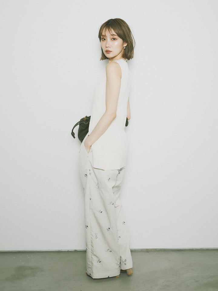 [予約]フラワー刺繍タフタタックパンツ/エクリュ