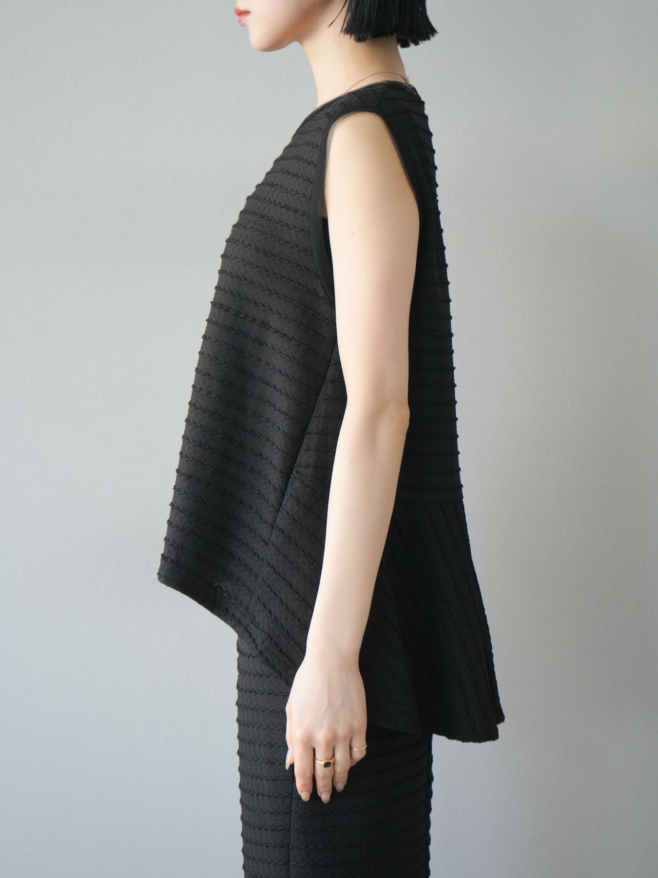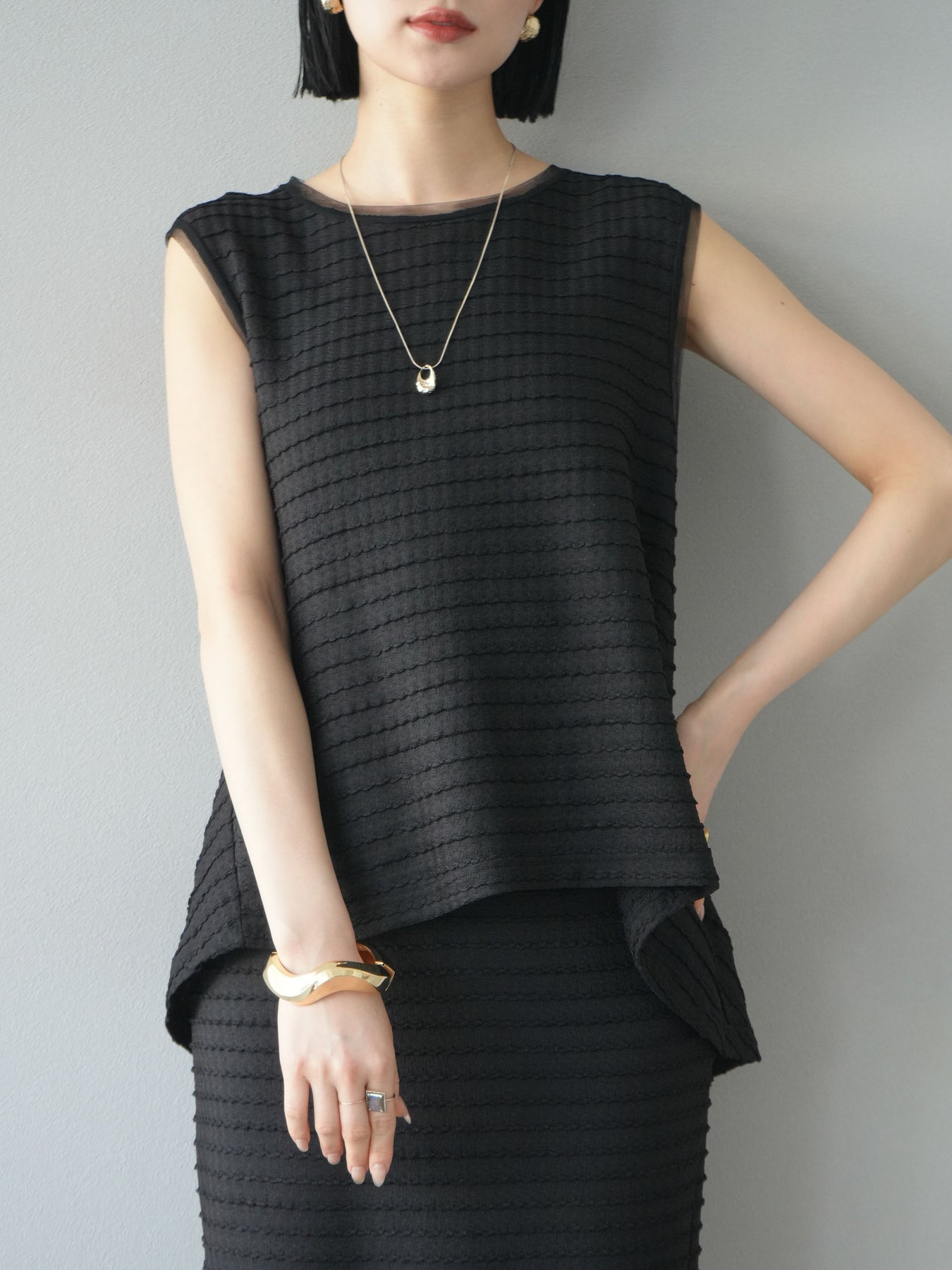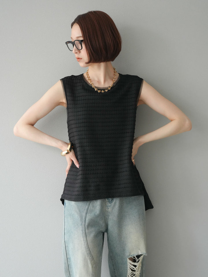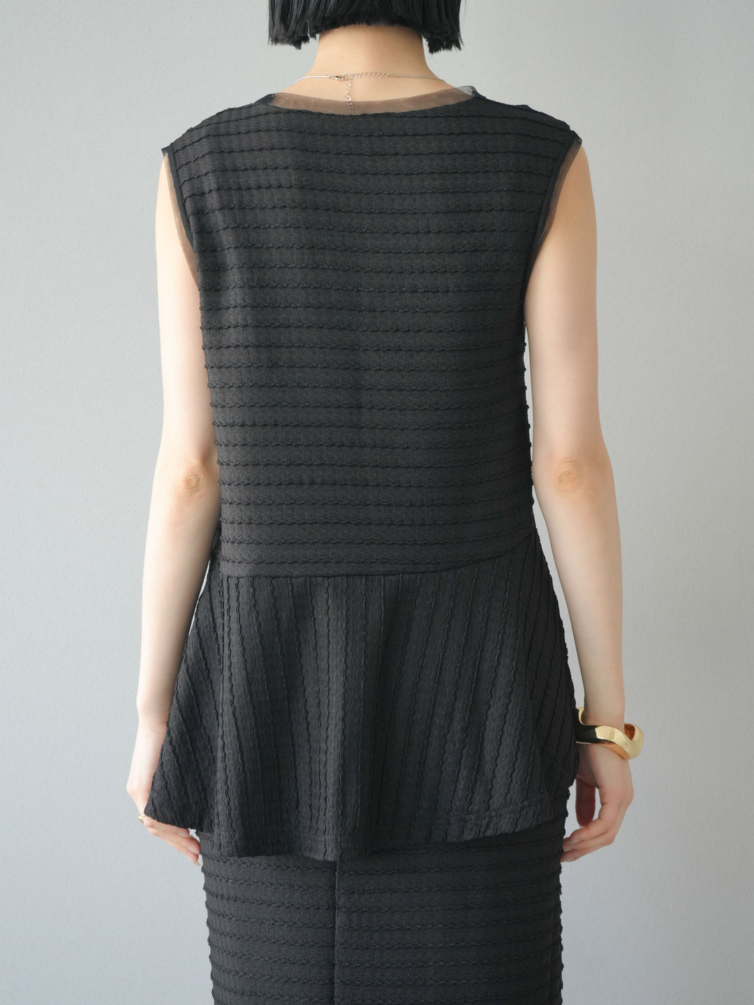 [予約]ジャガードウェーブぺプラムノースリーブ/ブラック