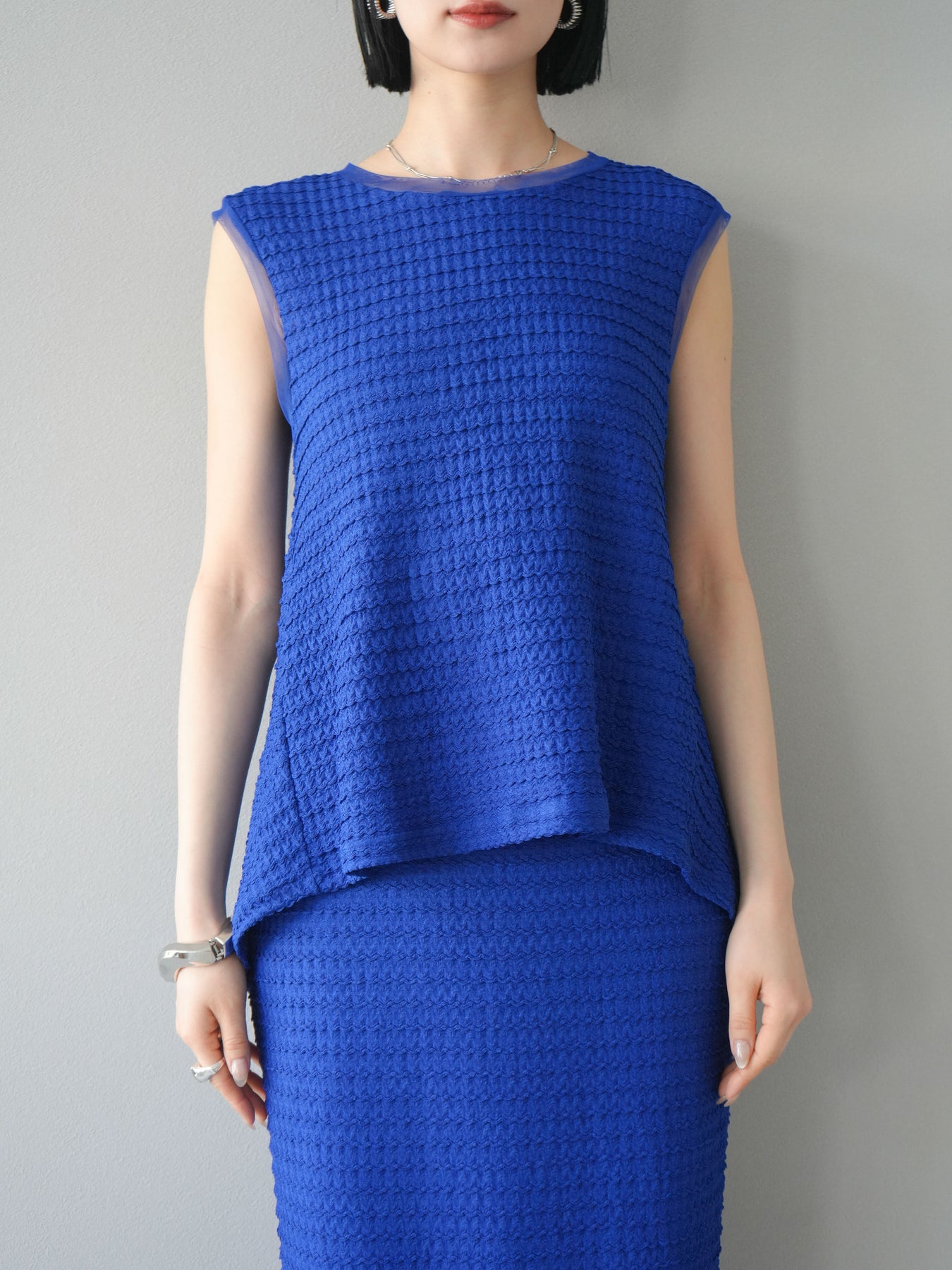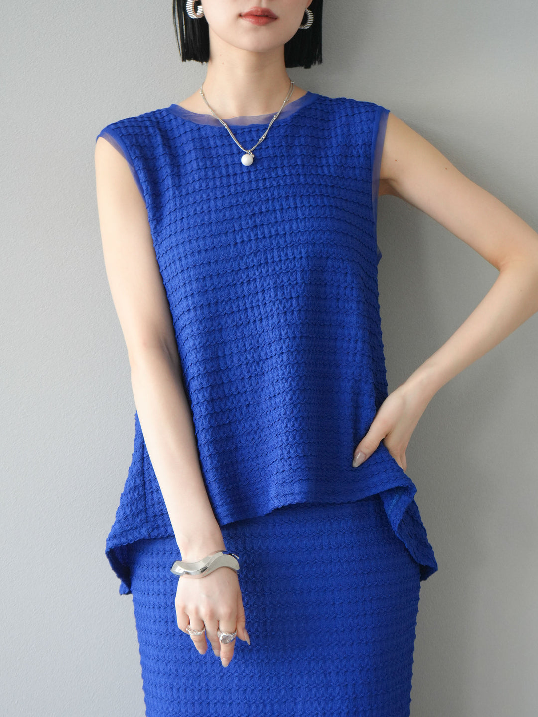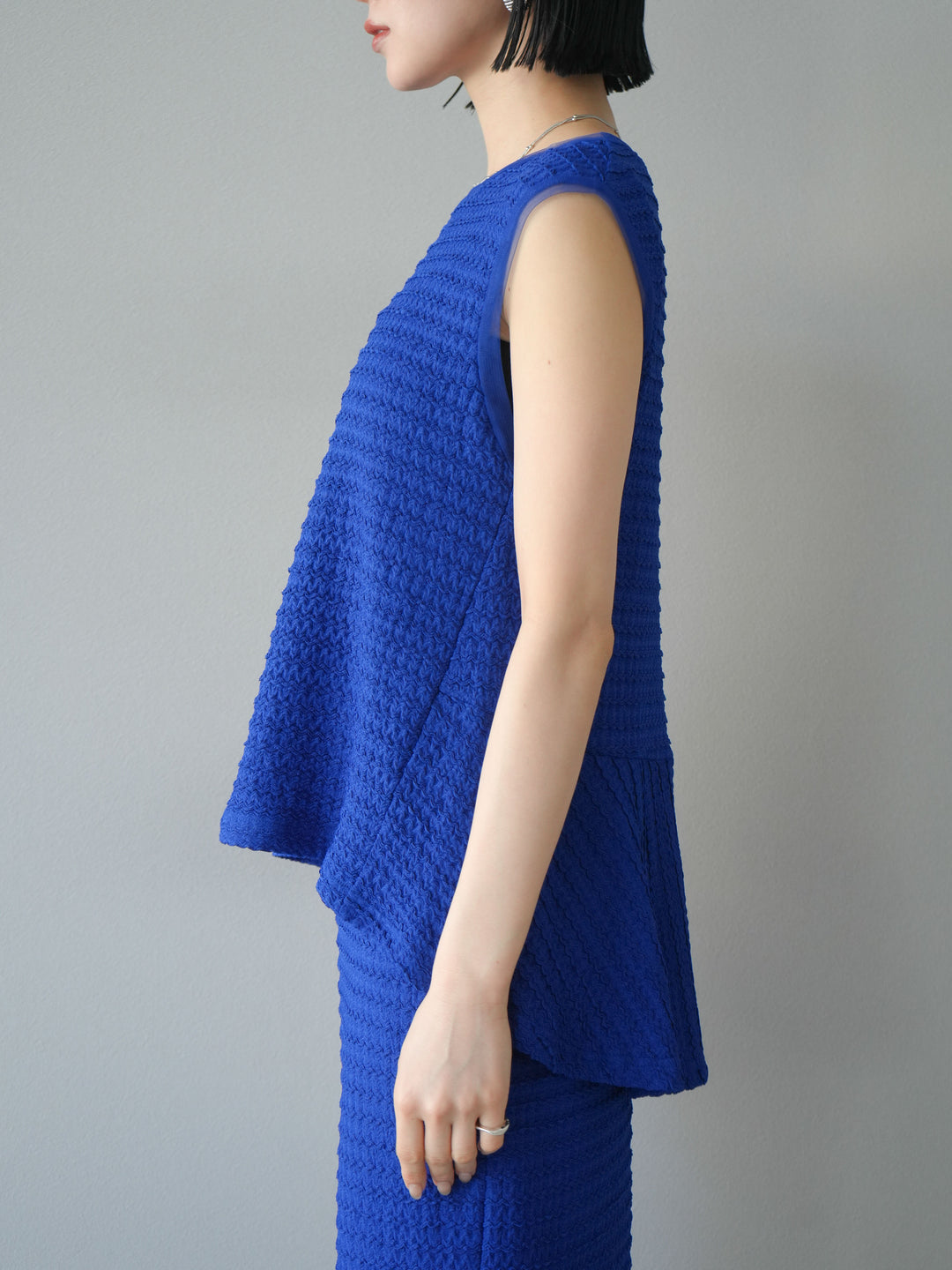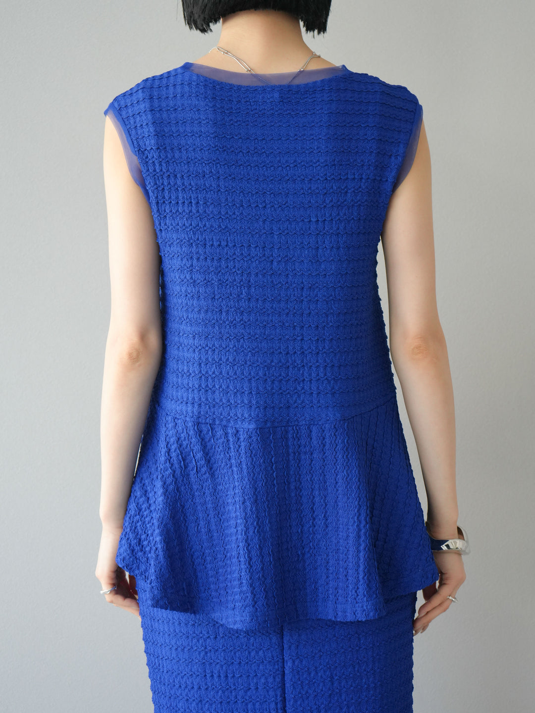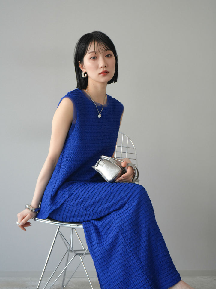 [予約]ジャガードウェーブぺプラムノースリーブ/ブルー