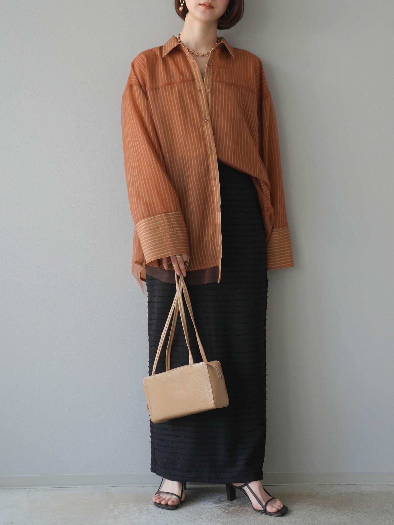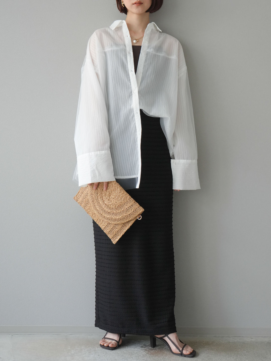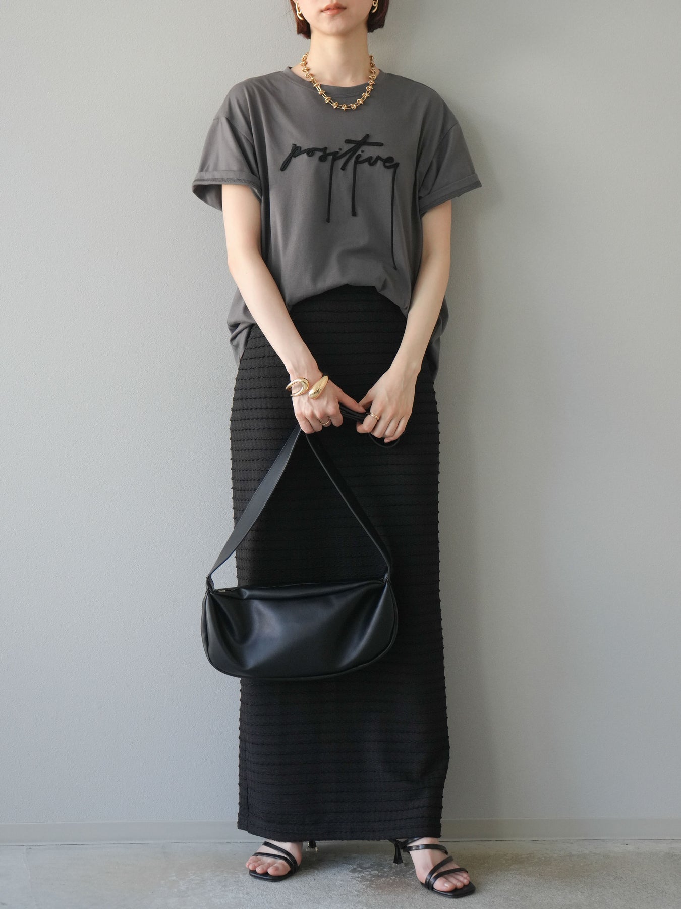 立体感のあるウェーブジャガード素材が目を惹くタイトスカート。シンプルながらも存在感のある表情が、スタイリングをアップデートしてくれます。すっきりとしたIラインシルエットで、トップスを選ばず幅広い着こなしが可能。トレンド感を押さえつつ、きれいめにもカジュアルにもマッチする万能アイテムです。 ※ボトムス、キャミソール(インナー)以外の商品は一律でインナーは付属していません