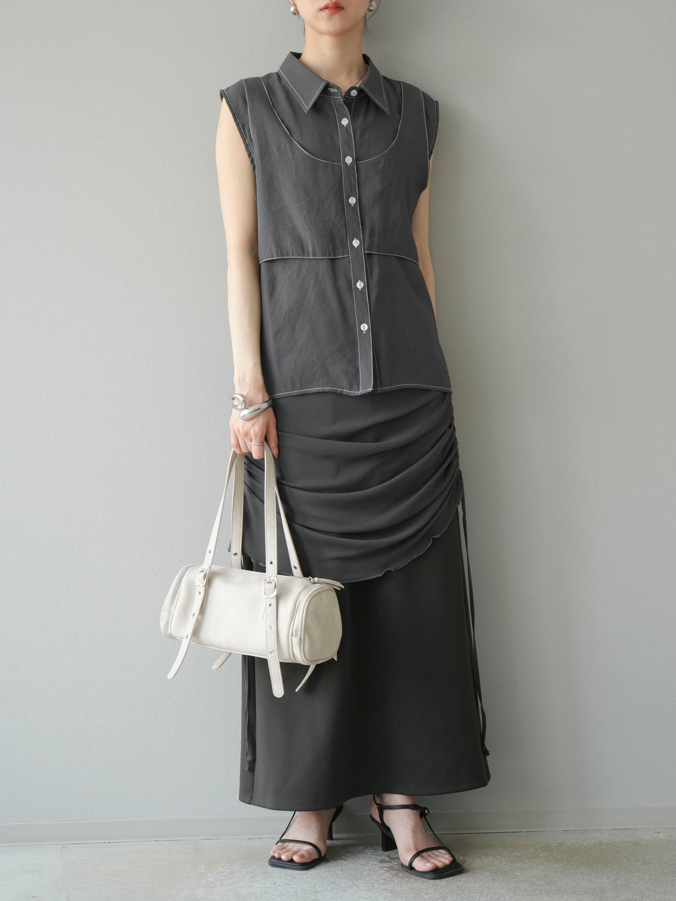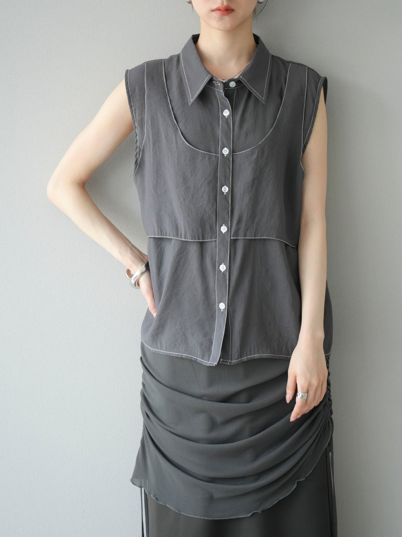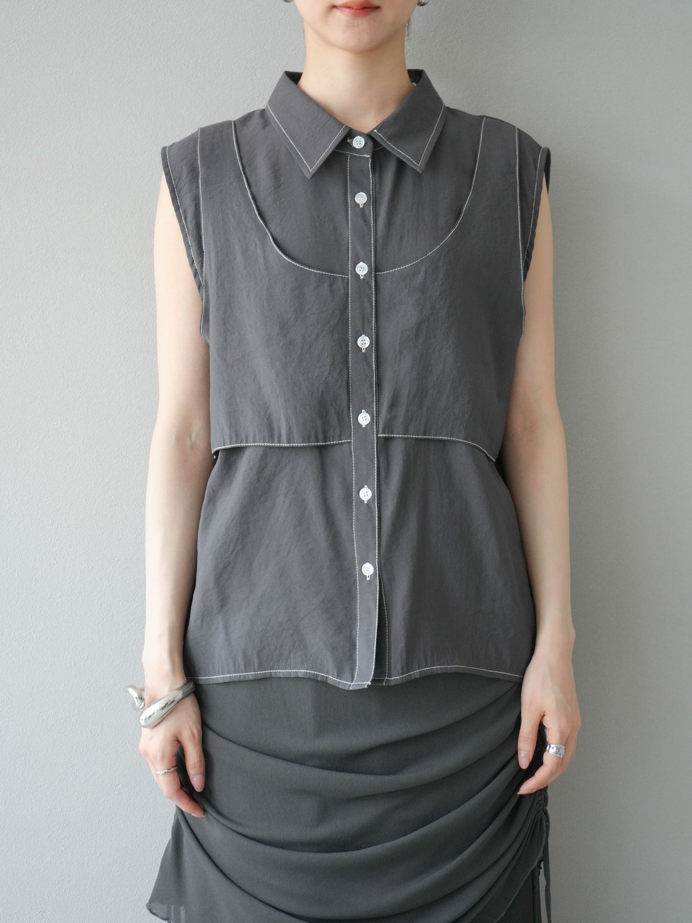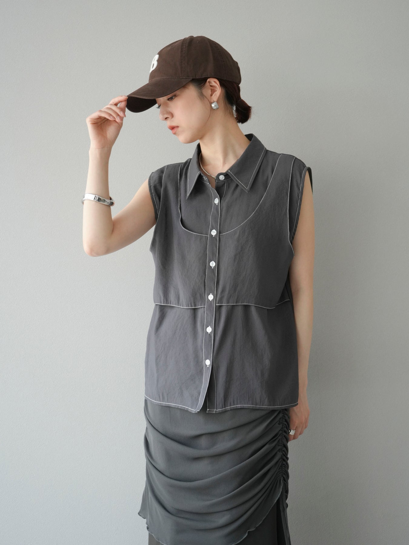[預訂] 縫合透視多層設計襯衫/炭灰色