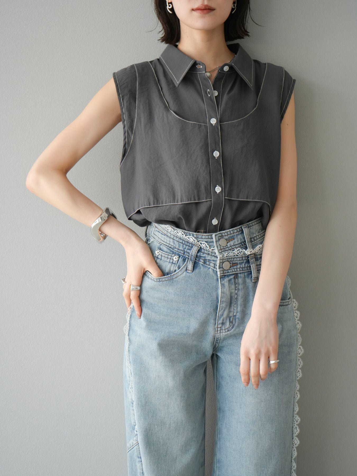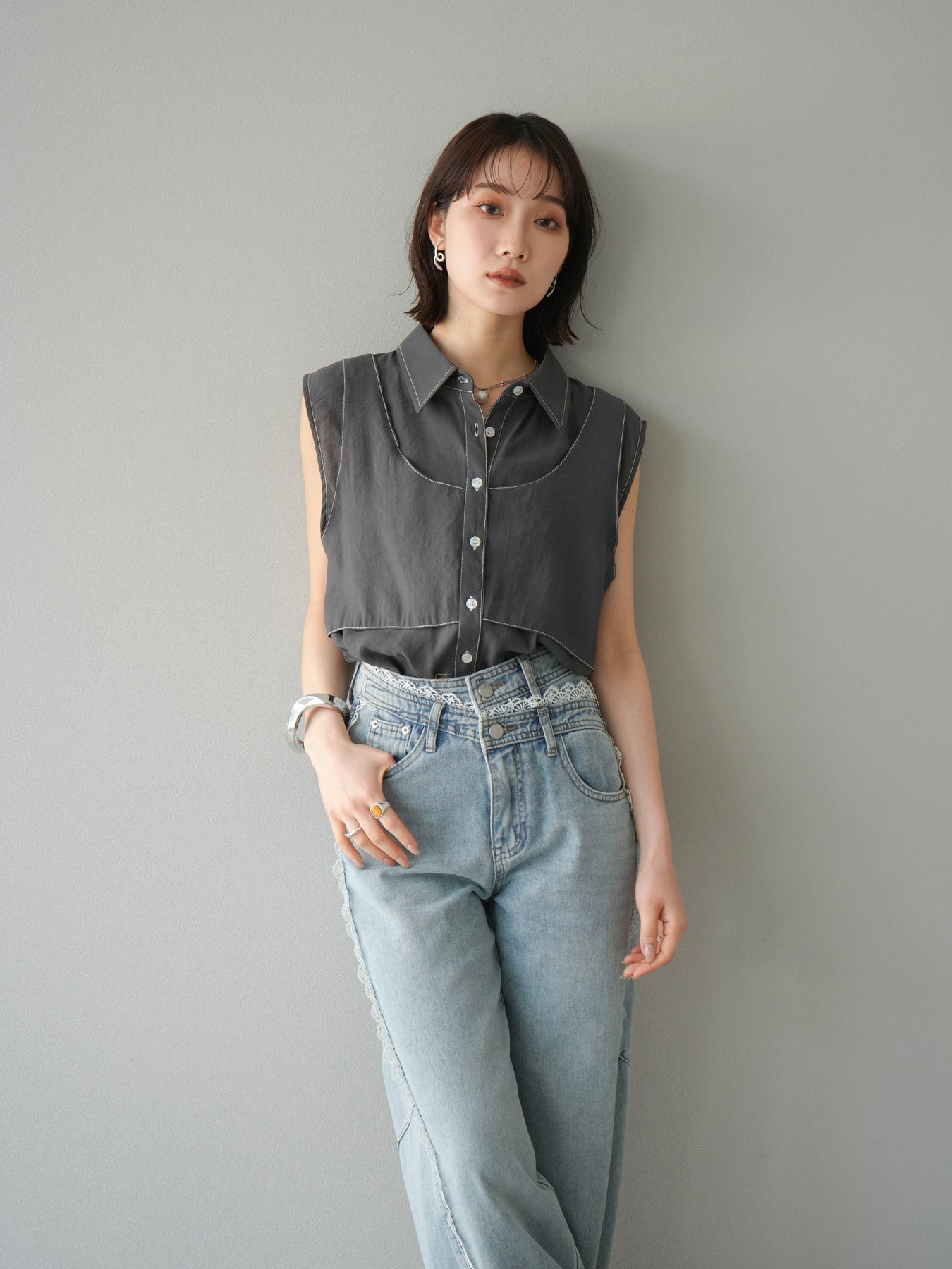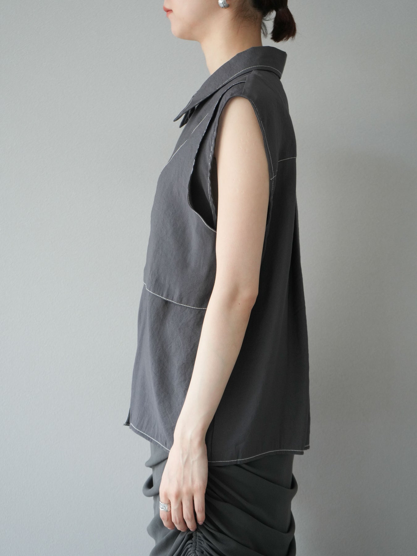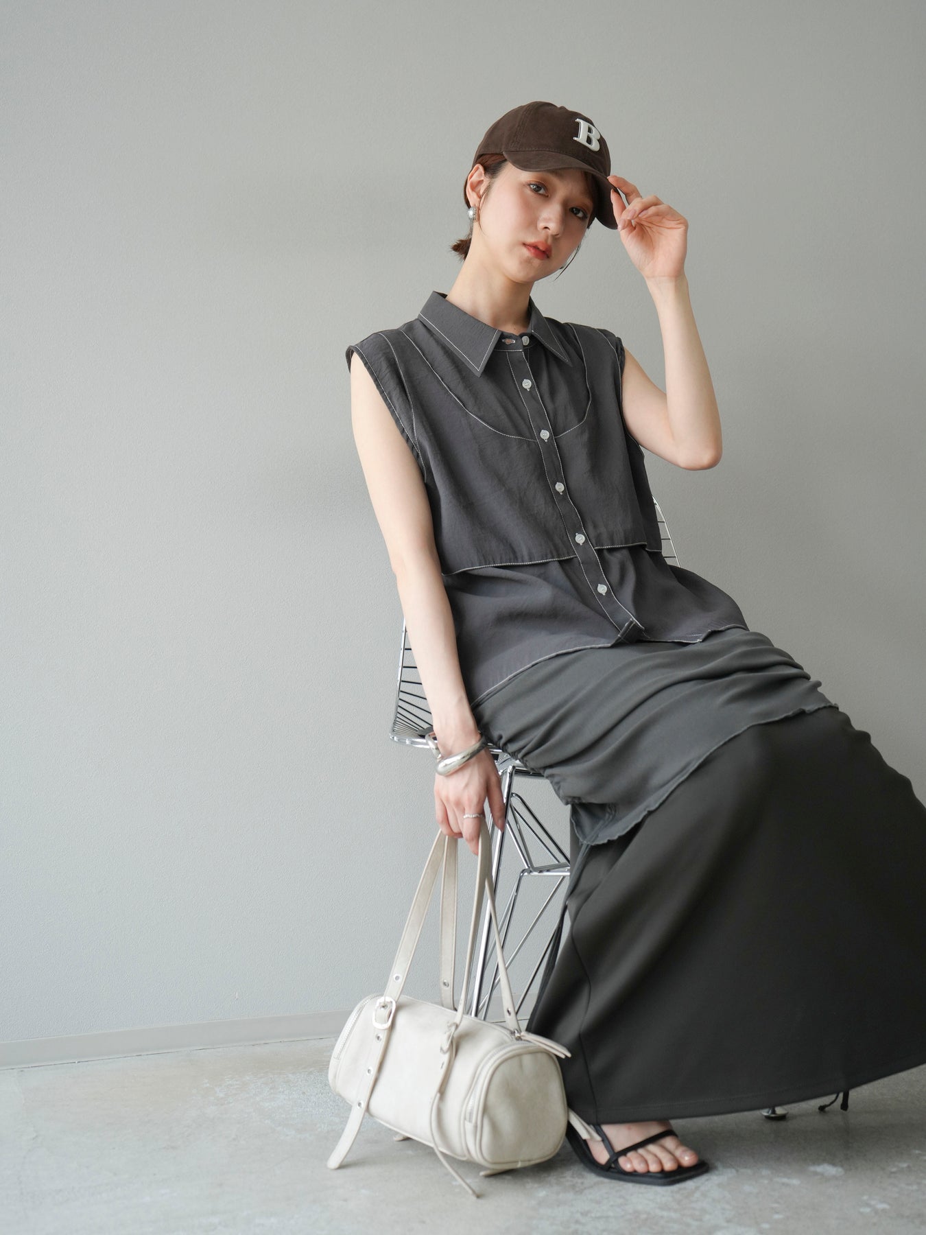 [預訂] 縫合透視多層設計襯衫/炭灰色