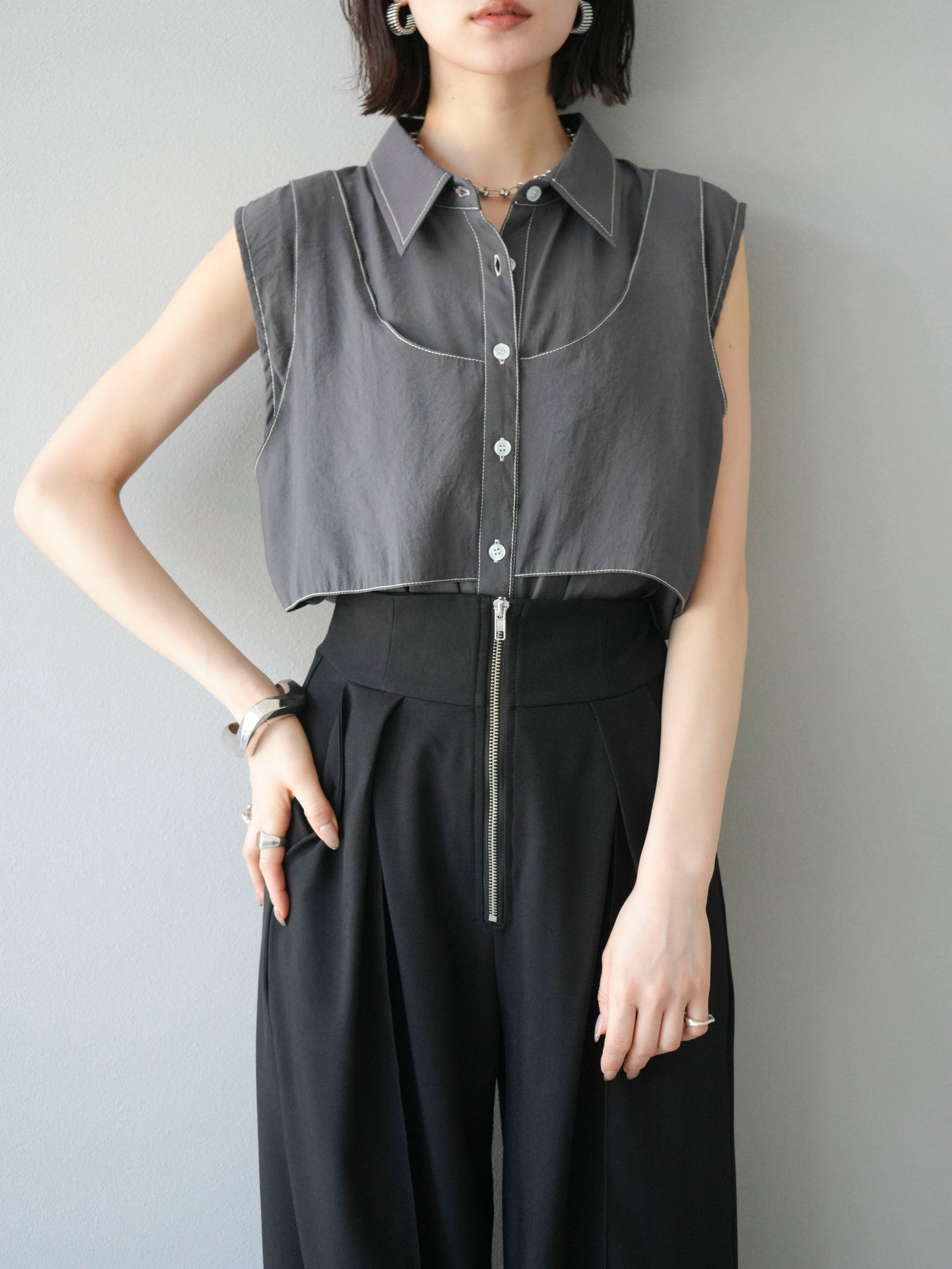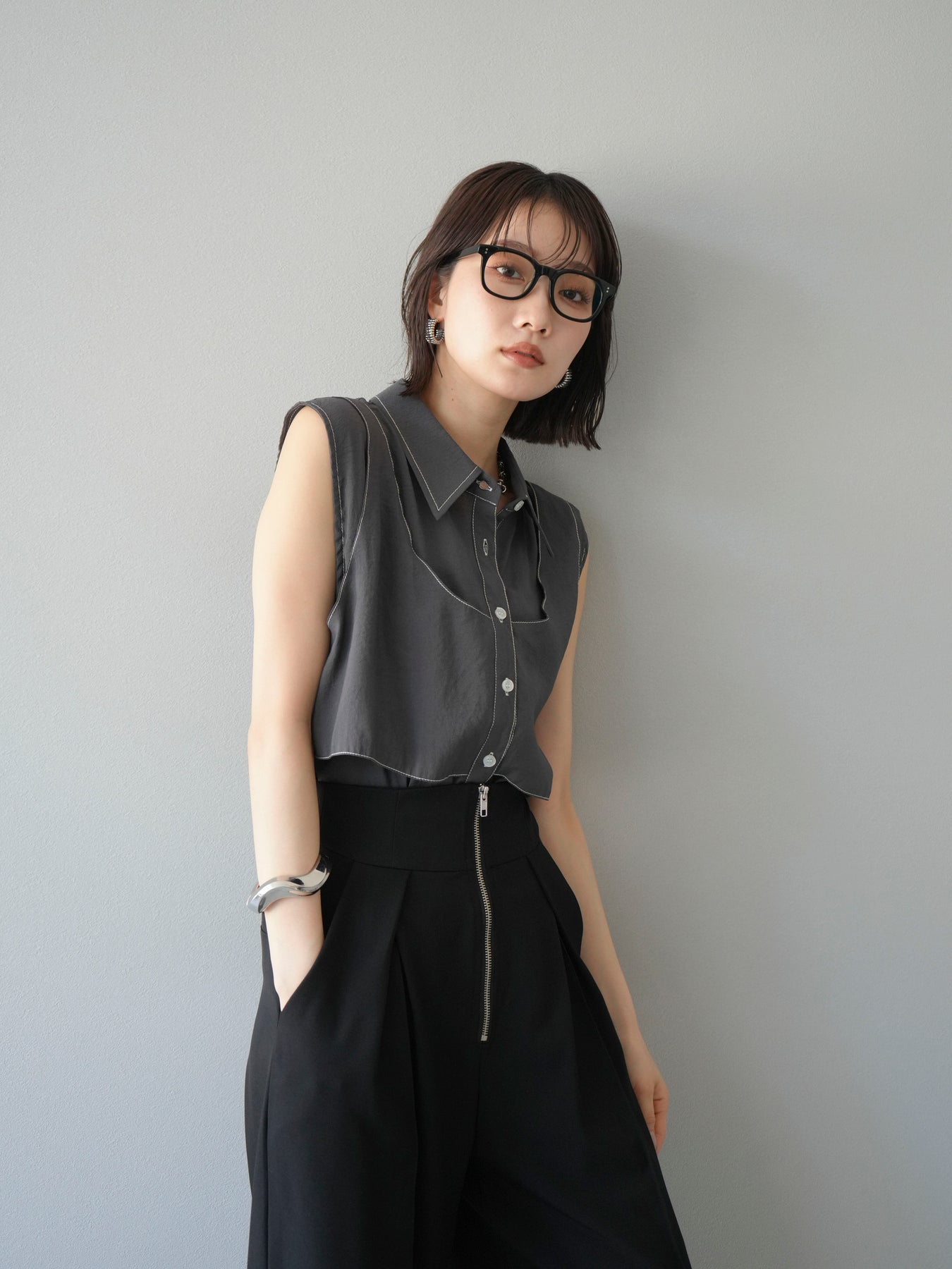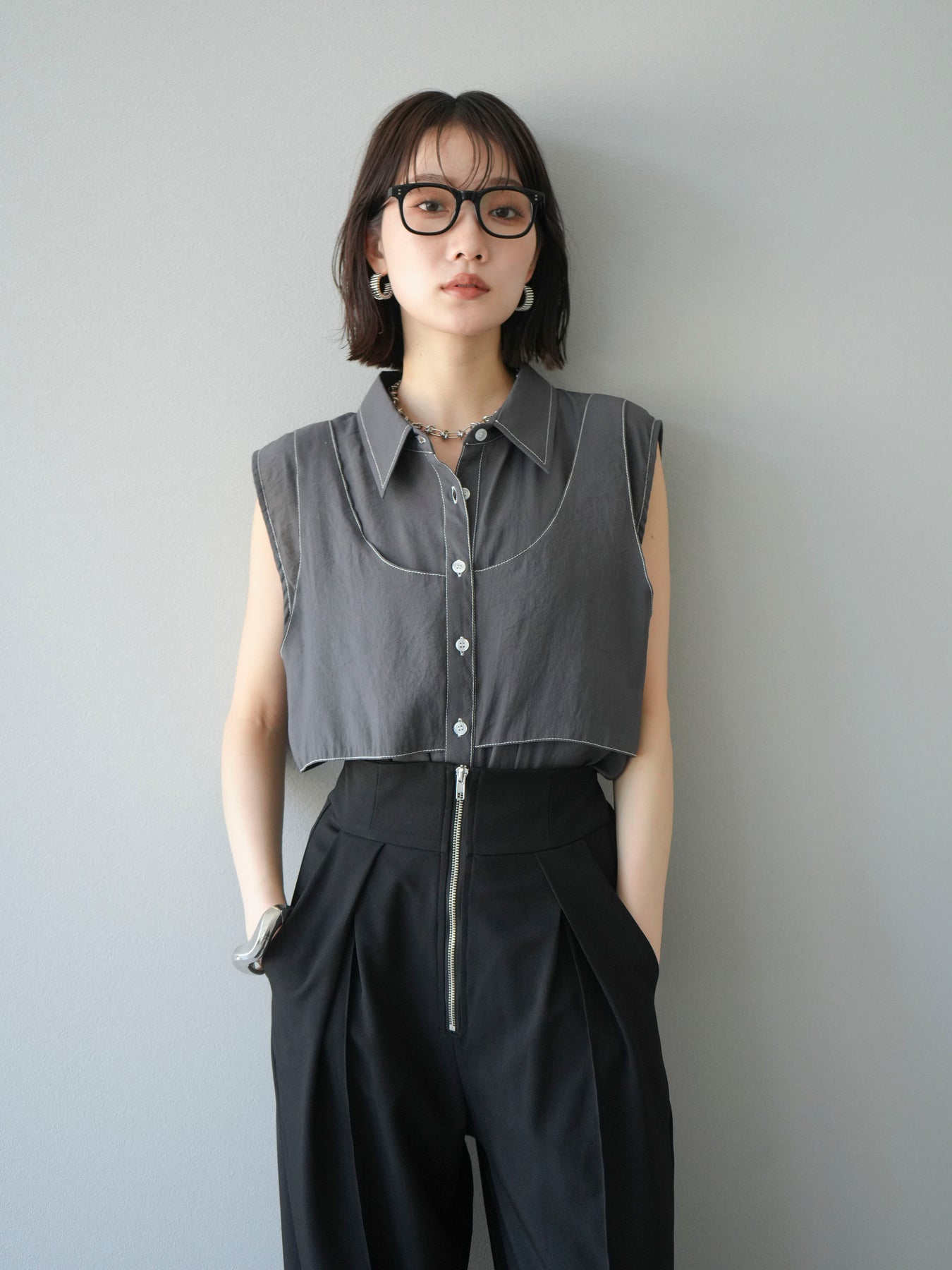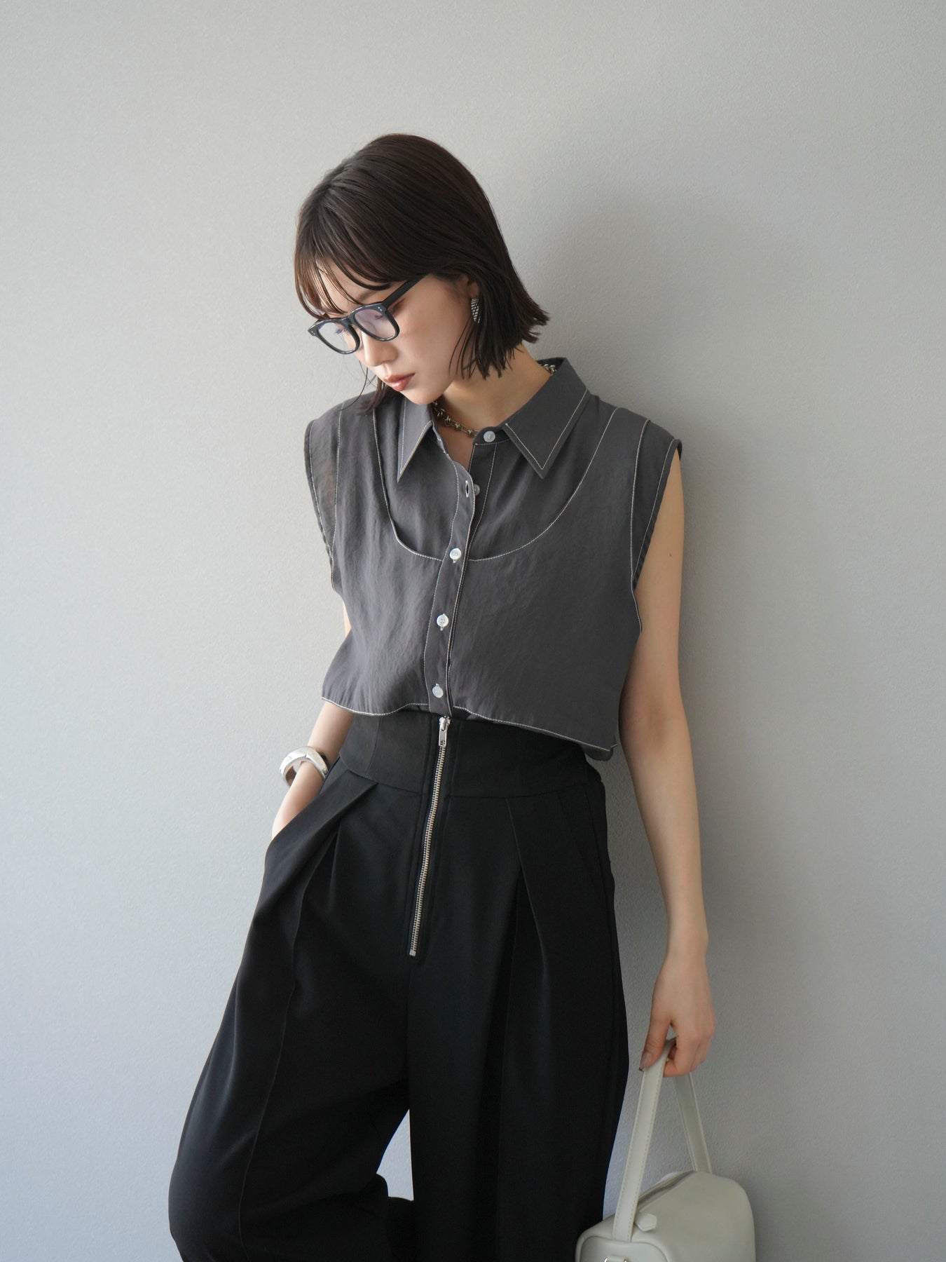 [預訂] 縫合透視多層設計襯衫/炭灰色