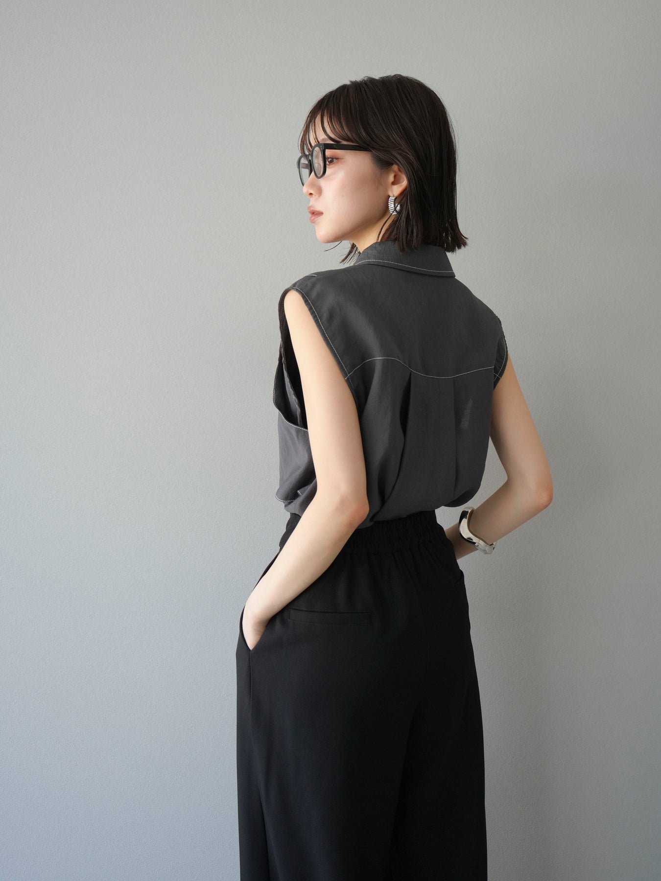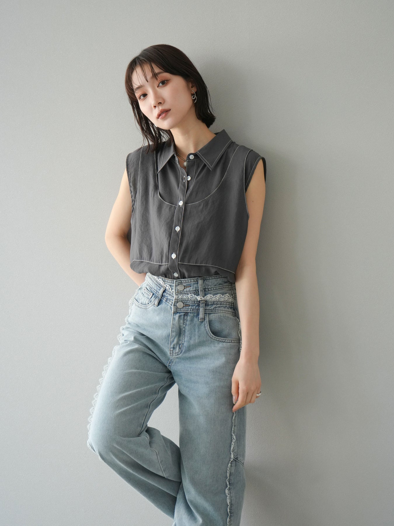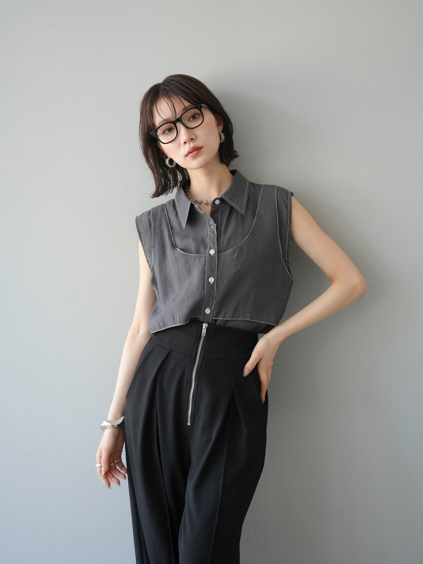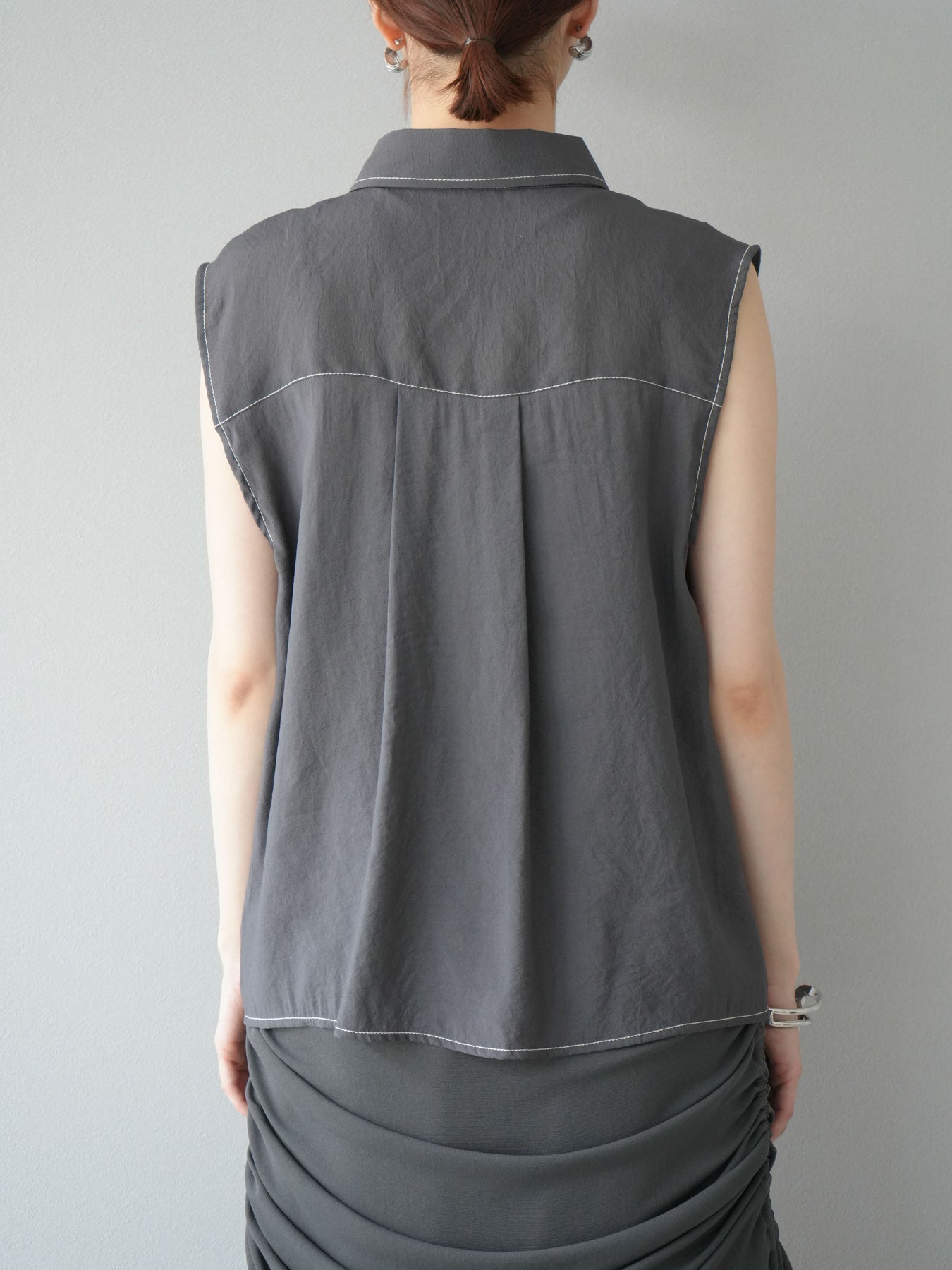[預訂] 縫合透視多層設計襯衫/炭灰色