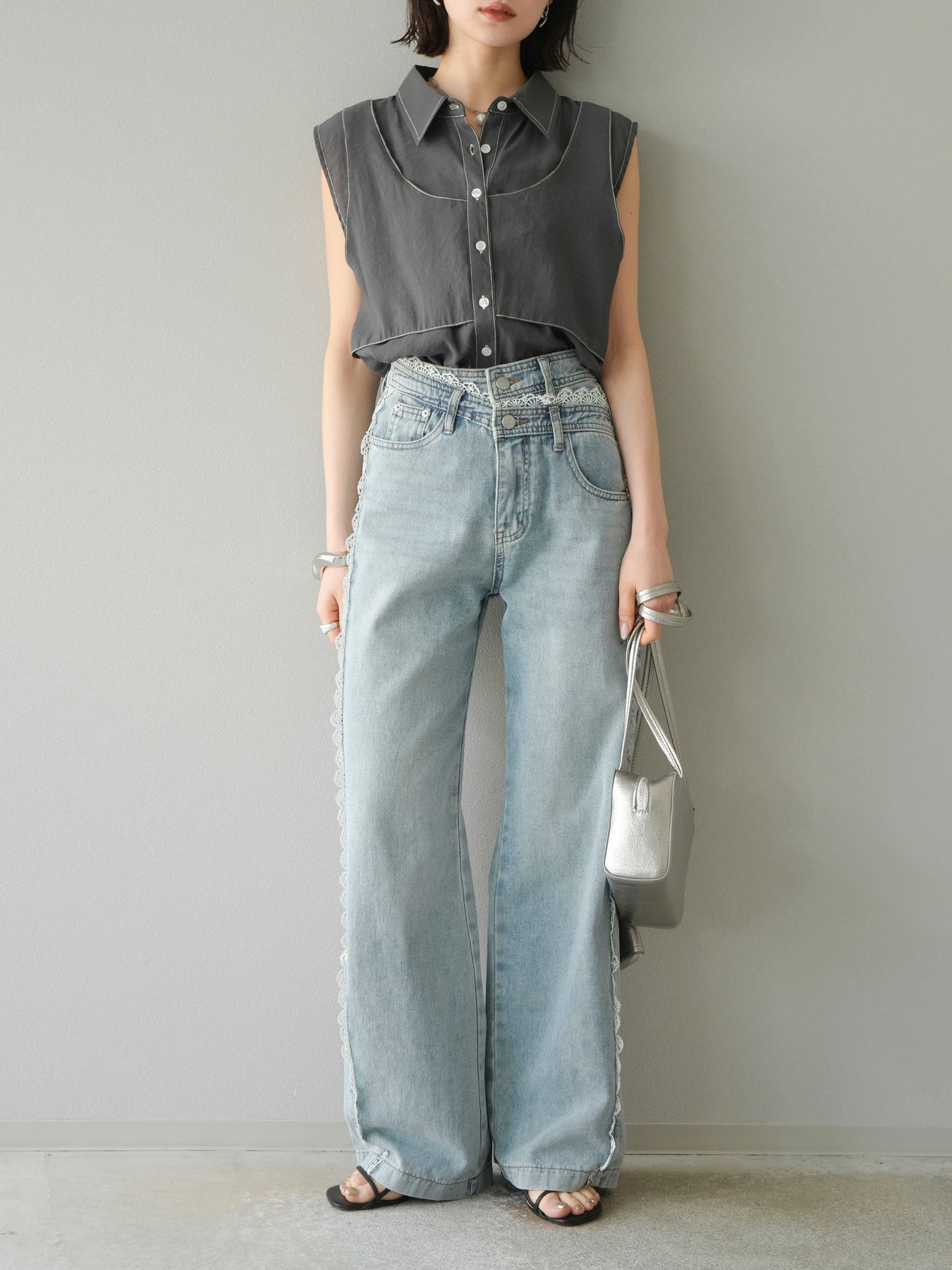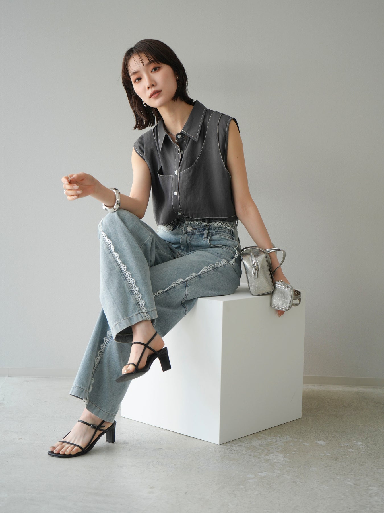 透明縫線的層疊設計襯衫,宛如緊身胸衣般引人注目。輕盈的布料兼具恰到好處的透明度,以及透過不同材質切換而形成的立體廓形,營造出精緻的印象。精緻的縫線更是點睛之筆,打造出簡約卻不失細節的單品。無論搭配褲子還是裙子,都能打造出均衡的造型。這是一件兼具時尚感與百搭性的成人時尚襯衫。 ※除下裝、吊帶背心(內衣)以外的商品均不含內衣。