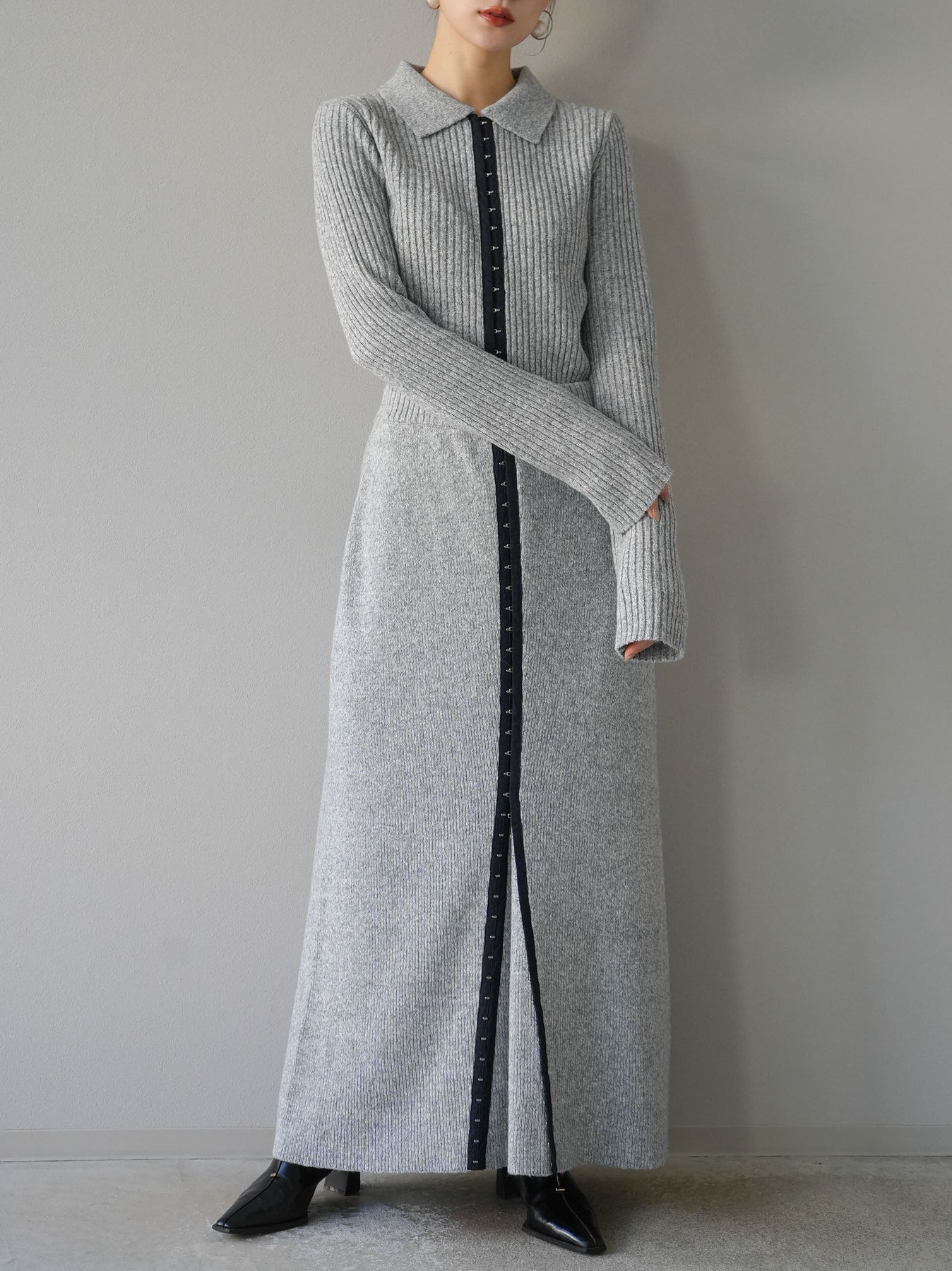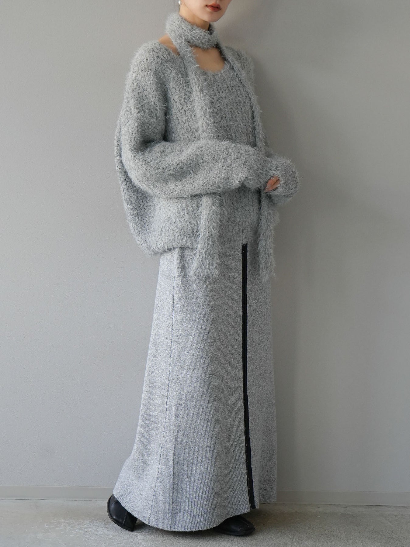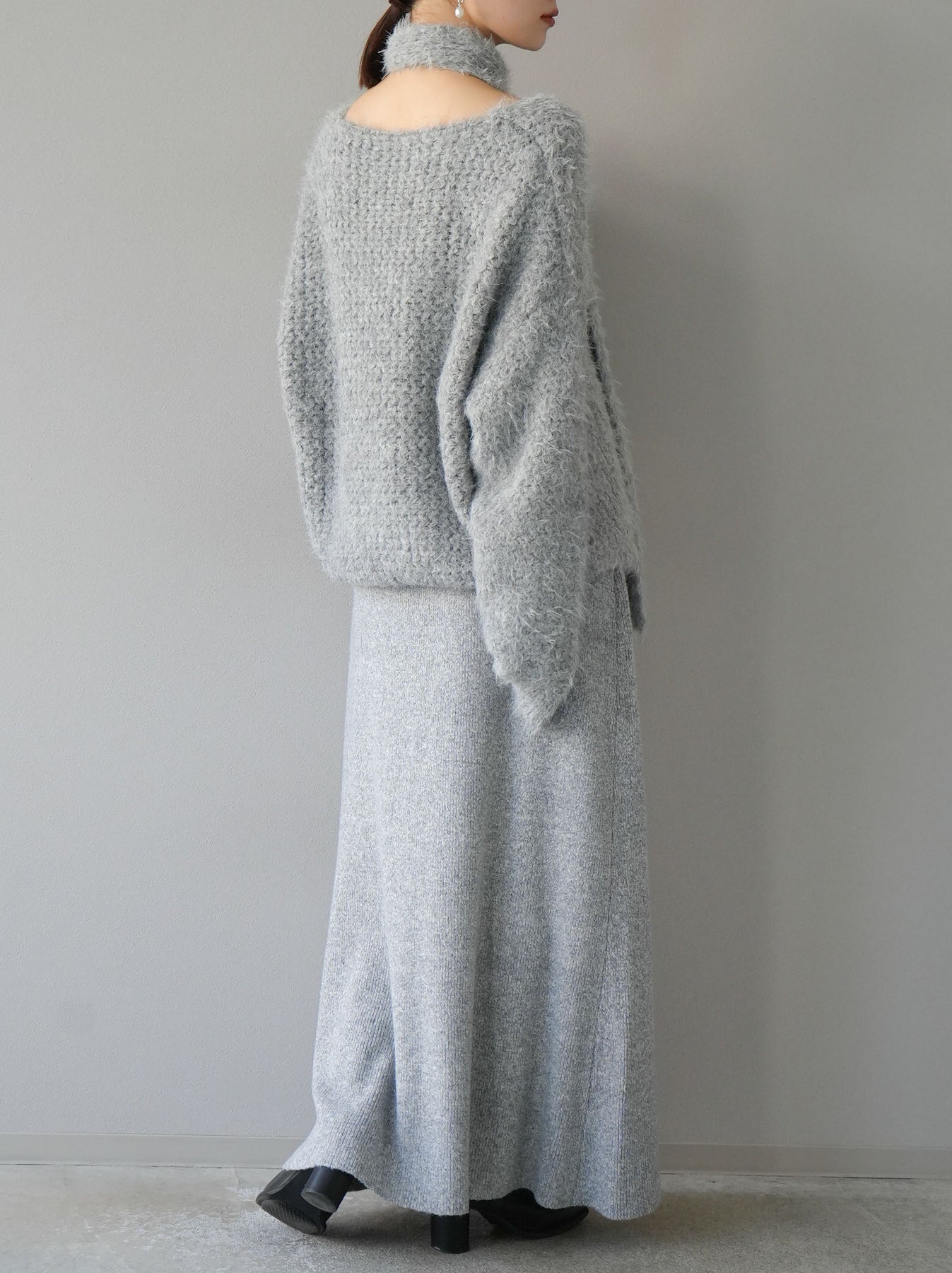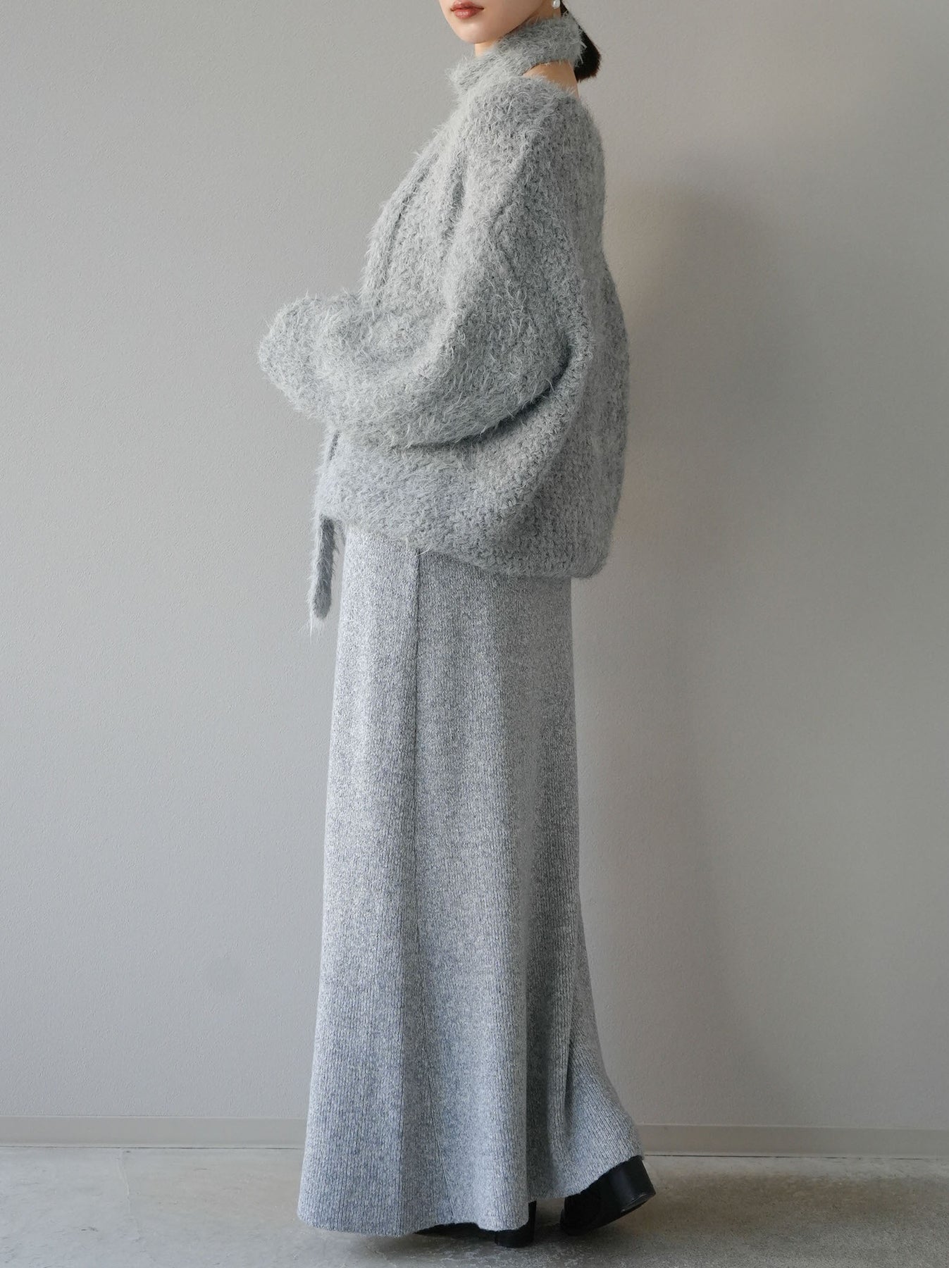 多向針織裙,帶有鉤狀細節。雖然輪廓簡單,但卻是可以享受正面和側面佈置樂趣的作品。該商品採用柔軟而溫暖的材料製成,非常適合秋冬季節。 ※除下裝、吊帶背心(內衣)以外的所有商品均不包含內衣。