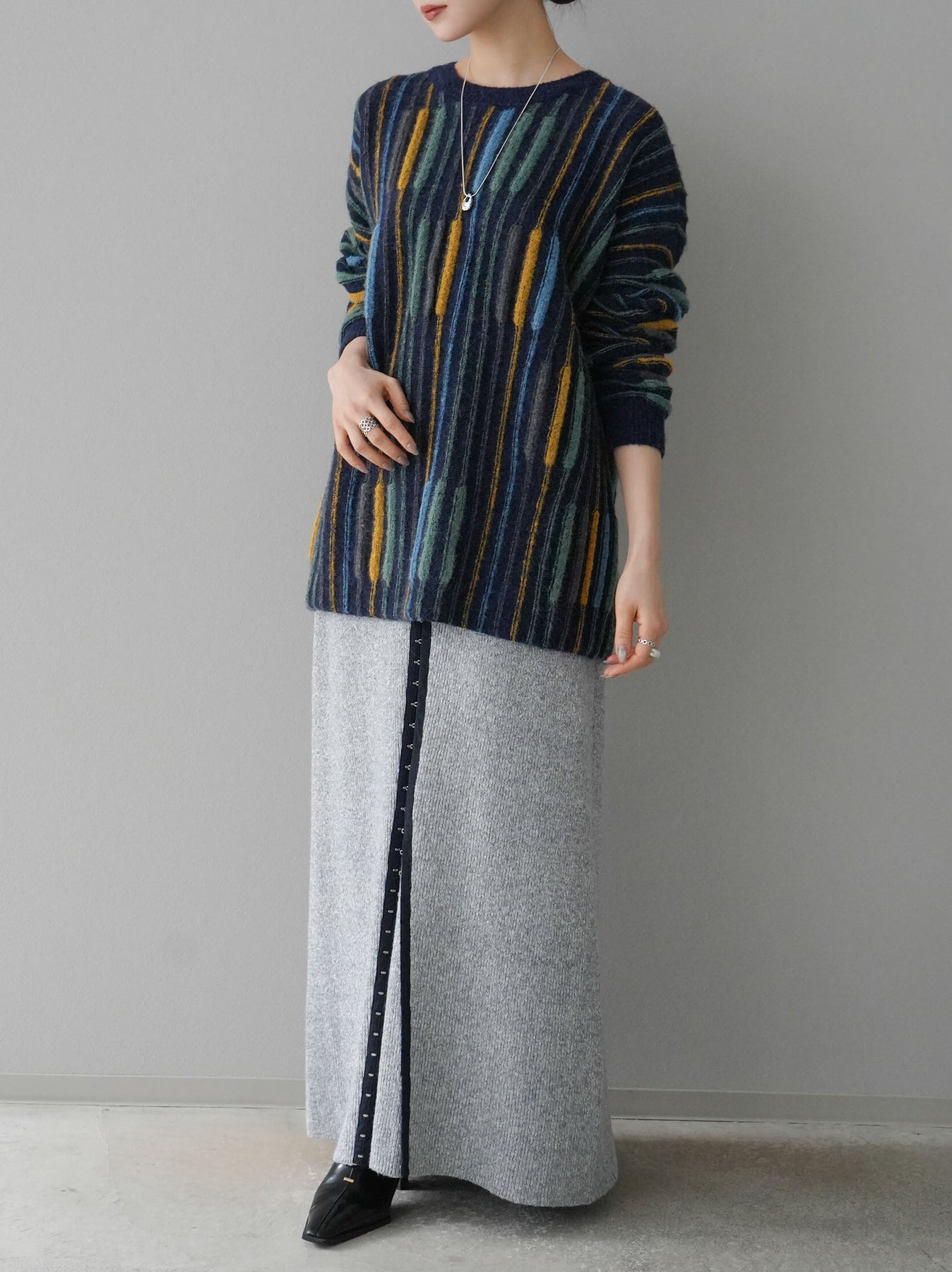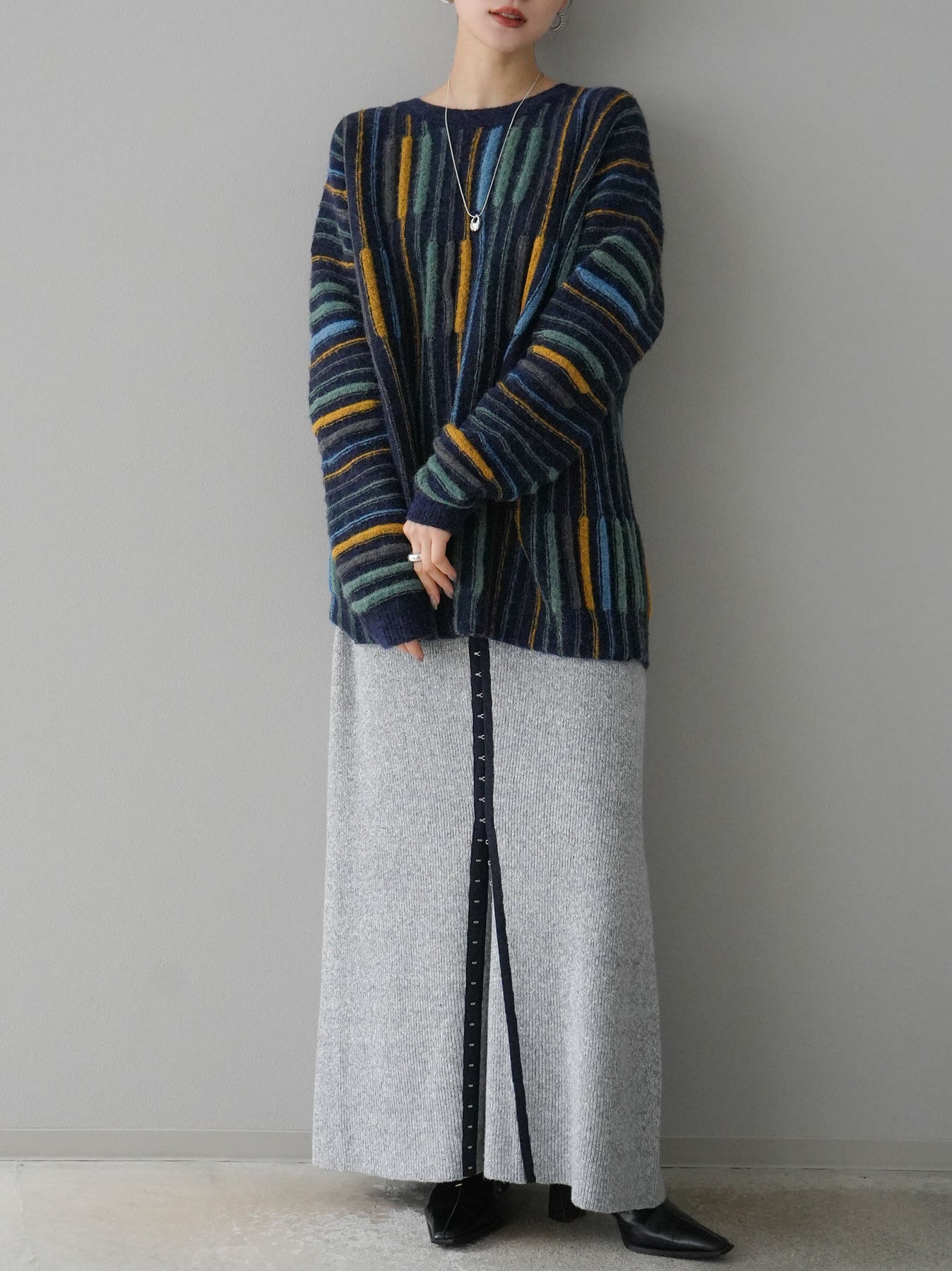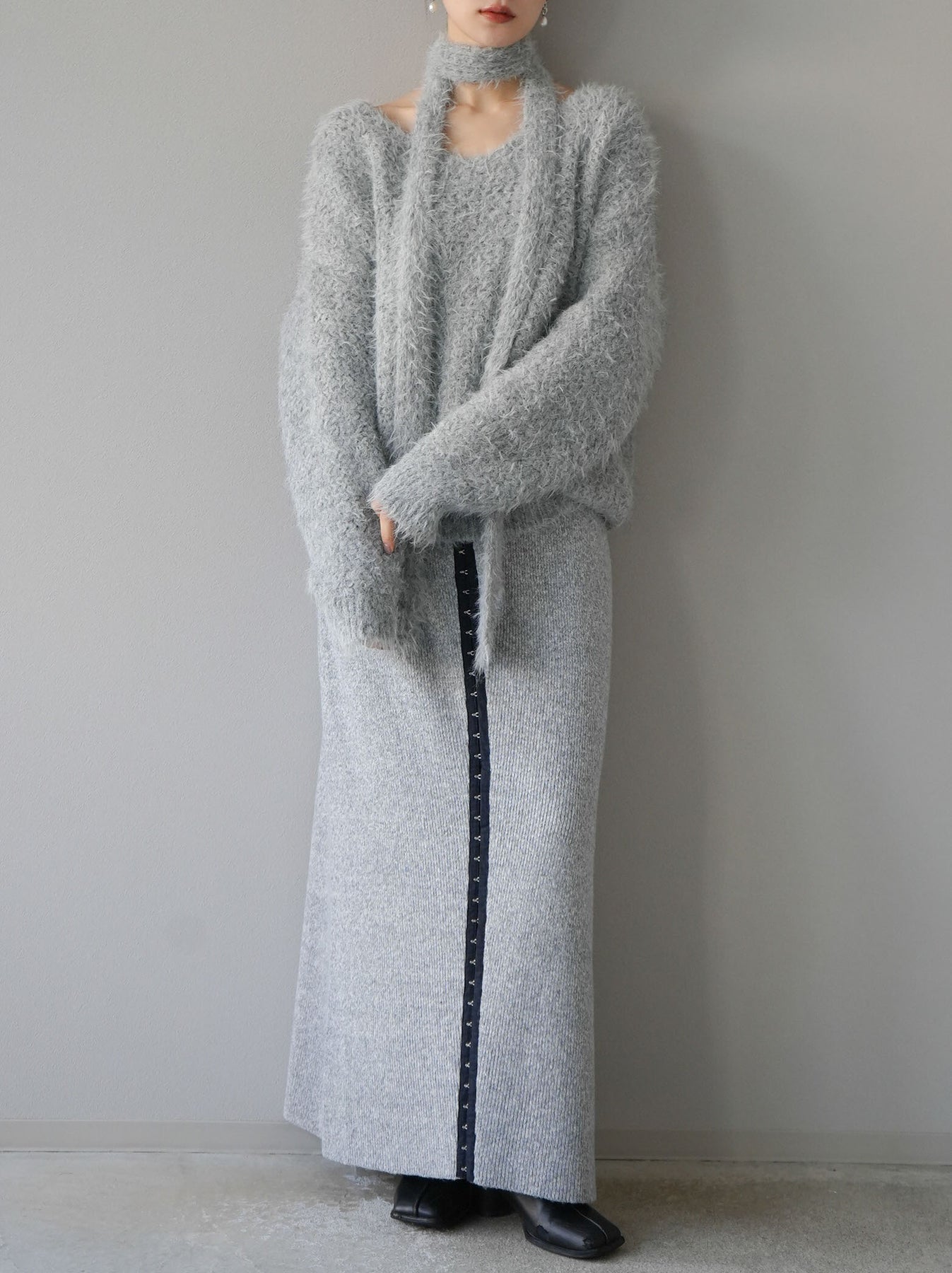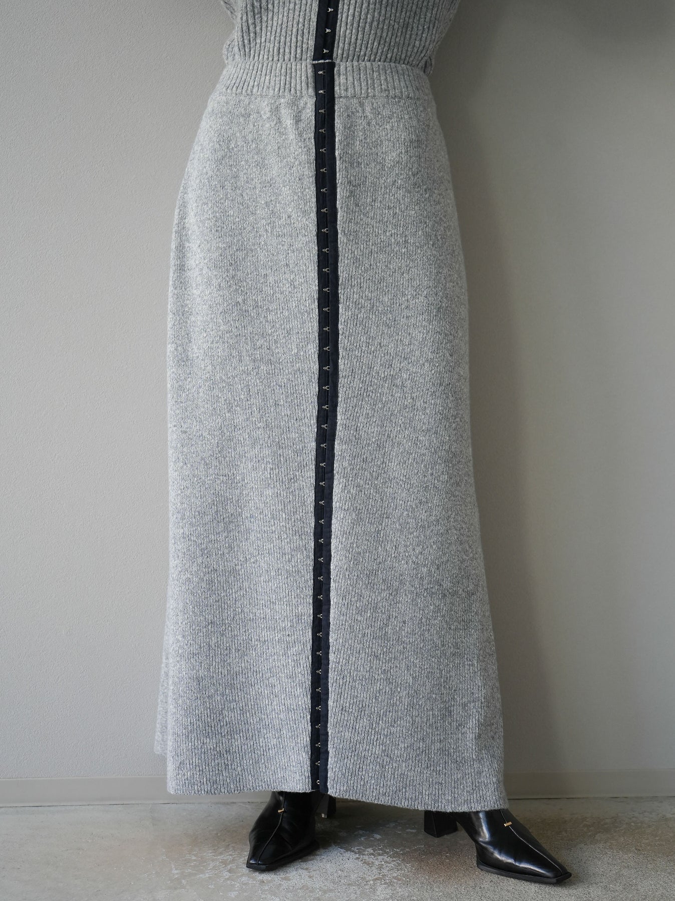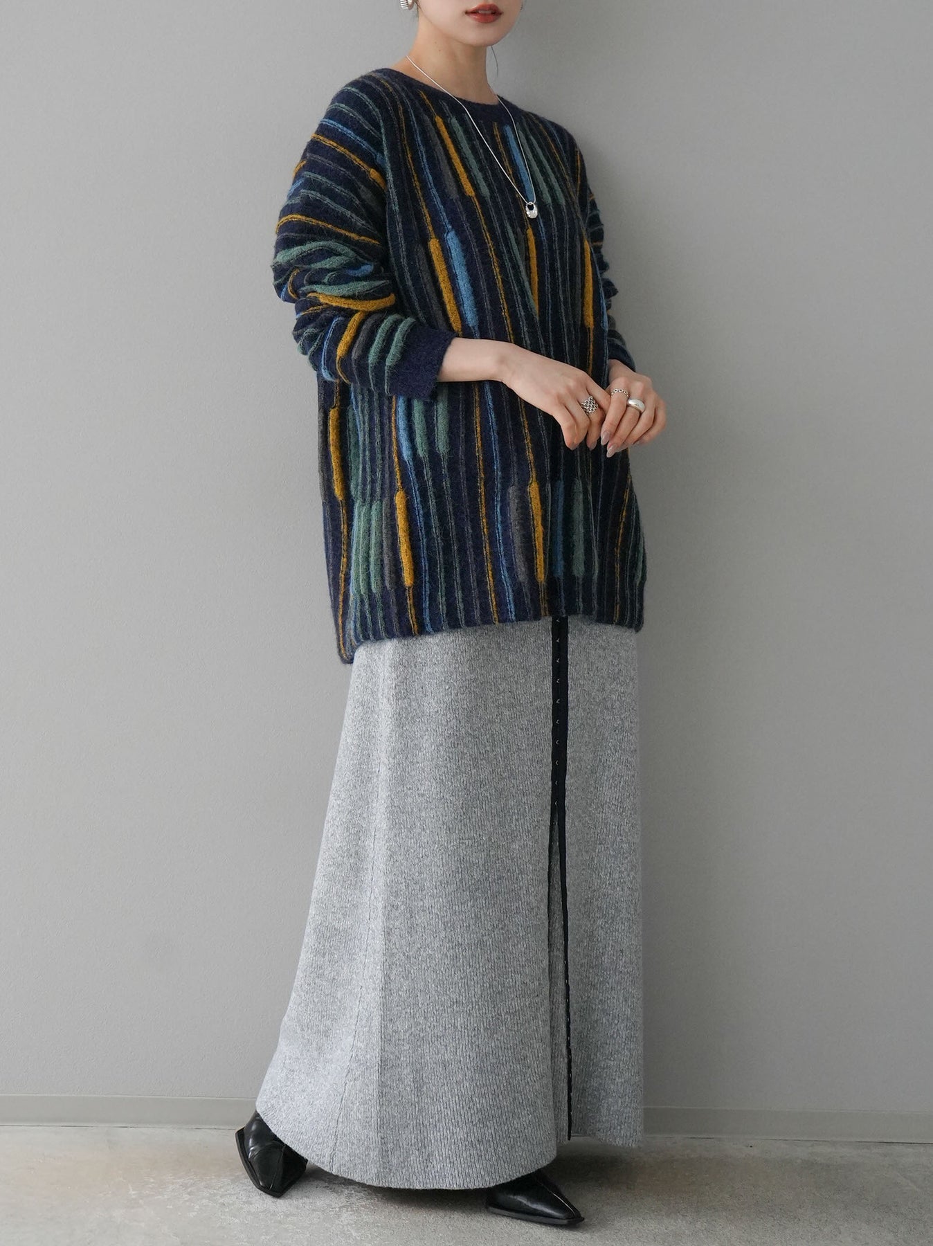 多向針織裙,帶有鉤狀細節。雖然輪廓簡單,但卻是可以享受正面和側面佈置樂趣的作品。該商品採用柔軟而溫暖的材料製成,非常適合秋冬季節。 ※除下裝、吊帶背心(內衣)以外的所有商品均不包含內衣。