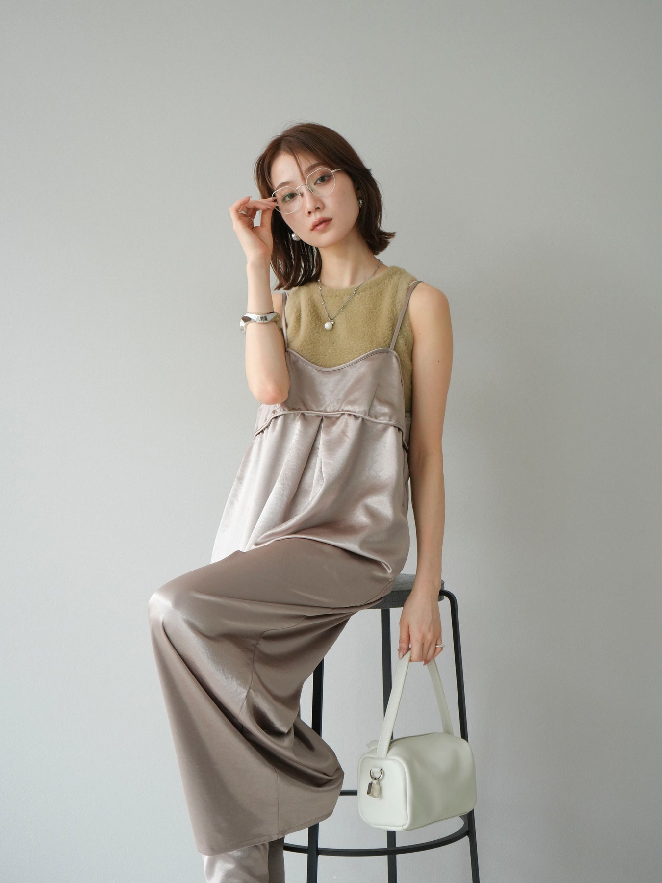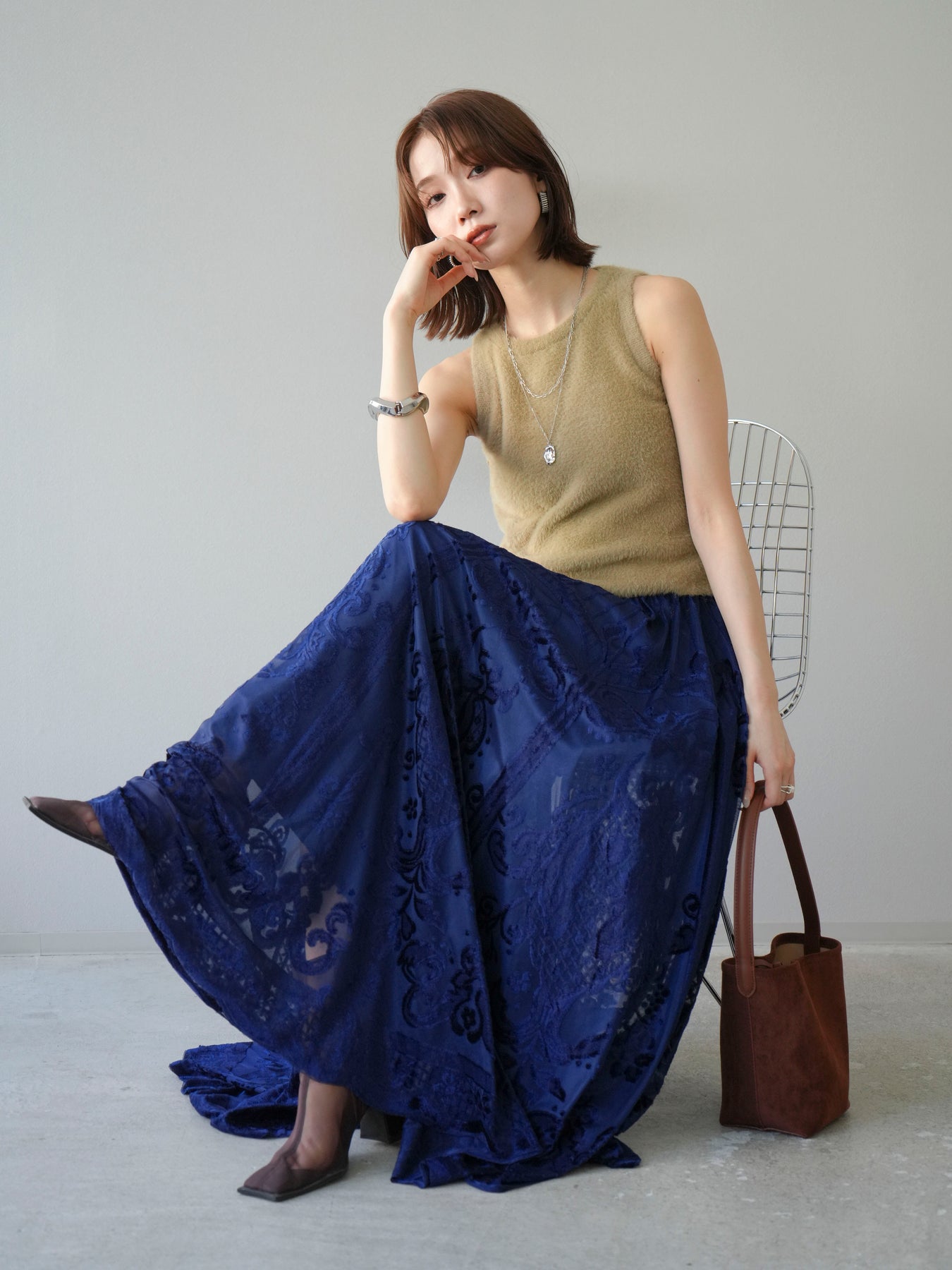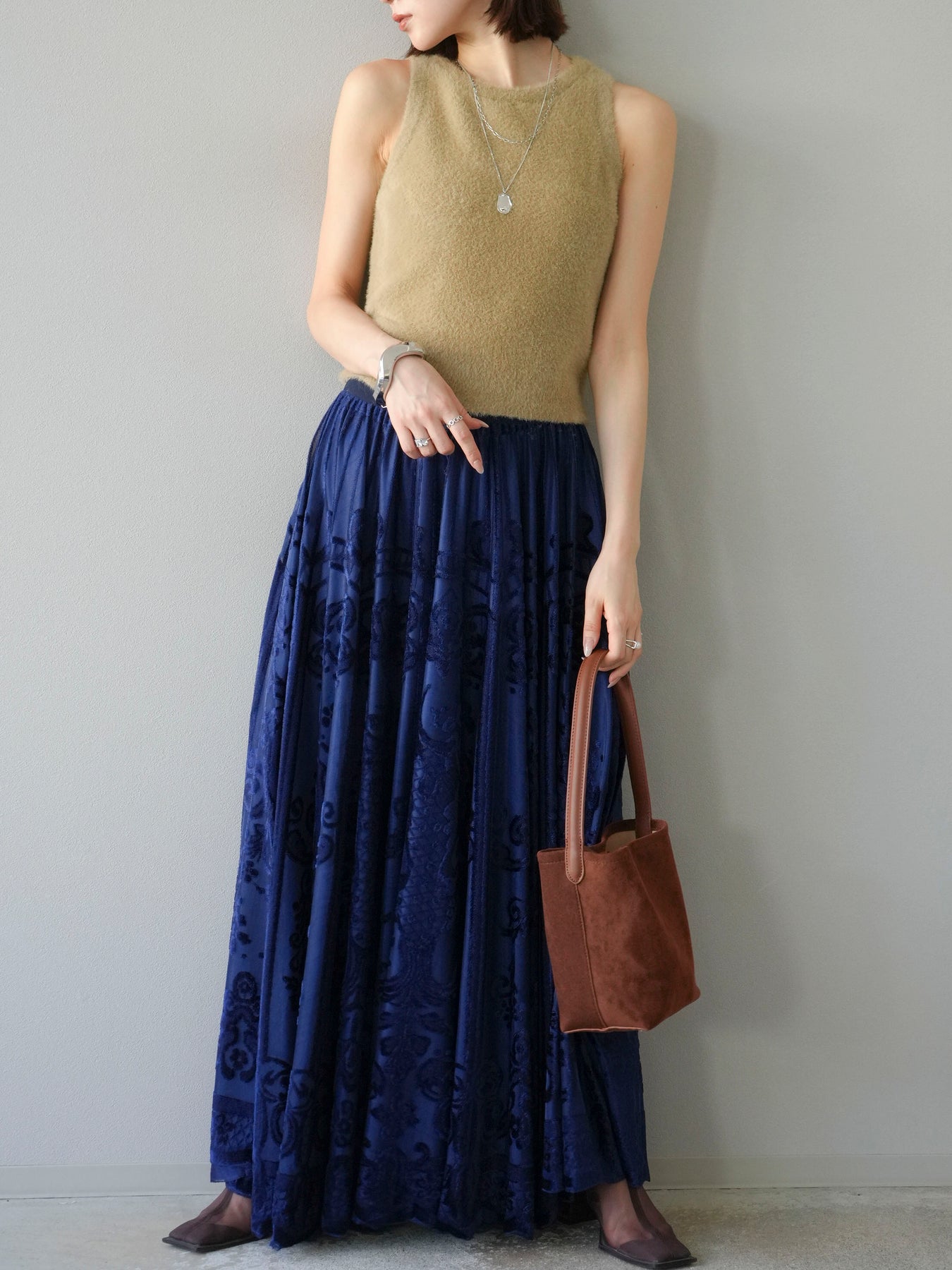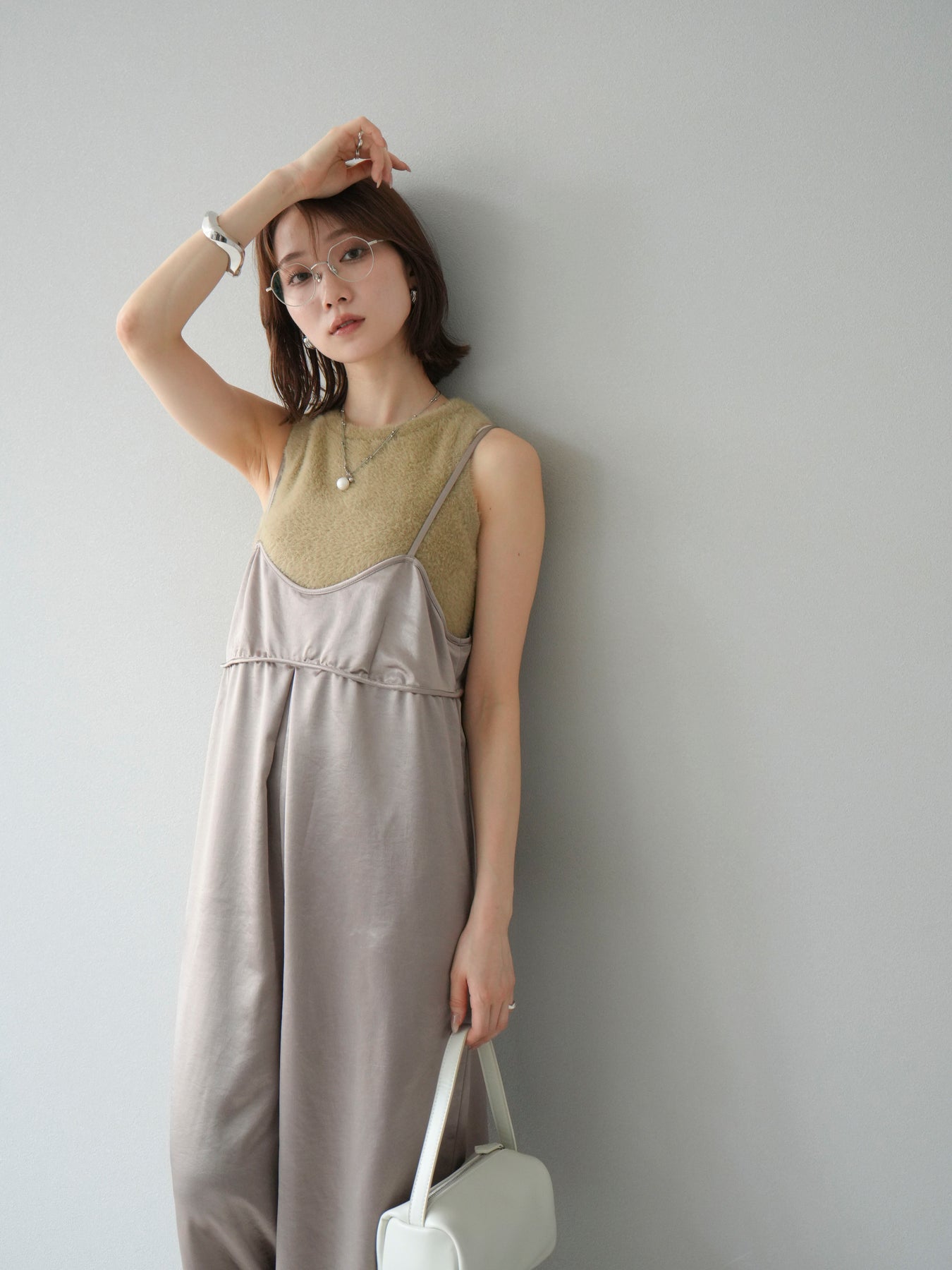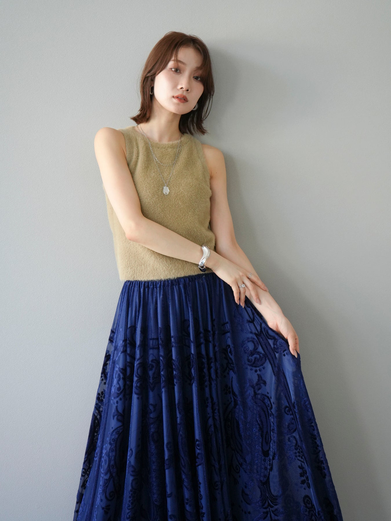 ふんわりとしたシャギー素材を使用したニットタンクトップ。毛足のある柔らかな風合いがシーズンムードを高め、1枚でもレイヤードでも着映えするアイテムです。程よくコンパクトなシルエットで、ボトムスとのバランスが取りやすく、スカートにもパンツにも好相性。シンプルながらも素材感で存在感を放ち、アクセサリーを合わせればより華やかな印象に。インナーにシャツやシアートップスを重ねることで、季節を問わずロングシーズン活躍します。 ※ボトムス、キャミソール(インナー)以外の商品は一律でインナーは付属していません。