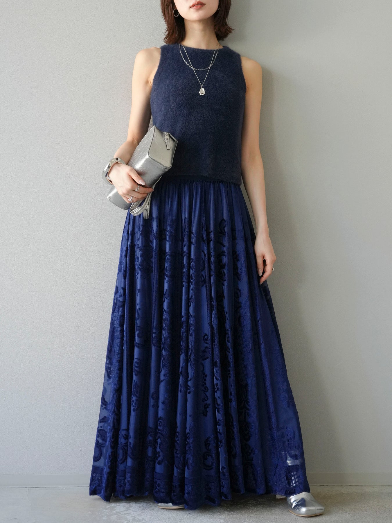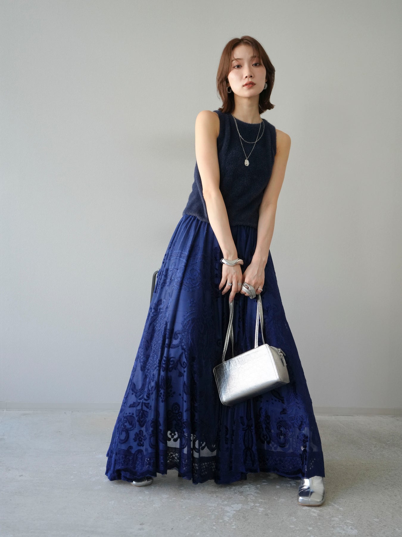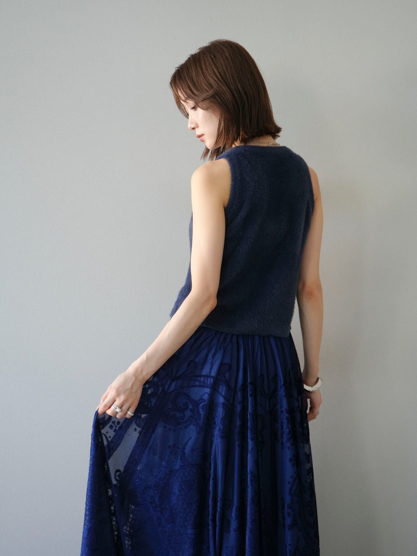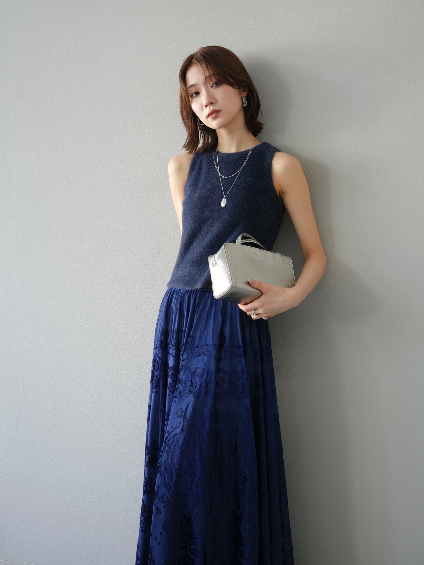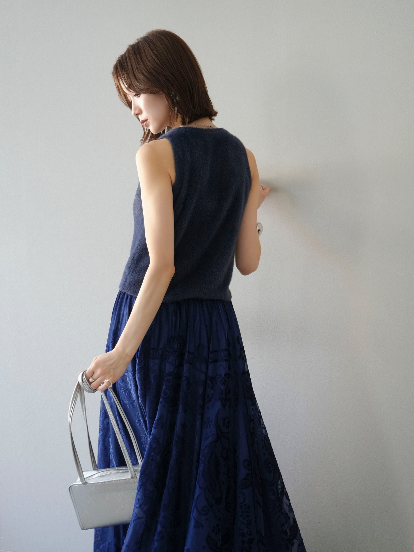 ふんわりとしたシャギー素材を使用したニットタンクトップ。毛足のある柔らかな風合いがシーズンムードを高め、1枚でもレイヤードでも着映えするアイテムです。程よくコンパクトなシルエットで、ボトムスとのバランスが取りやすく、スカートにもパンツにも好相性。シンプルながらも素材感で存在感を放ち、アクセサリーを合わせればより華やかな印象に。インナーにシャツやシアートップスを重ねることで、季節を問わずロングシーズン活躍します。 ※ボトムス、キャミソール(インナー)以外の商品は一律でインナーは付属していません。