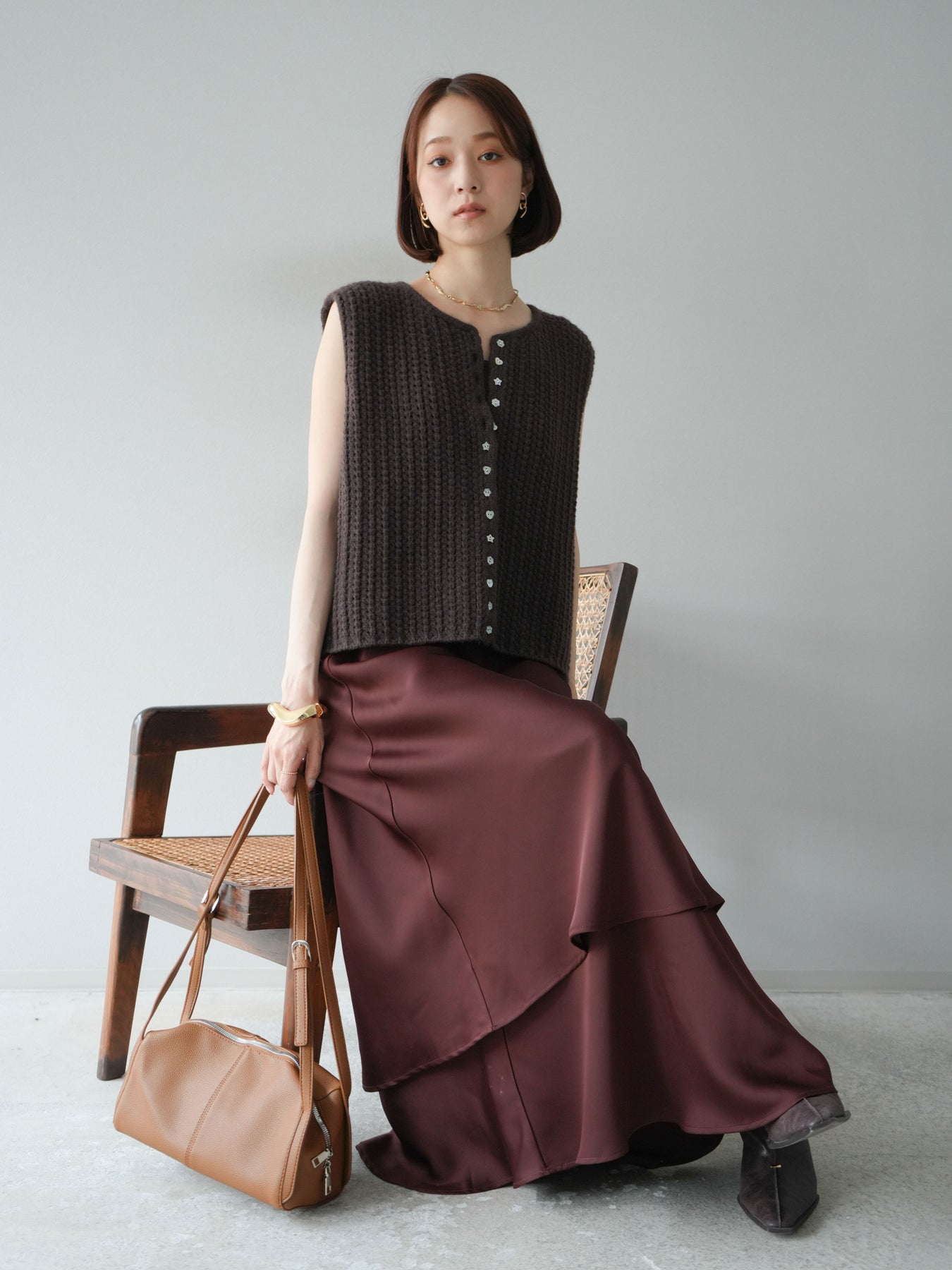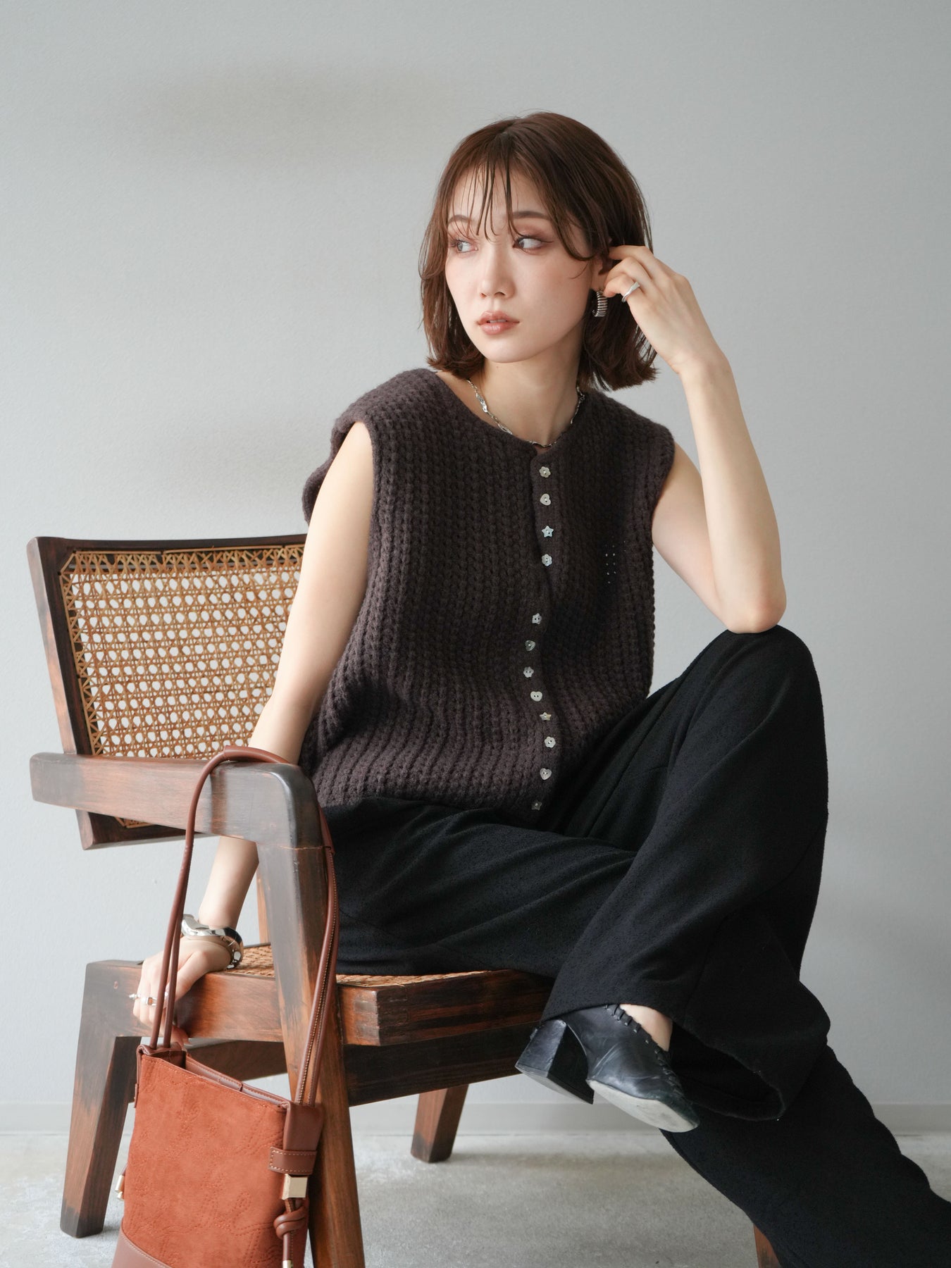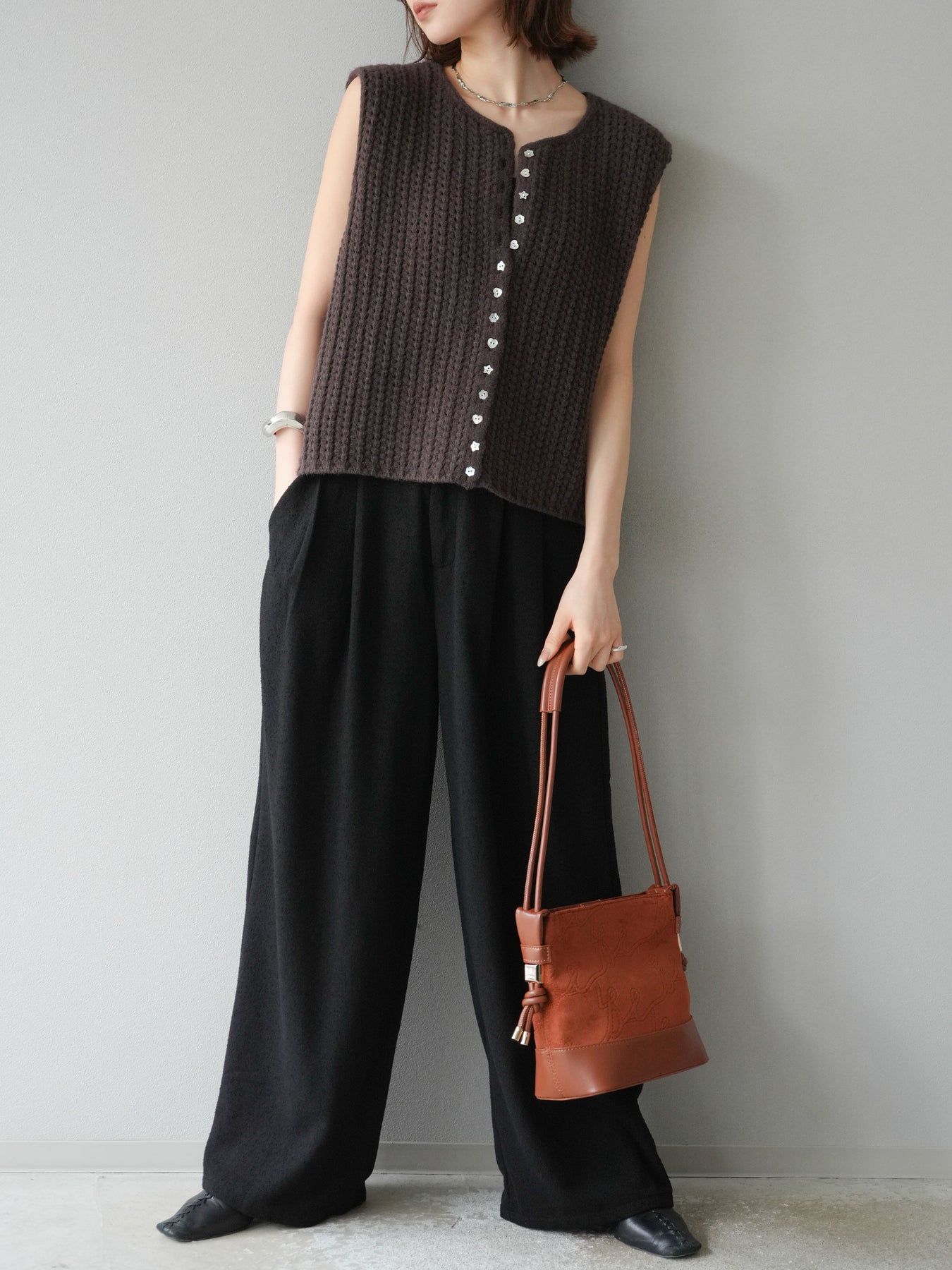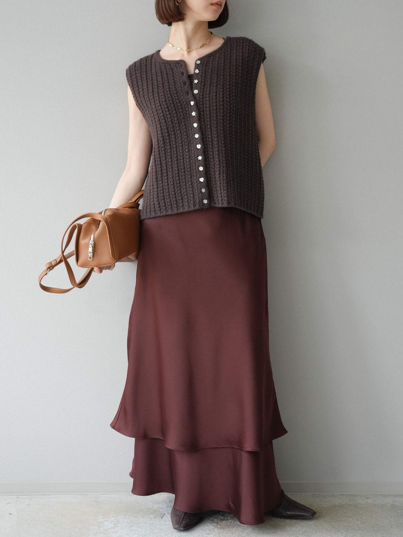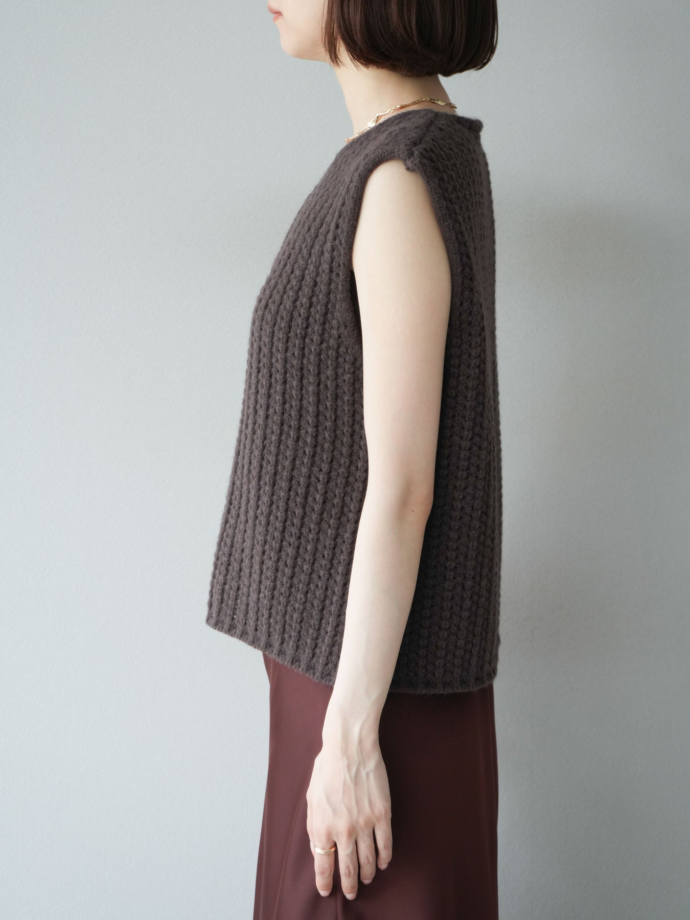 [予約]ランダムボタンニットベスト/ブラウン