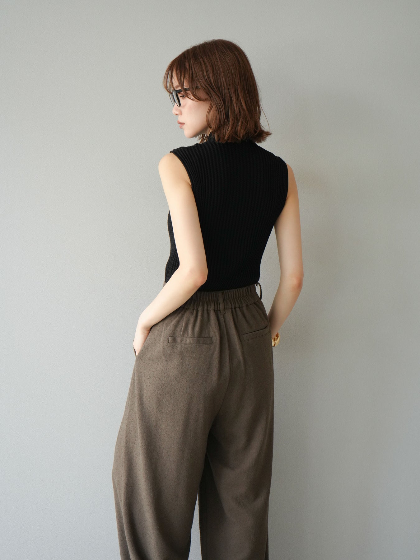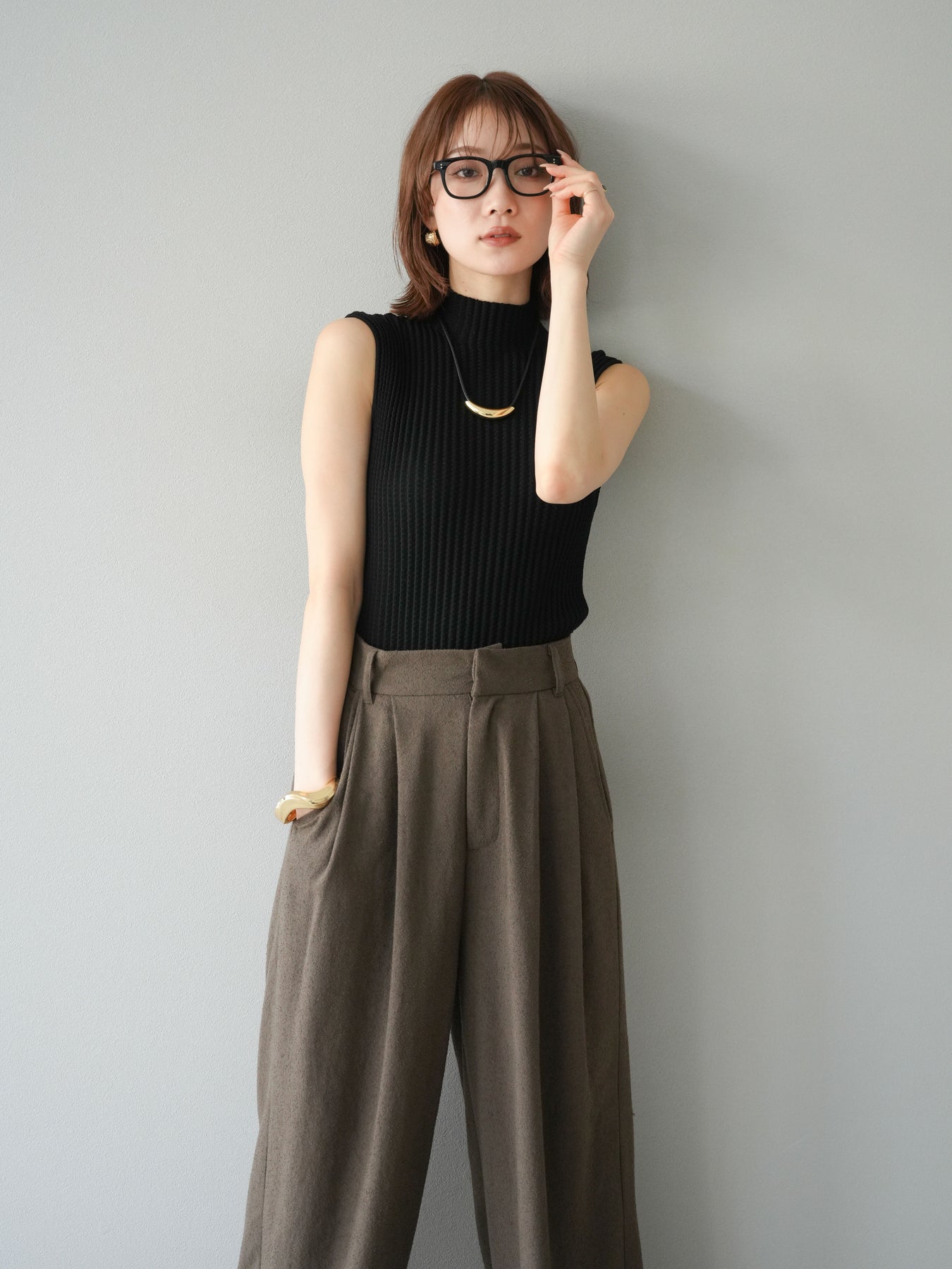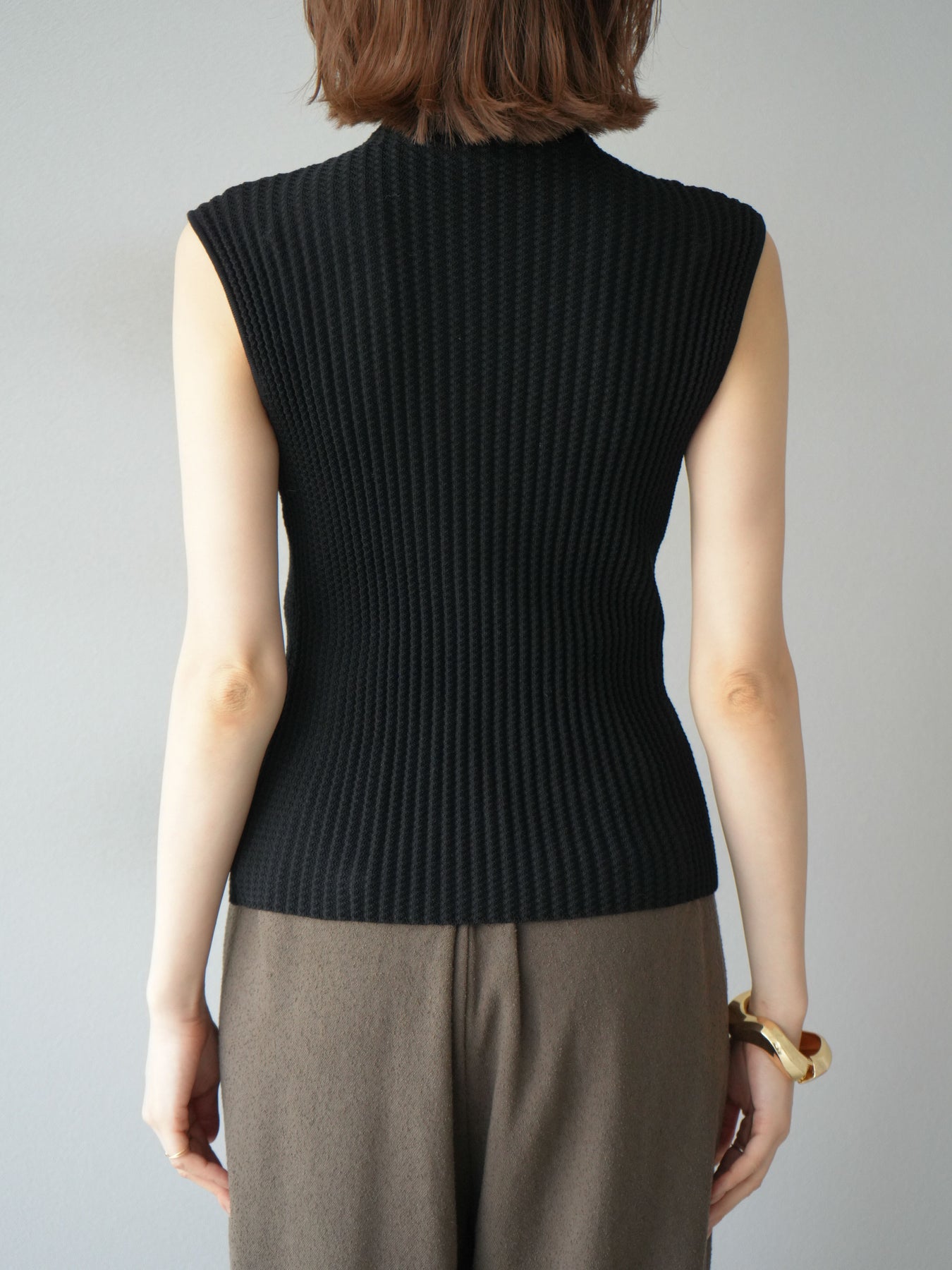 [予約]ボトルネックワッフル編みノースリーブニットトップスに関連する商品を探す↓