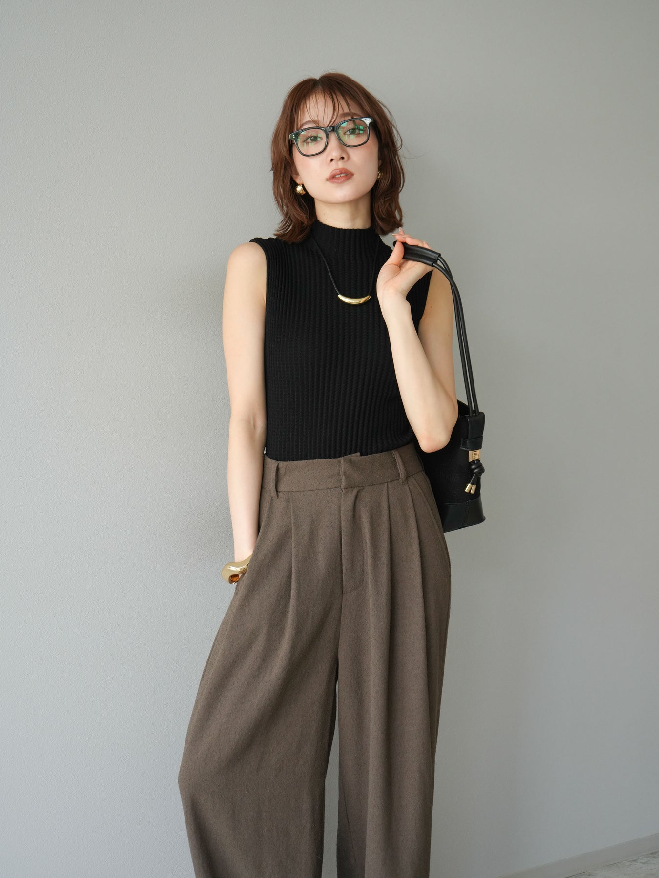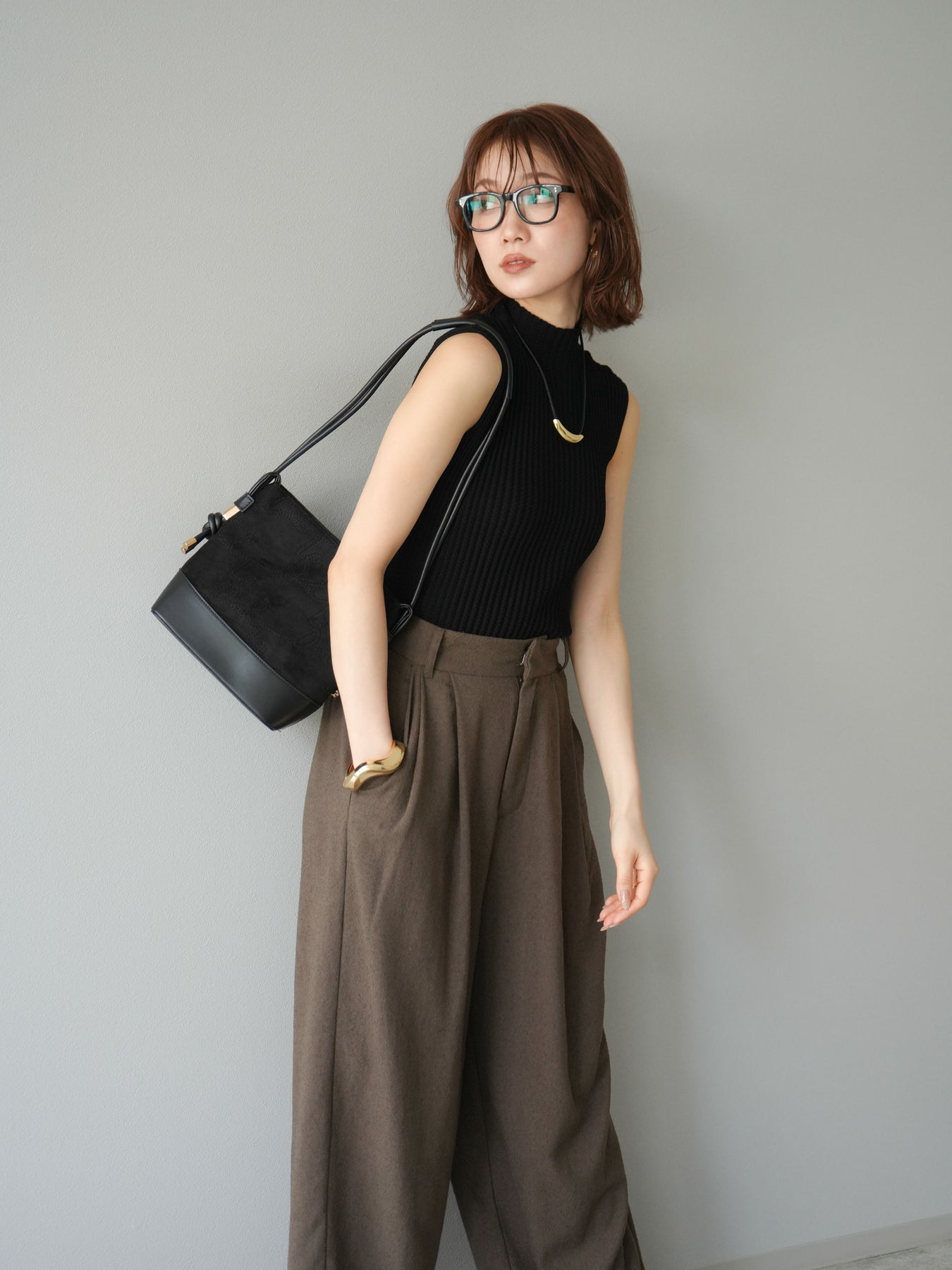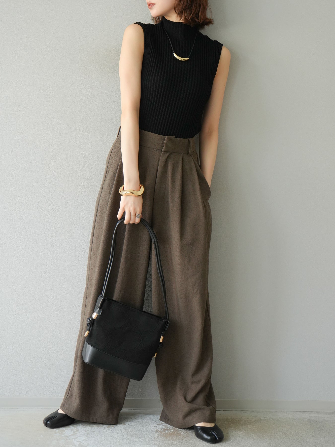 [予約]ボトルネックワッフル編みノースリーブニットトップスに関連する商品を探す↓