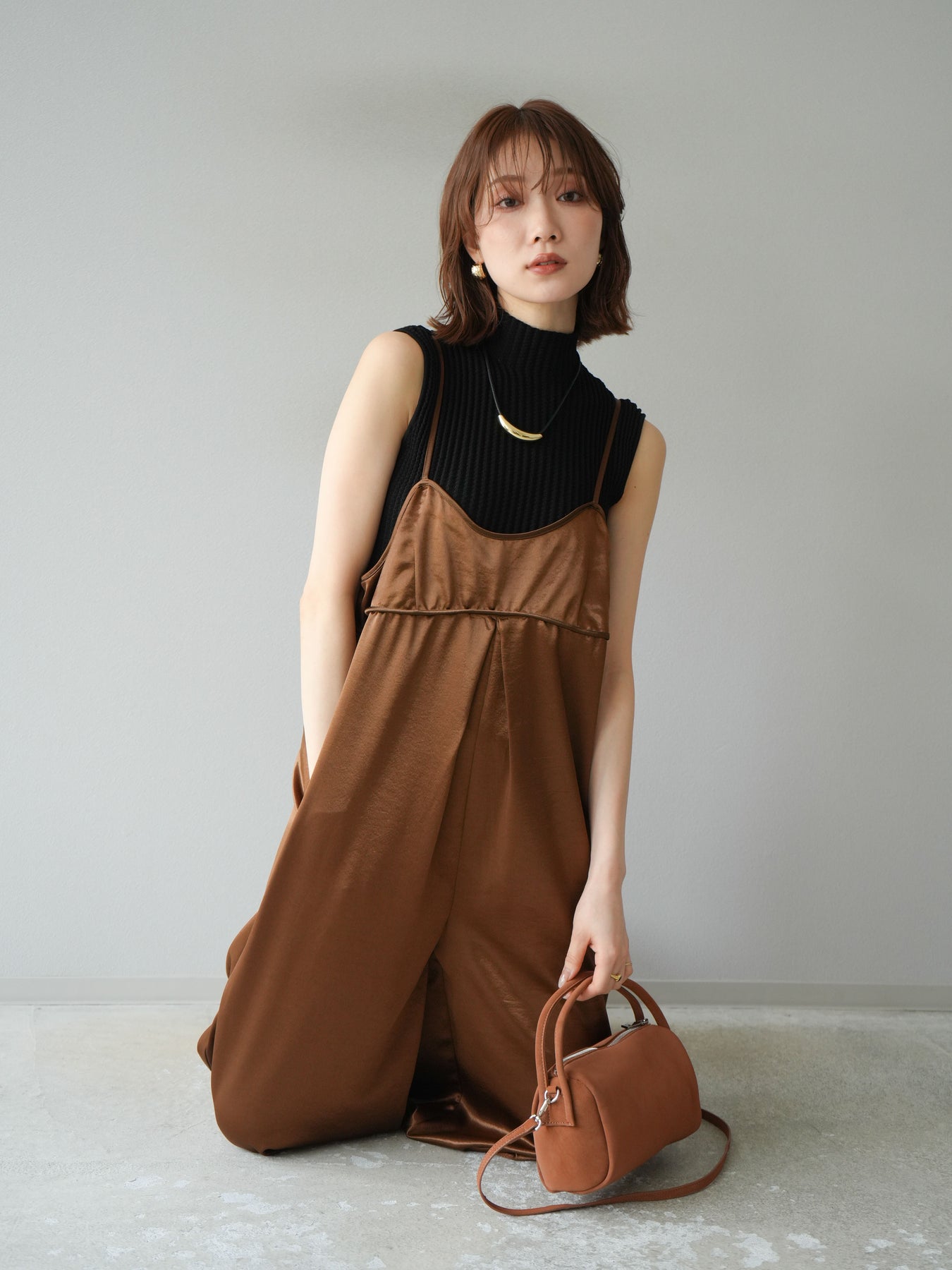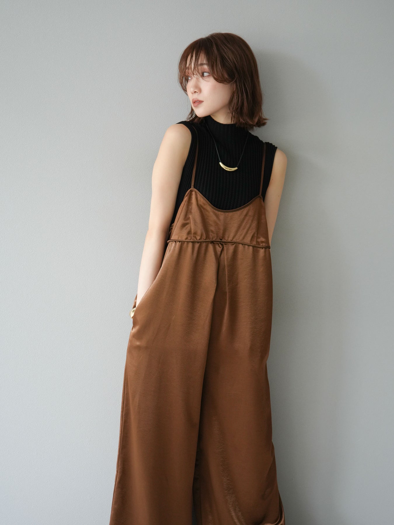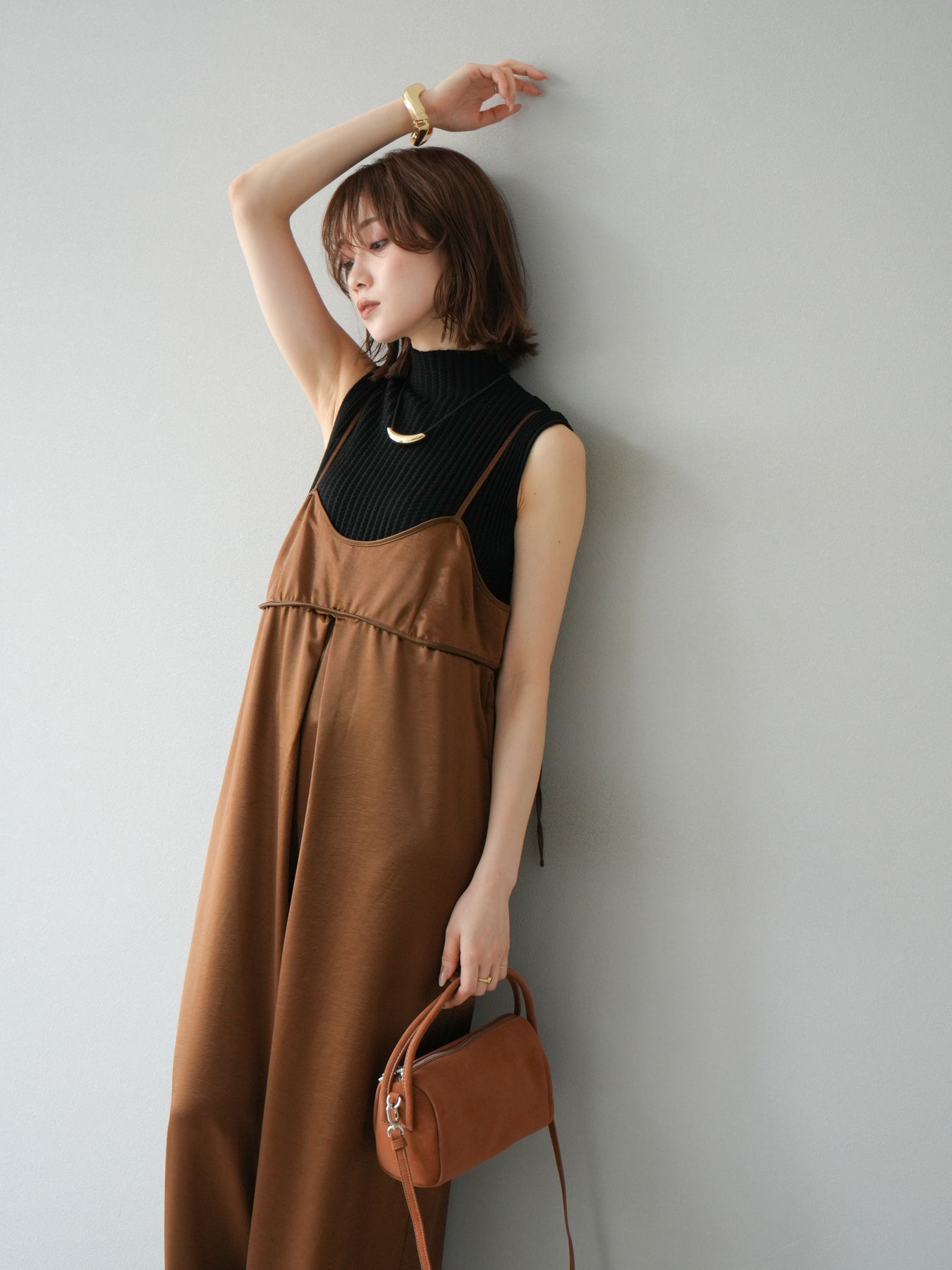 立体感のあるワッフル編みが特徴的なノースリーブニットトップス。程よく厚みのある生地感でシルエットをきれいに保ちつつ、伸縮性があり快適な着心地を叶えます。首元はボトルネック仕様で上品な印象をプラスし、1枚での着用はもちろん、ジャケットやカーディガンのインナーとしても重宝。コンパクトな丈感でボトムスを選ばず、パンツにもスカートにも合わせやすい万能なデザインです。シンプルながらも素材感で差をつけられる、デイリーに活躍するアイテムです。 ※ボトムス、キャミソール(インナー)以外の商品は一律でインナーは付属していません。