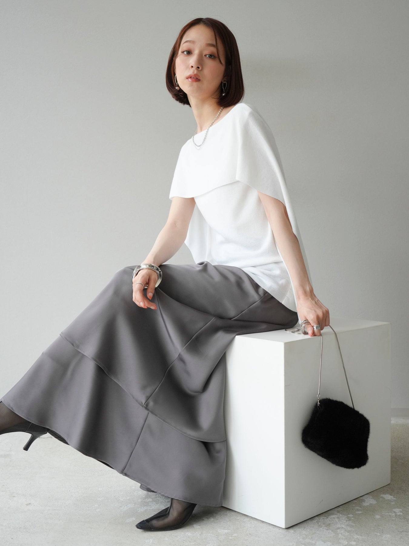 [予約]マントデザインスリットドルマンニットに関連する商品を探す↓