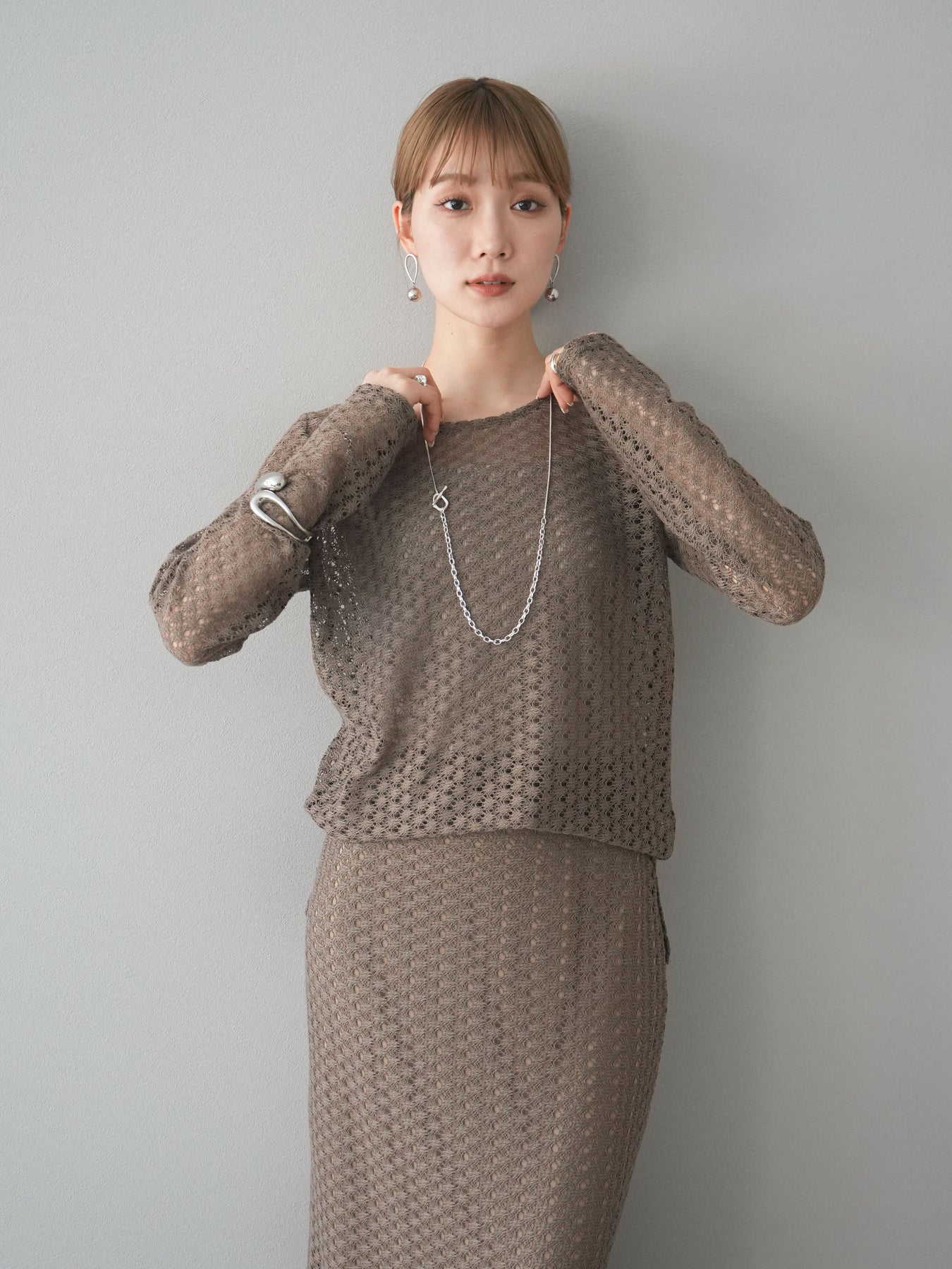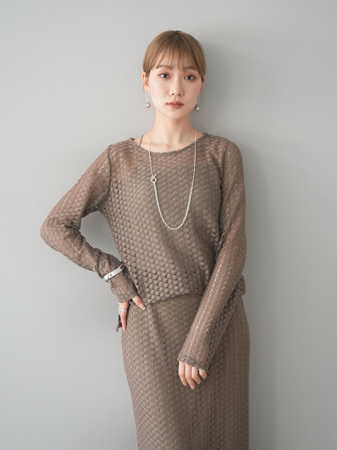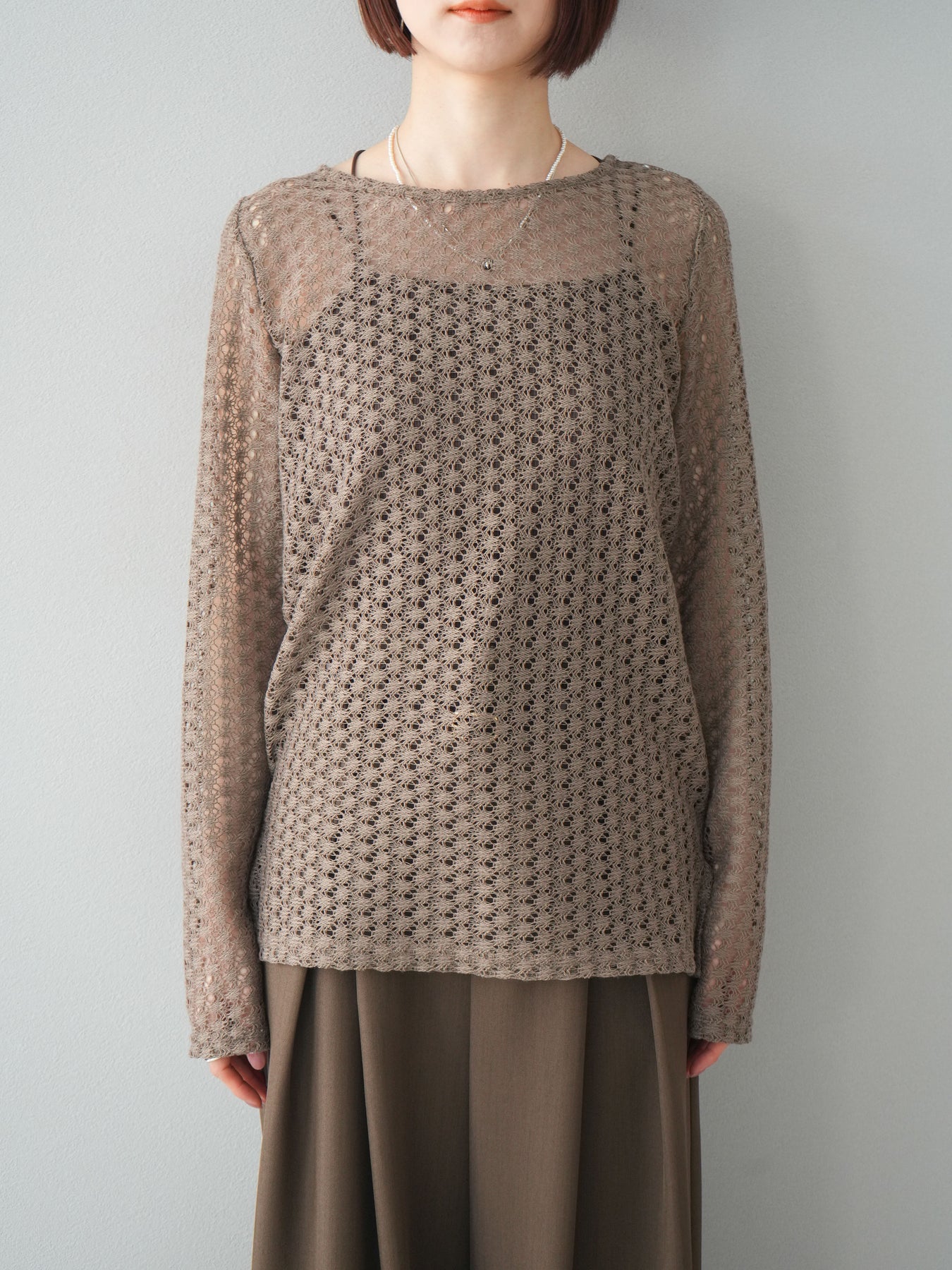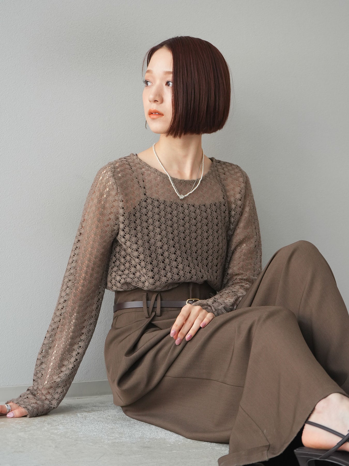 精緻的針織上衣,飾有迷人的鏤空圖案。適度的透明度營造出輕盈的質感,非常適合層疊穿搭。柔軟的布料穿著舒適,微微露出的肌膚更增添了成熟幹練的氣質。它不僅適合搭配休閒牛仔褲,也適合搭配女性化的下裝。時尚的設計,完美契合季節更迭。 ※除下裝、吊帶背心(內衣)以外的商品均為標準品,不含內衣。
