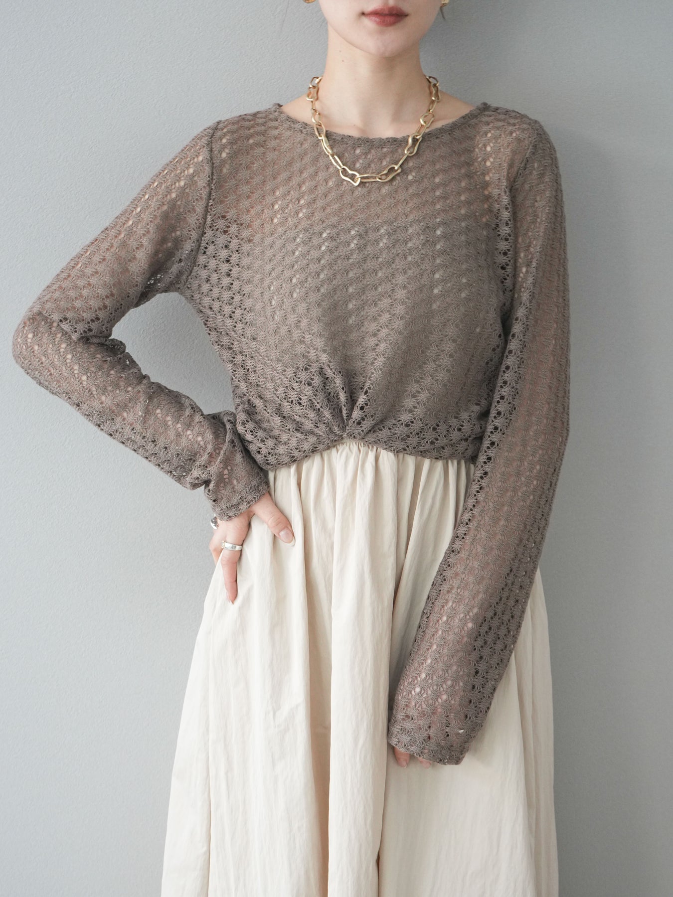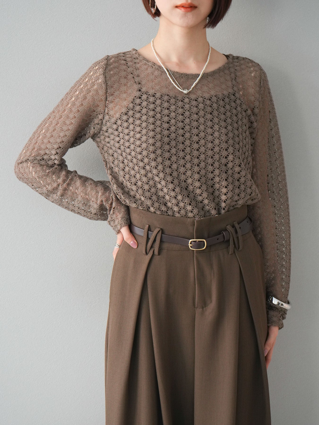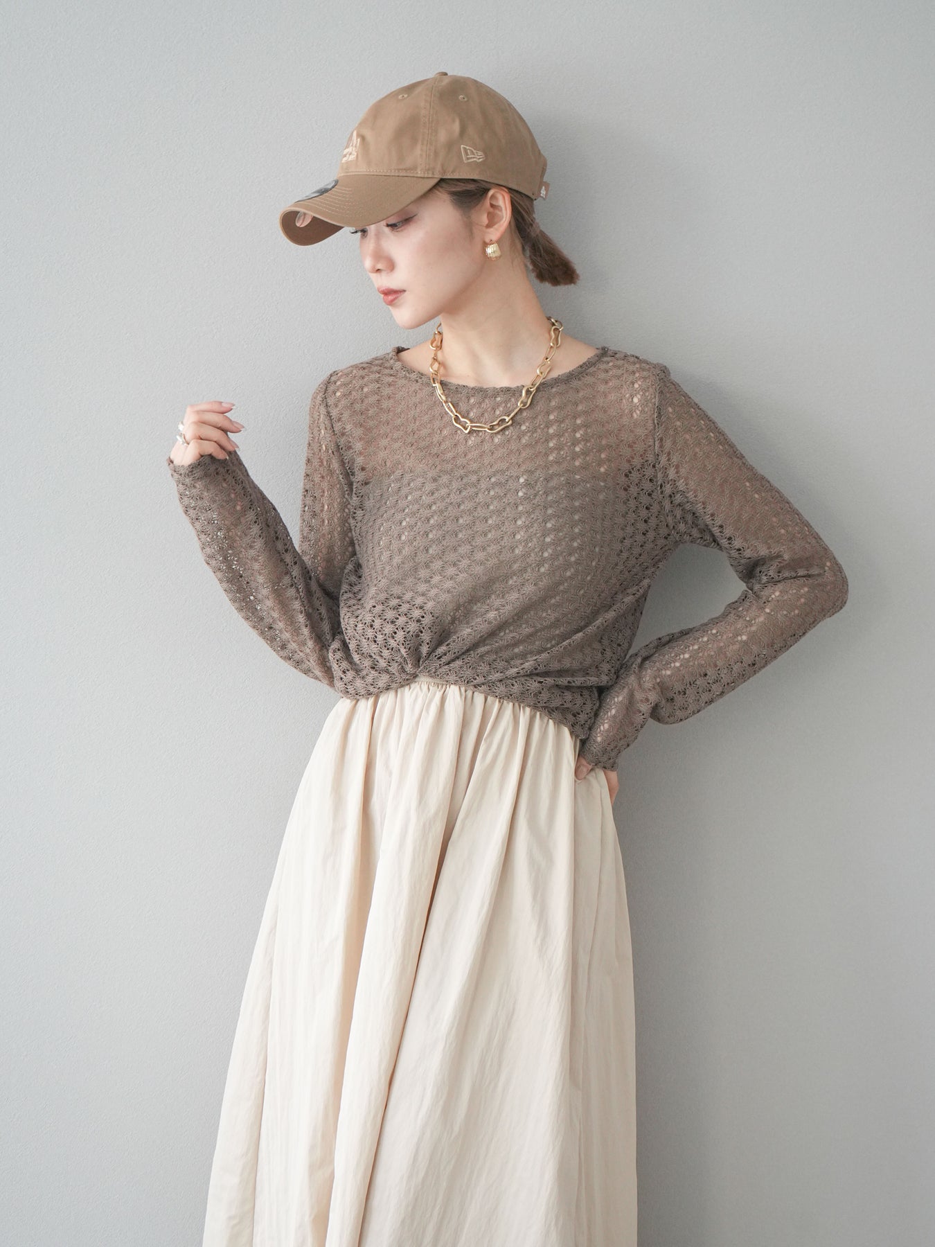 精緻的針織上衣,飾有迷人的鏤空圖案。適度的透明度營造出輕盈的質感,非常適合層疊穿搭。柔軟的布料穿著舒適,微微露出的肌膚更增添了成熟幹練的氣質。它不僅適合搭配休閒牛仔褲,也適合搭配女性化的下裝。時尚的設計,完美契合季節更迭。 ※除下裝、吊帶背心(內衣)以外的商品均為標準品,不含內衣。