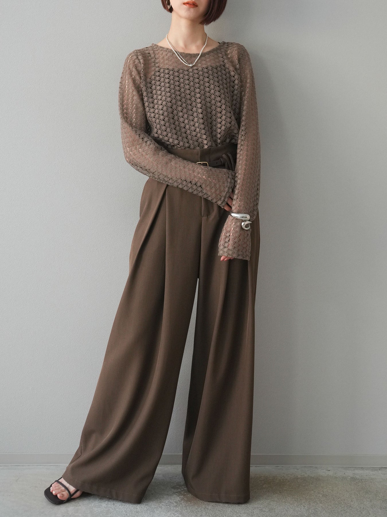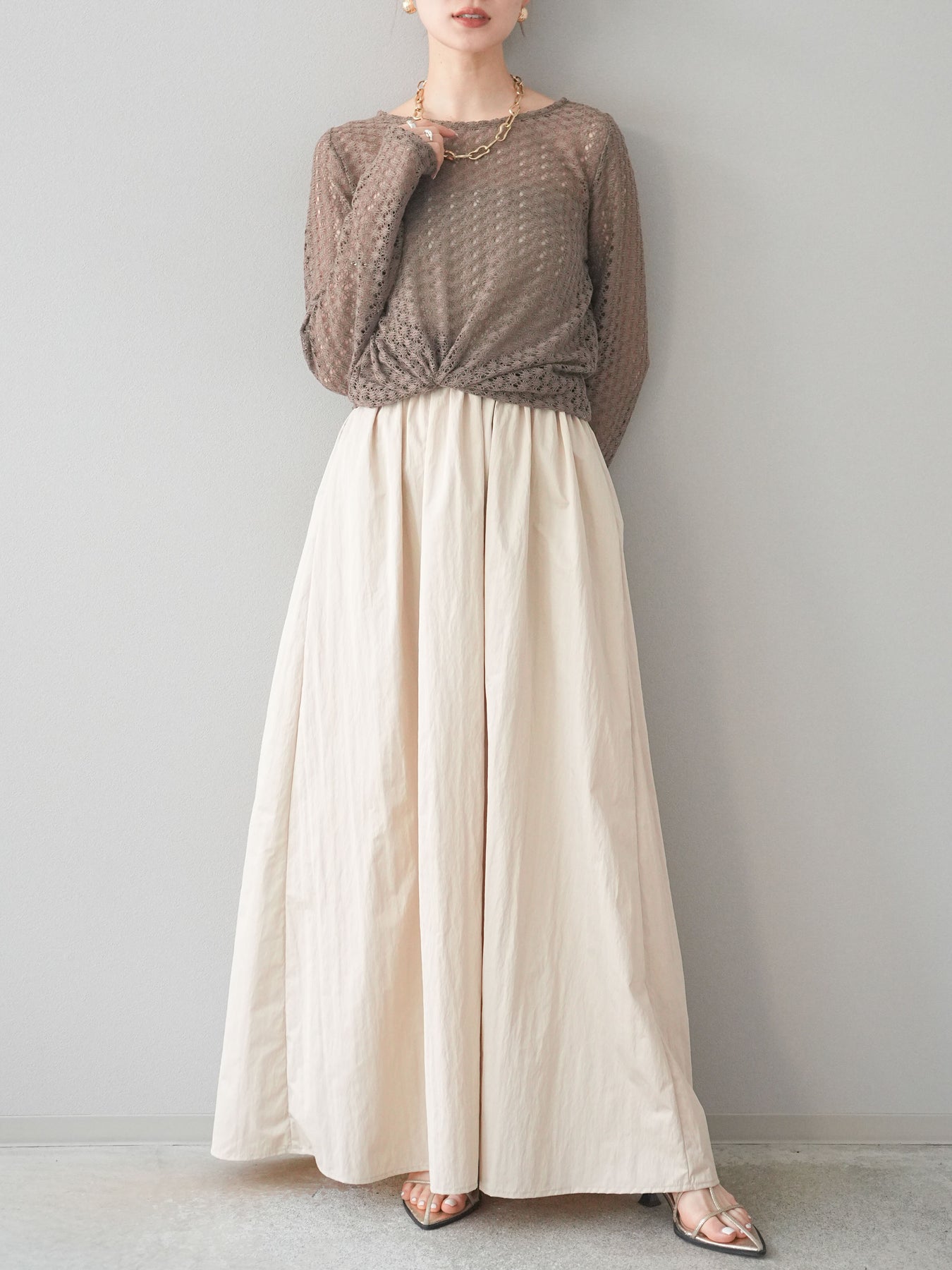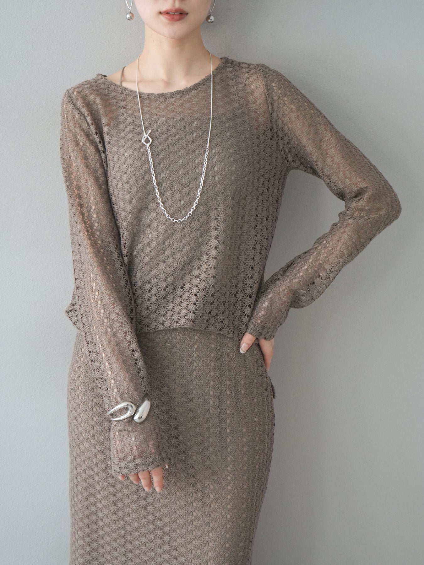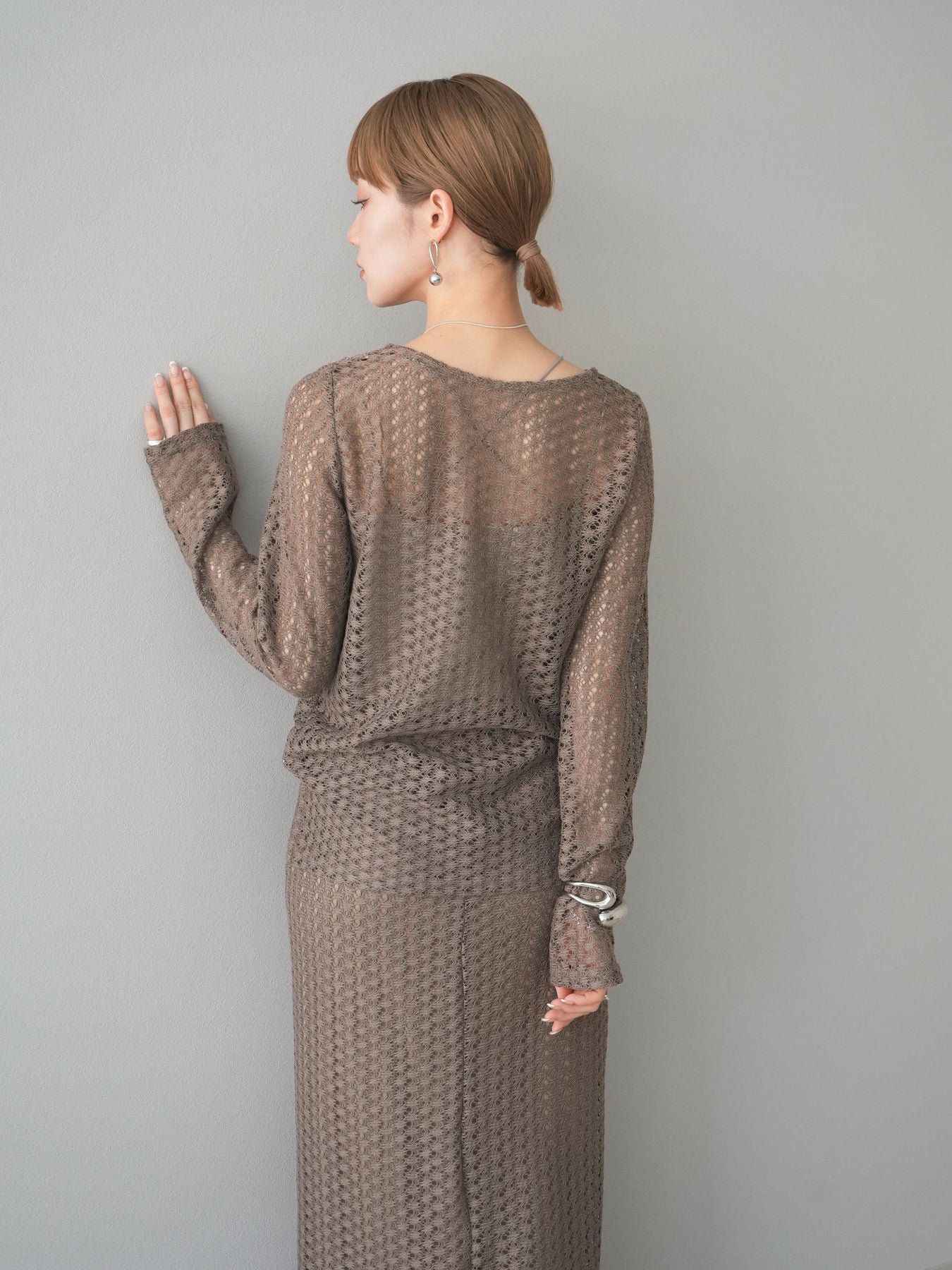 精緻的針織上衣,飾有迷人的鏤空圖案。適度的透明度營造出輕盈的質感,非常適合層疊穿搭。柔軟的布料穿著舒適,微微露出的肌膚更增添了成熟幹練的氣質。它不僅適合搭配休閒牛仔褲,也適合搭配女性化的下裝。時尚的設計,完美契合季節更迭。 ※除下裝、吊帶背心(內衣)以外的商品均為標準品,不含內衣。