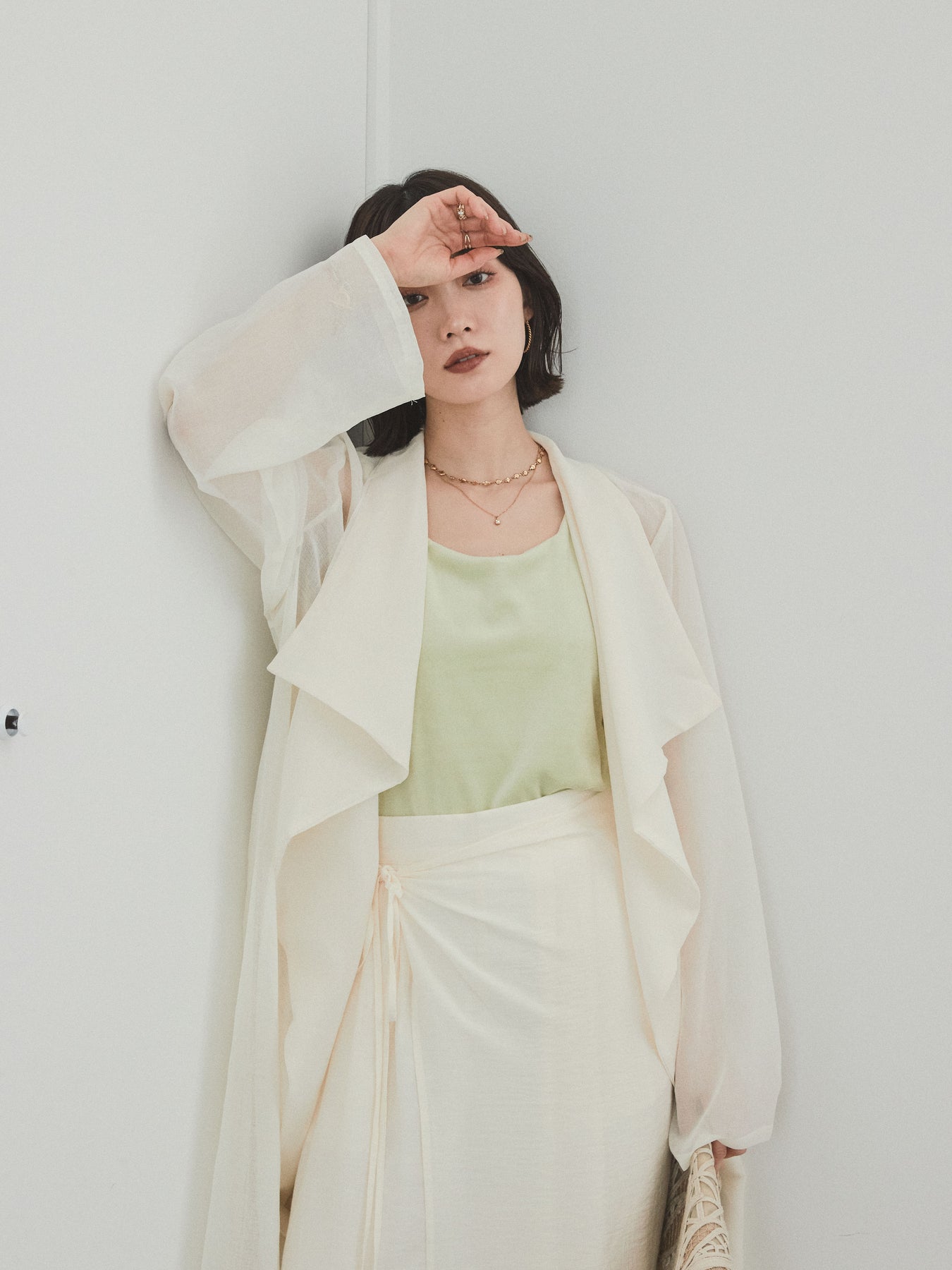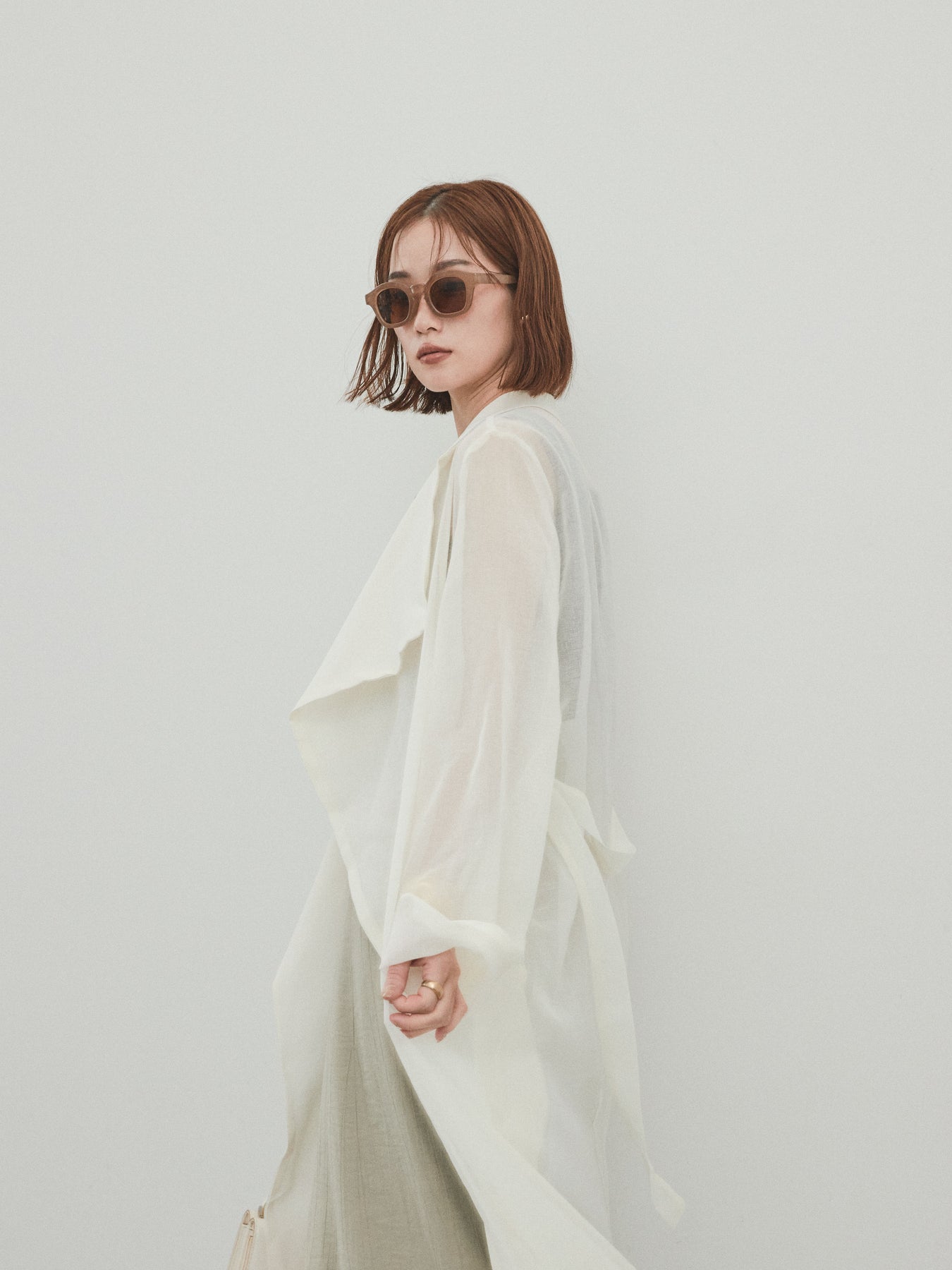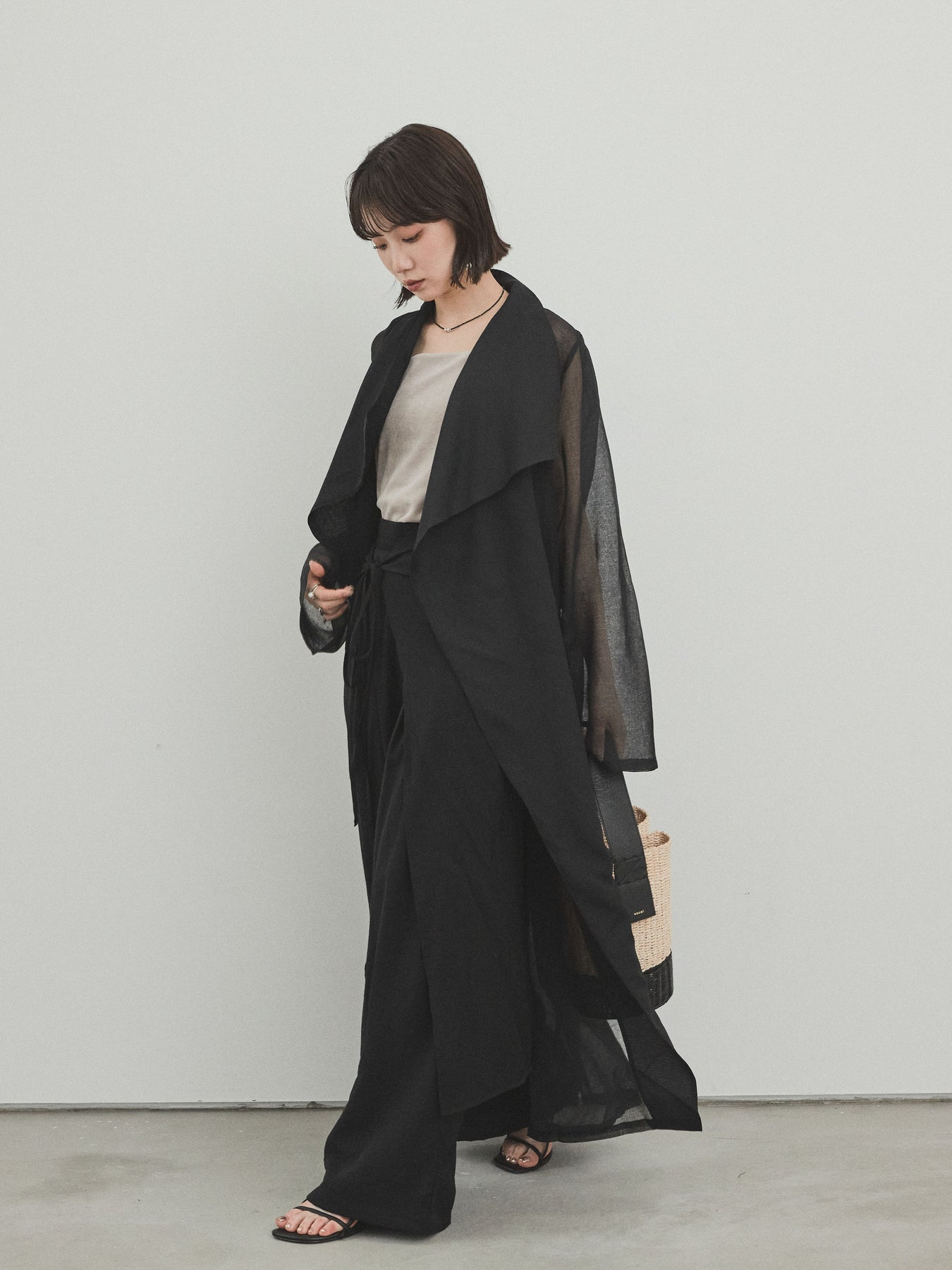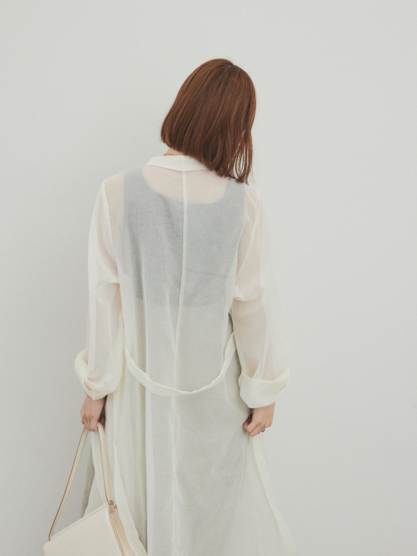 輕盈透視的長版外套。適度寬鬆的輪廓和腰帶,營造出輕鬆俐落的造型。只要輕輕一披,就能為你的造型增添一抹魅力與精緻。它是一款百搭單品,可搭配褲裝或洋裝等不同單品,輕鬆變換風格。享受清爽成熟的疊穿風格,完美契合春夏季節。 ※除下裝、吊帶背心(內衣)以外的商品均不含內衣。