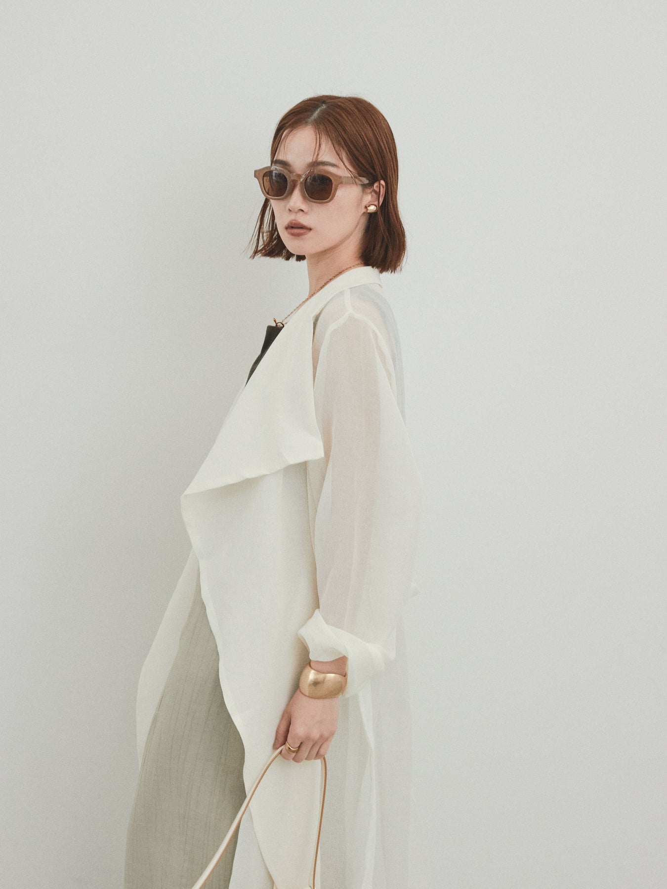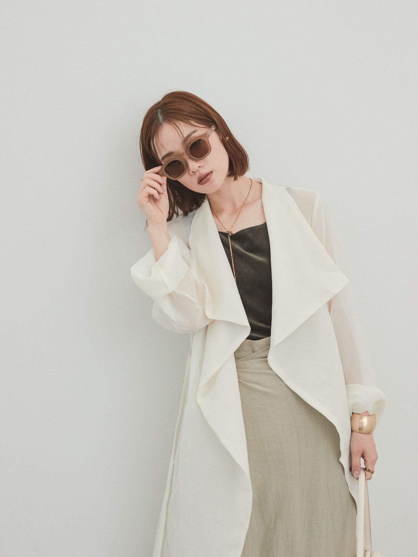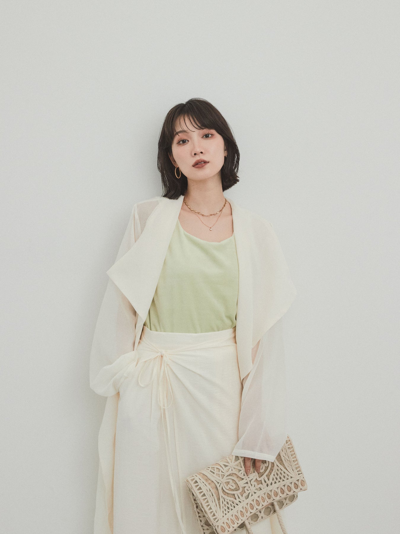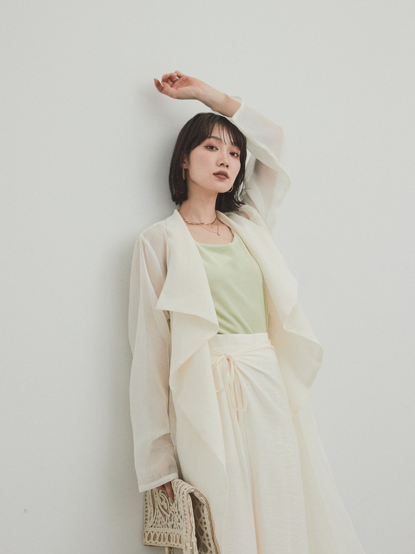 輕盈透視的長版外套。適度寬鬆的輪廓和腰帶,營造出輕鬆俐落的造型。只要輕輕一披,就能為你的造型增添一抹魅力與精緻。它是一款百搭單品,可搭配褲裝或洋裝等不同單品,輕鬆變換風格。享受清爽成熟的疊穿風格,完美契合春夏季節。 ※除下裝、吊帶背心(內衣)以外的商品均不含內衣。