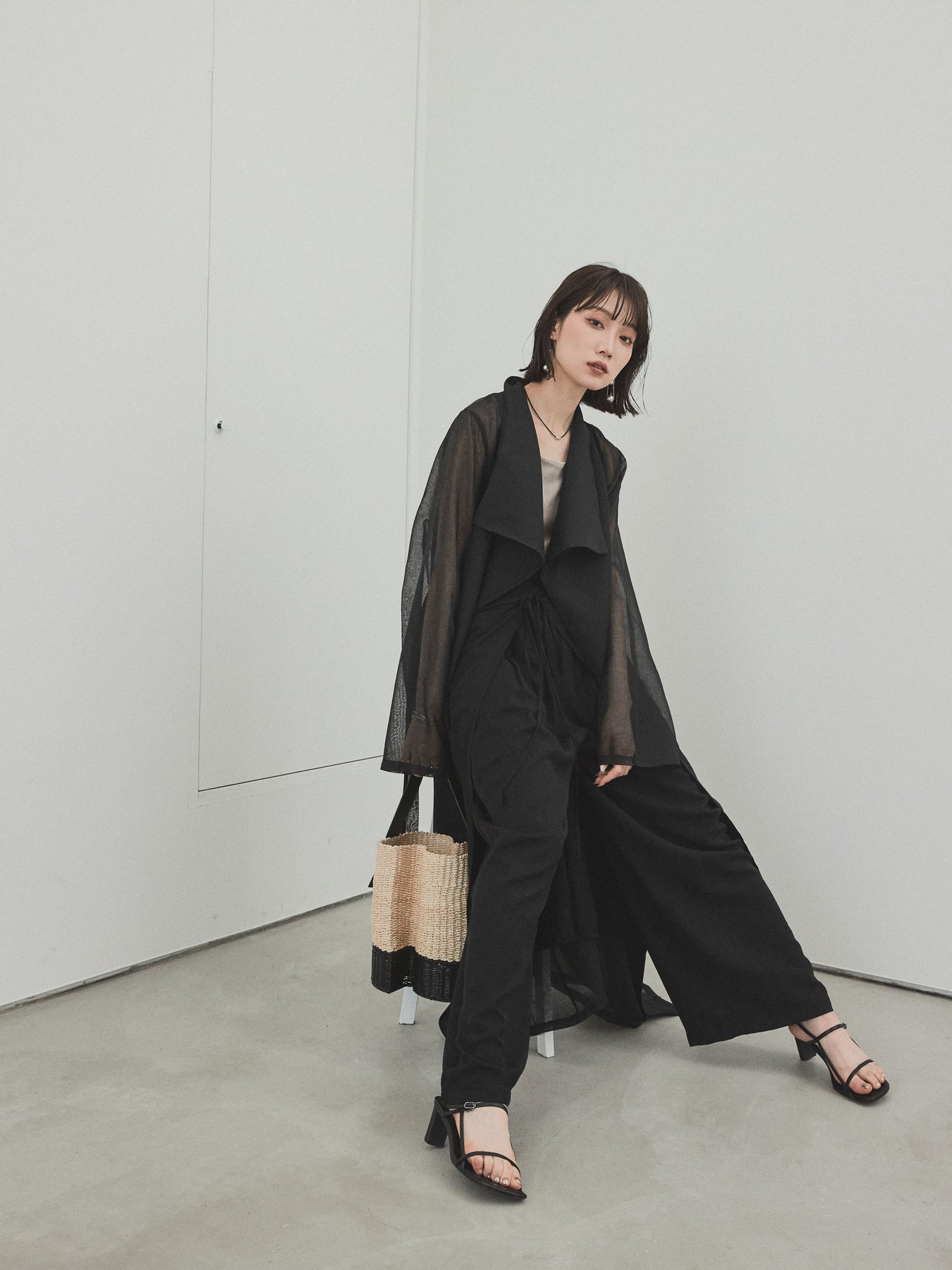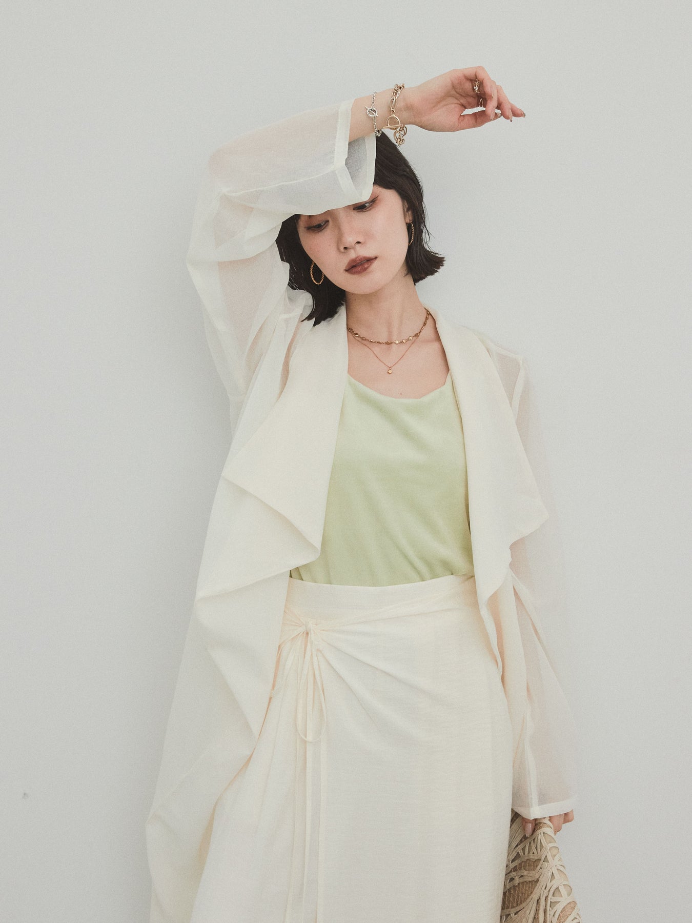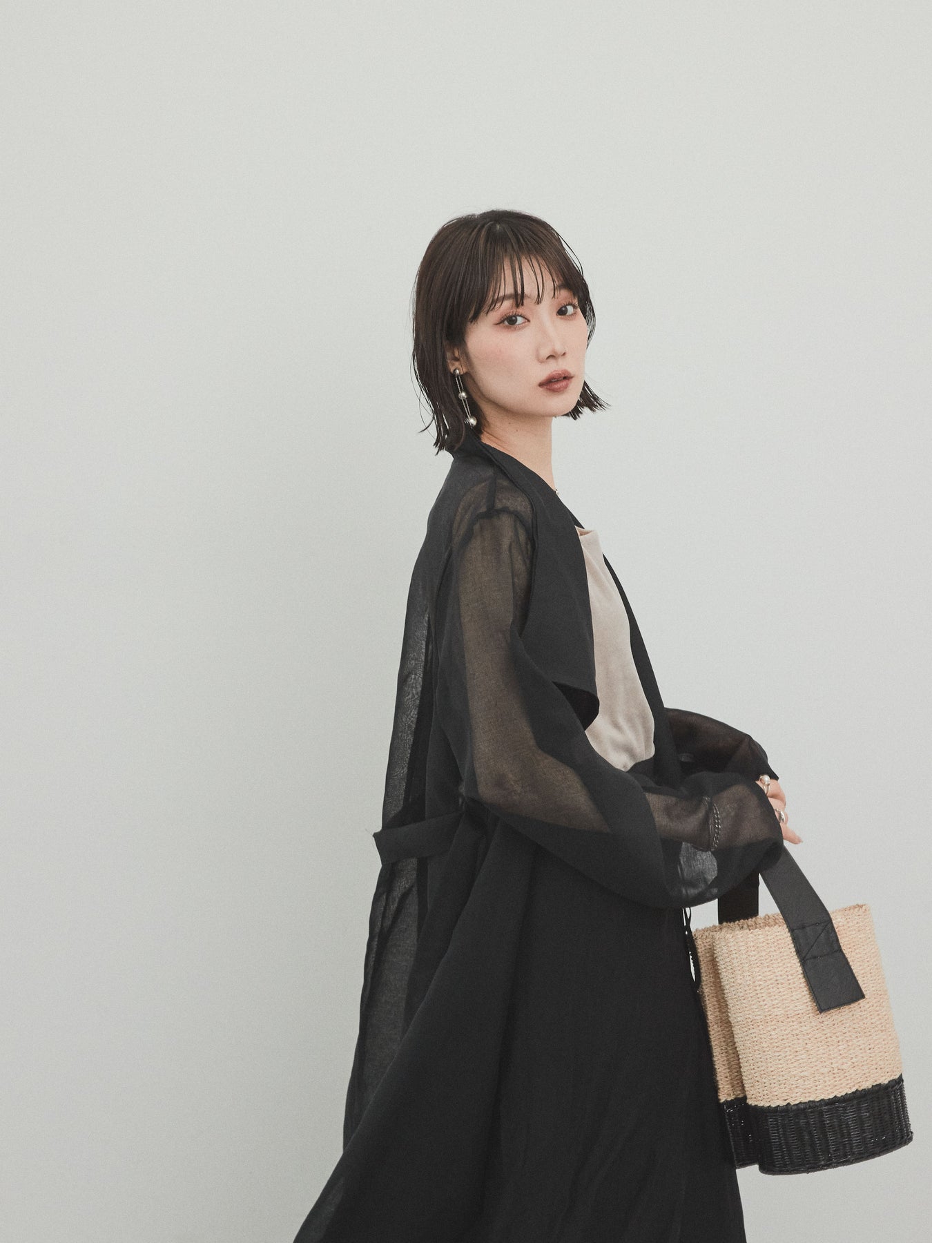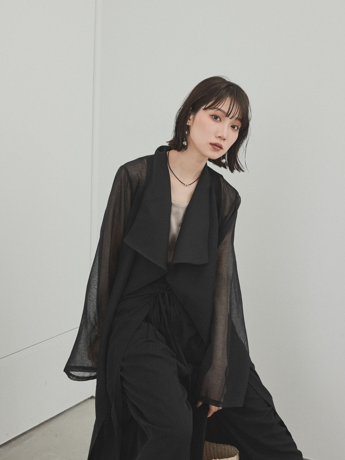 輕盈透視的長版外套。適度寬鬆的輪廓和腰帶,營造出輕鬆俐落的造型。只要輕輕一披,就能為你的造型增添一抹魅力與精緻。它是一款百搭單品,可搭配褲裝或洋裝等不同單品,輕鬆變換風格。享受清爽成熟的疊穿風格,完美契合春夏季節。 ※除下裝、吊帶背心(內衣)以外的商品均不含內衣。