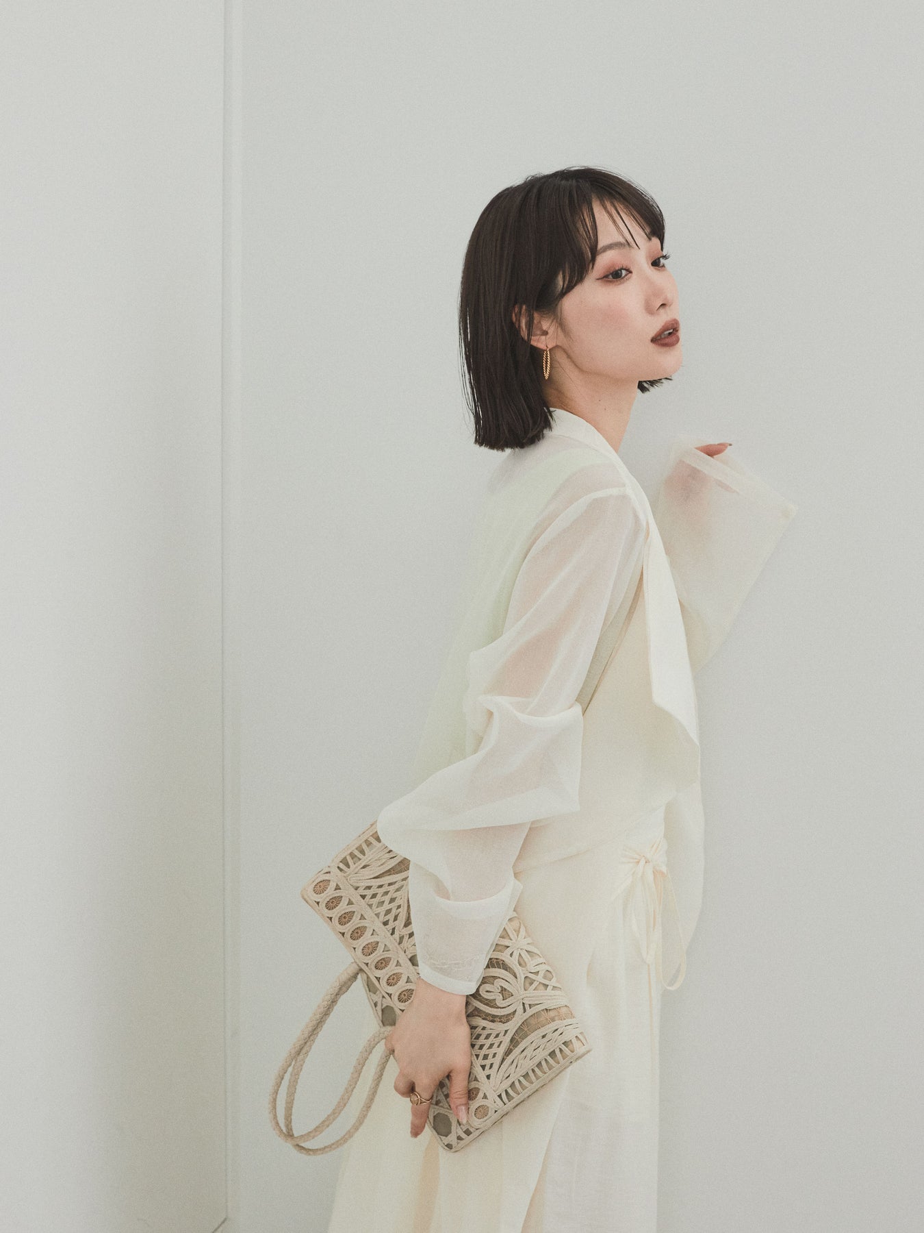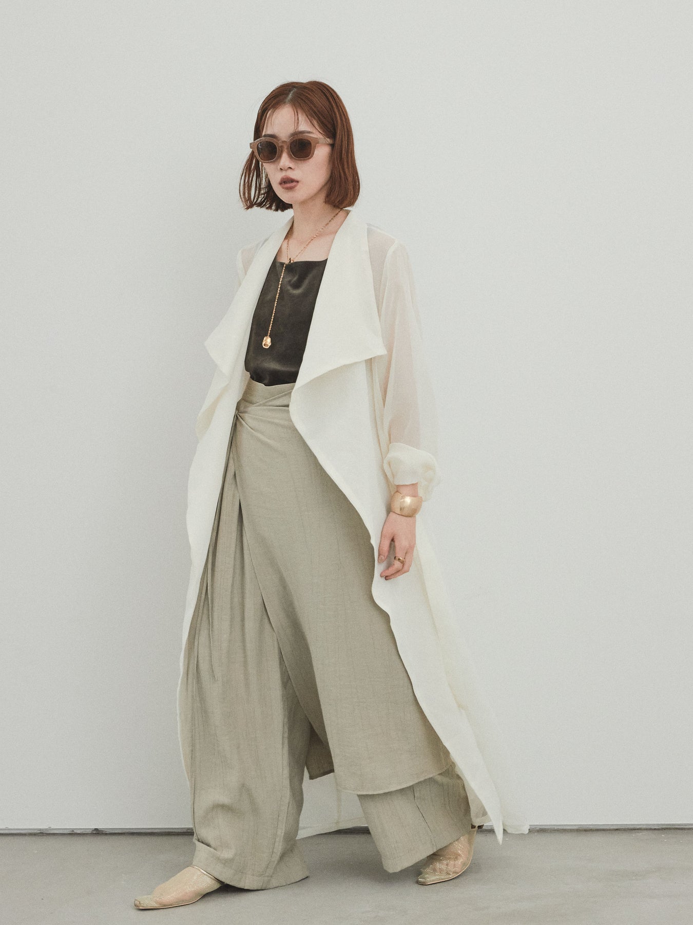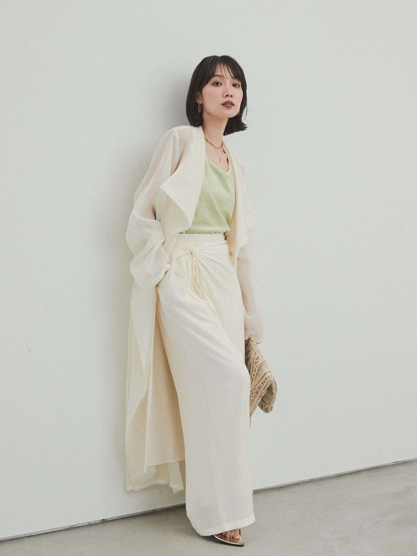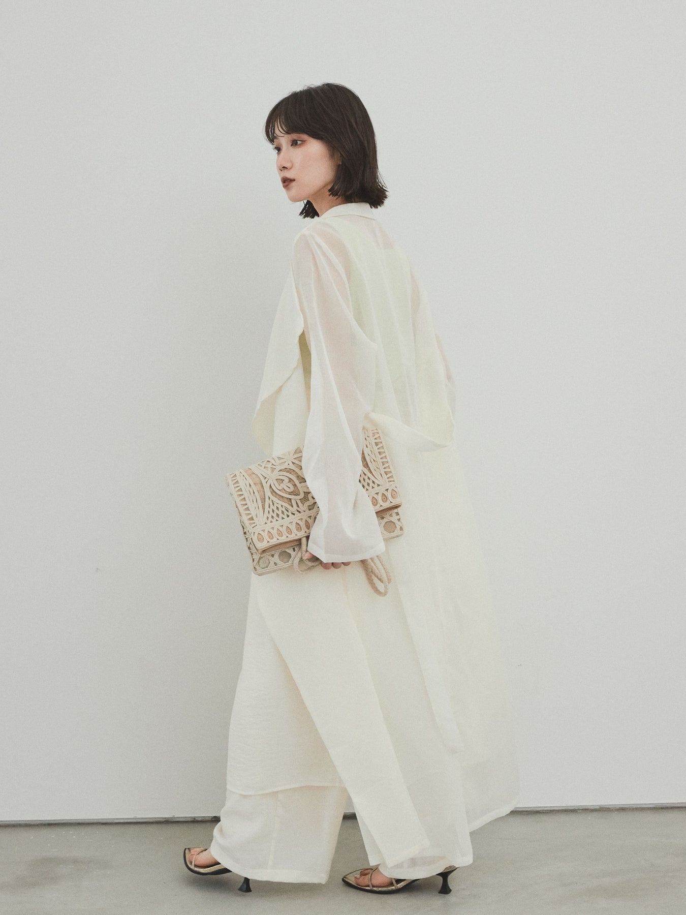 輕盈透視的長版外套。適度寬鬆的輪廓和腰帶,營造出輕鬆俐落的造型。只要輕輕一披,就能為你的造型增添一抹魅力與精緻。它是一款百搭單品,可搭配褲裝或洋裝等不同單品,輕鬆變換風格。享受清爽成熟的疊穿風格,完美契合春夏季節。 ※除下裝、吊帶背心(內衣)以外的商品均不含內衣。