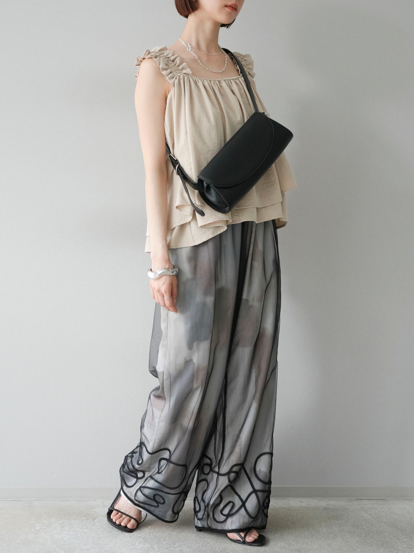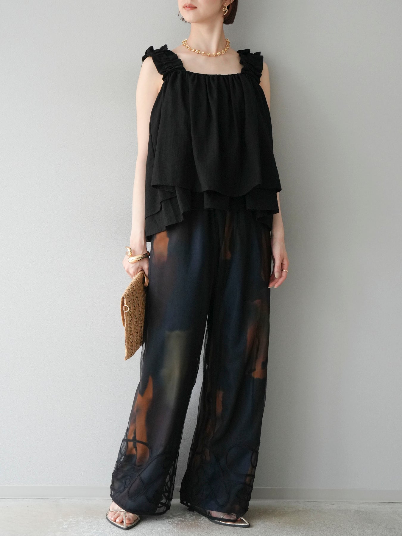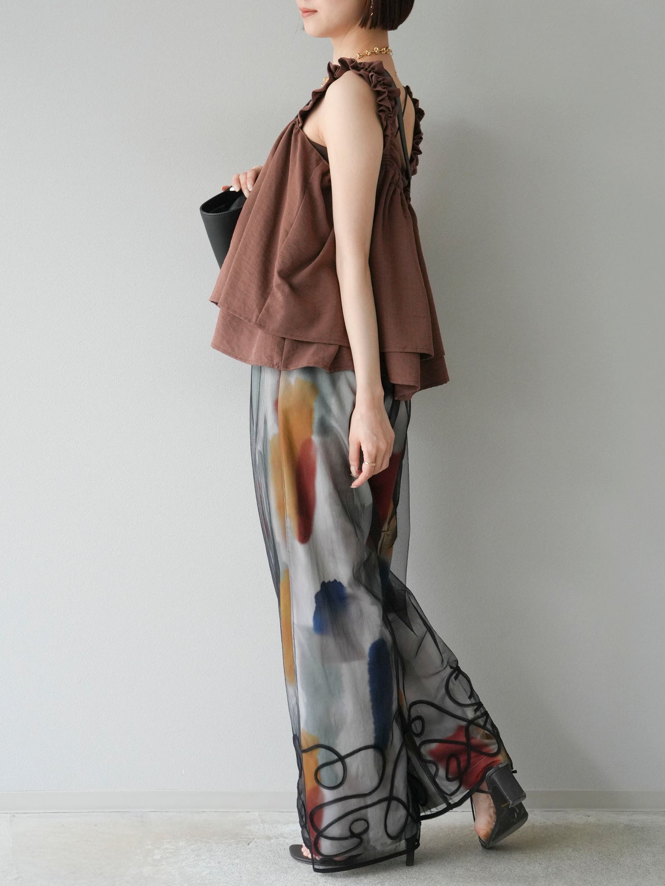 [SET] 縮肩喇叭背心 + 水彩藝術休閒褲 (2 件組)