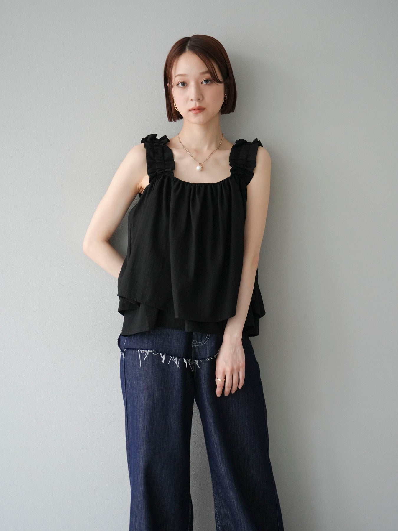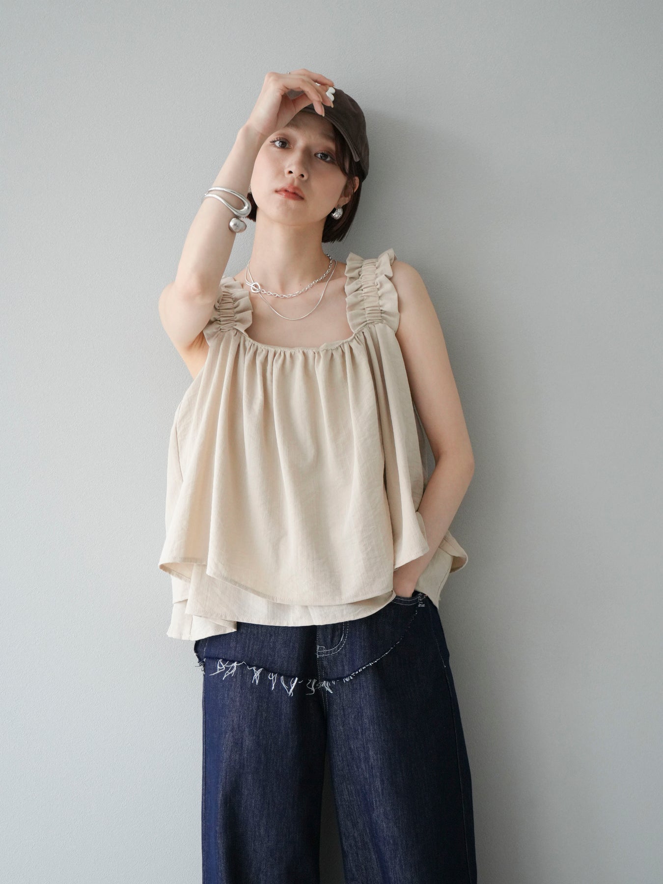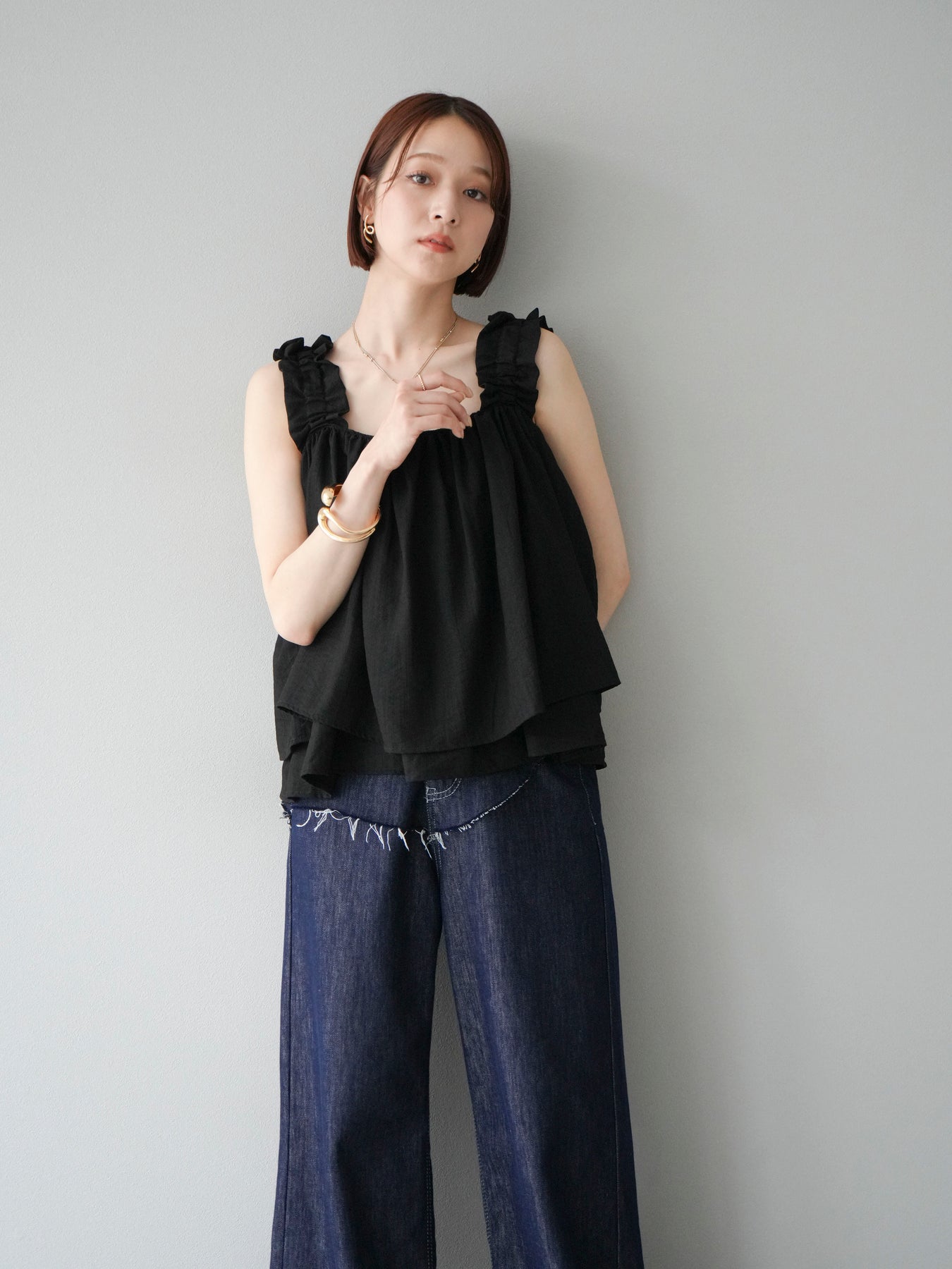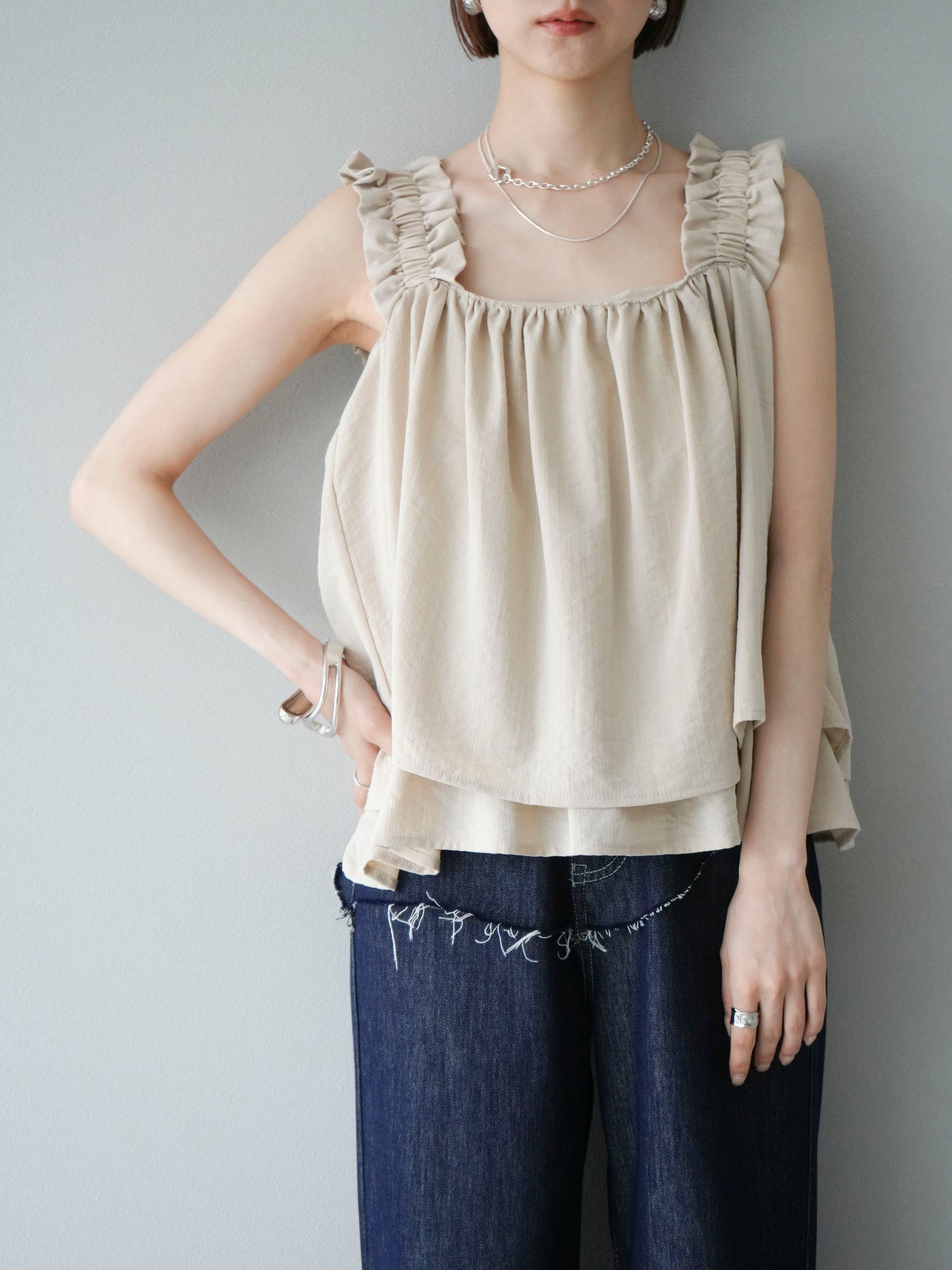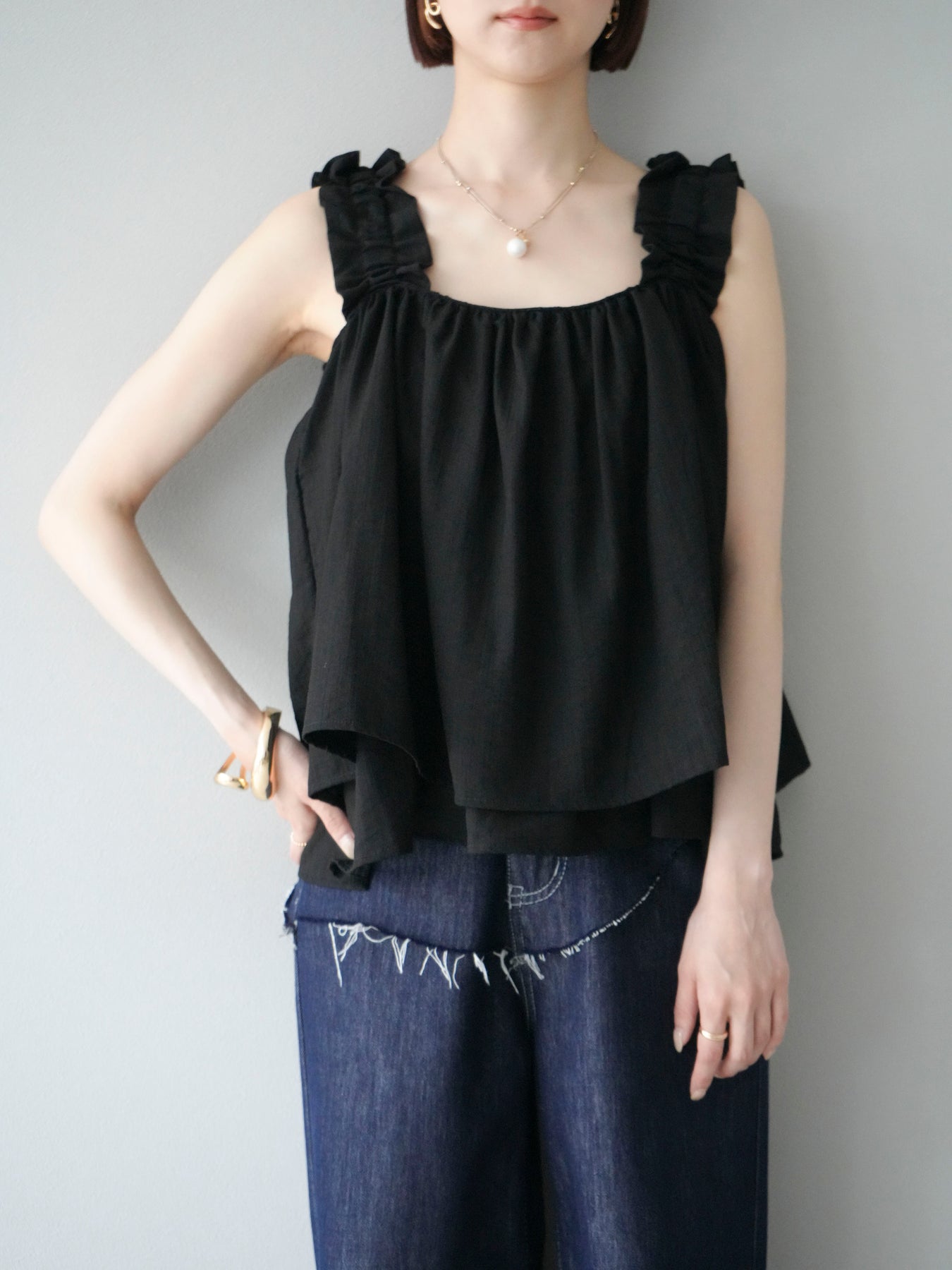 ◆ 【預購】肩部皺褶喇叭背心