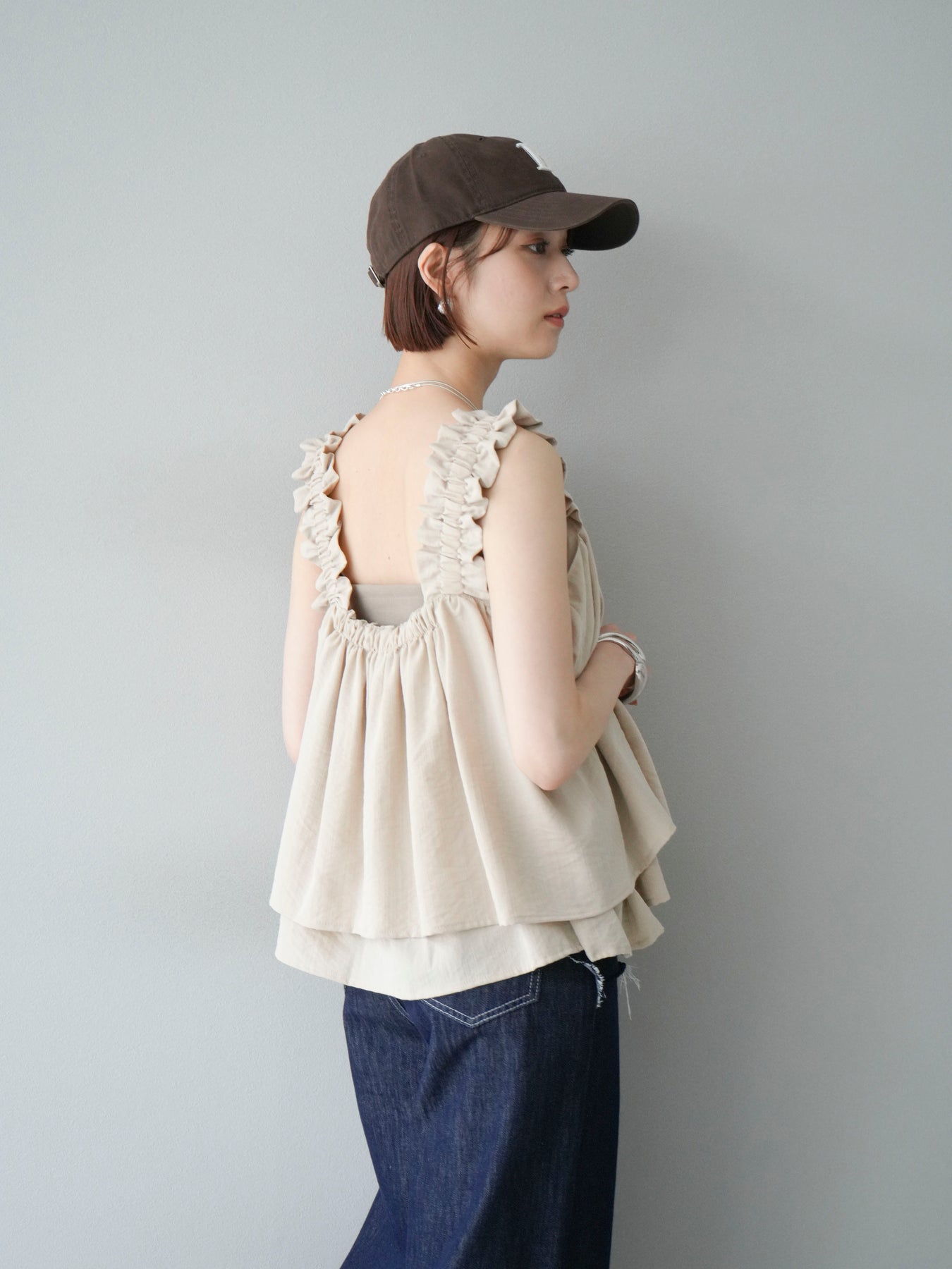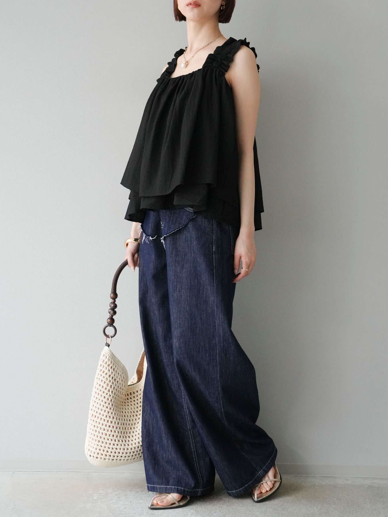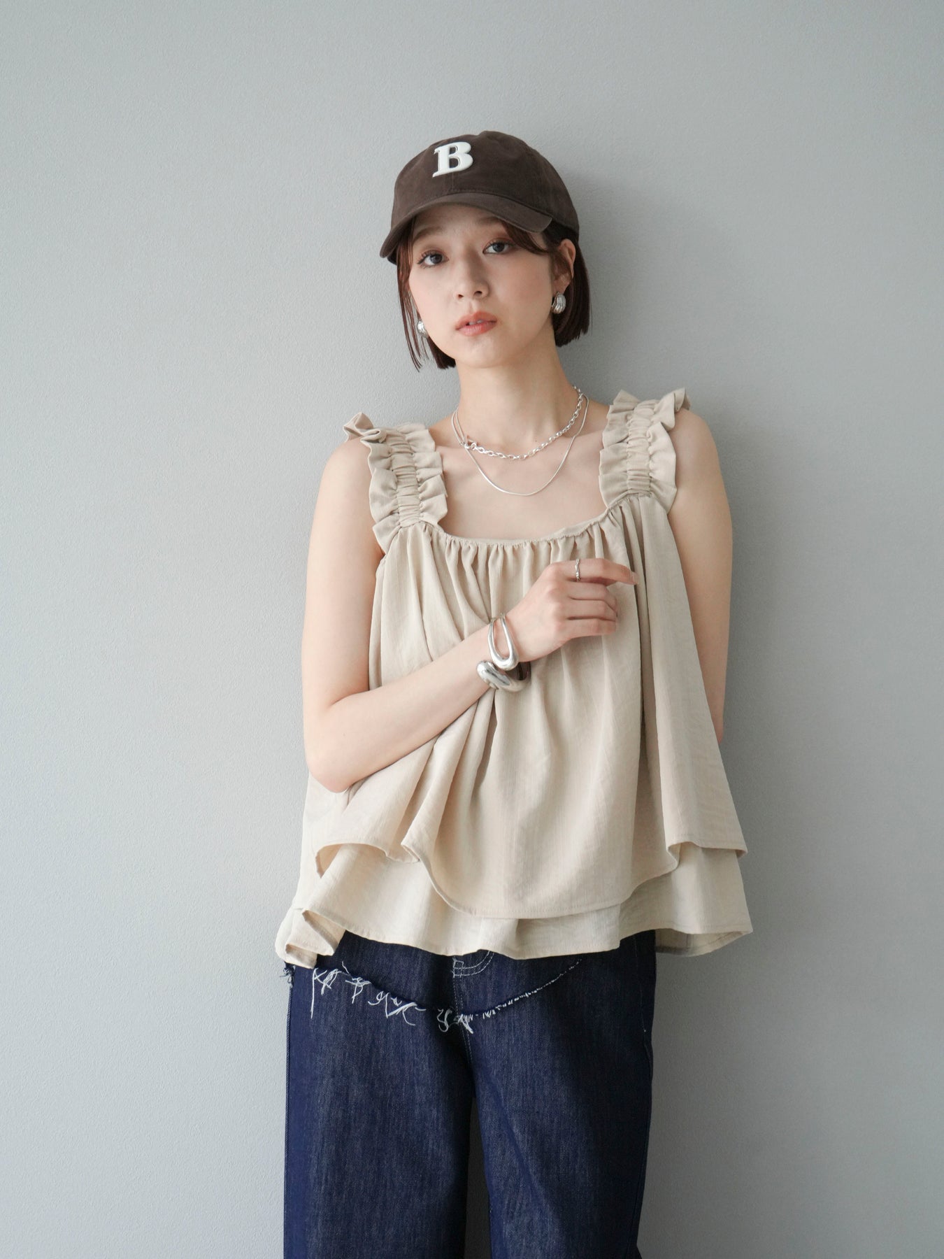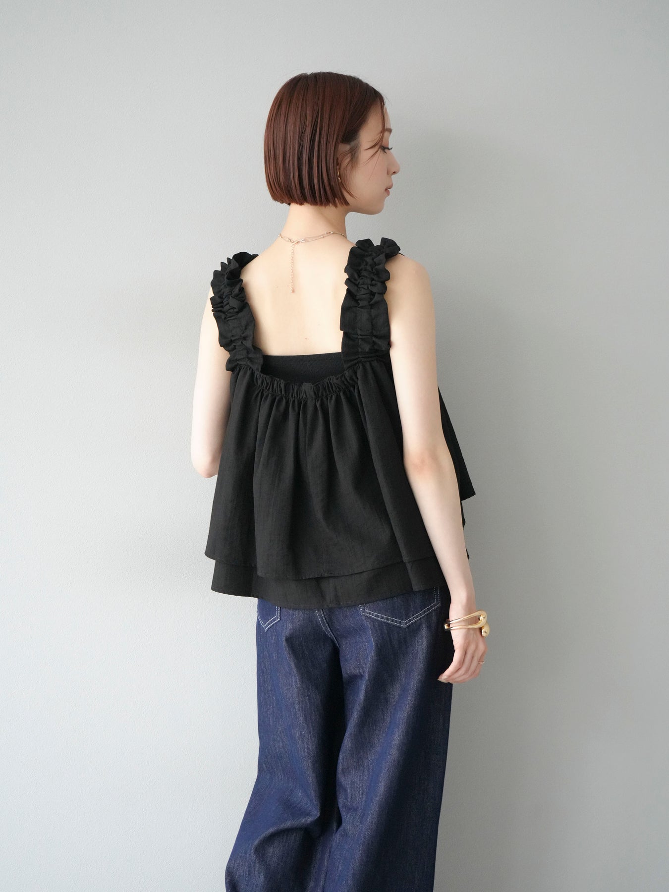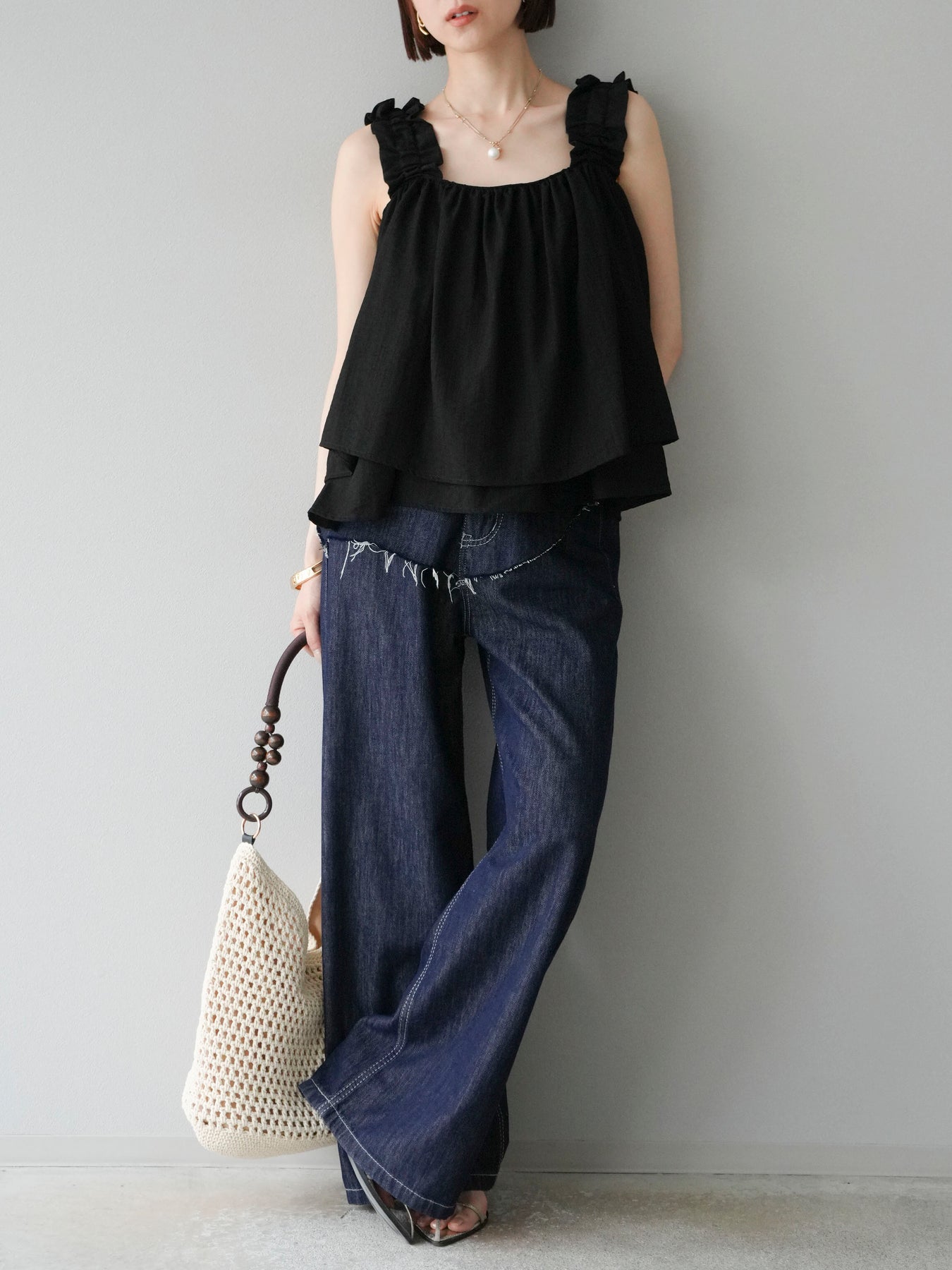 ◆ 【預購】肩部皺褶喇叭背心