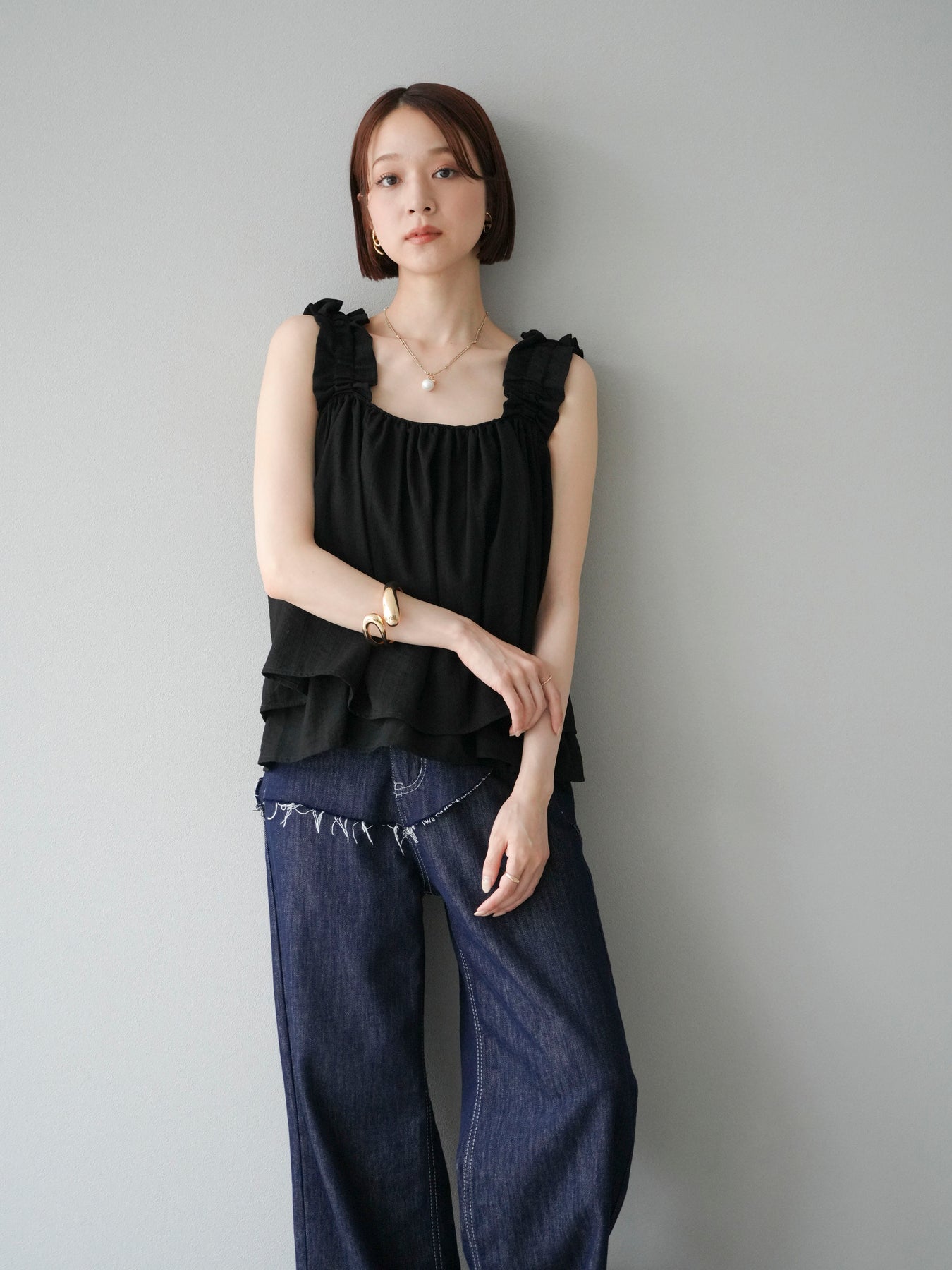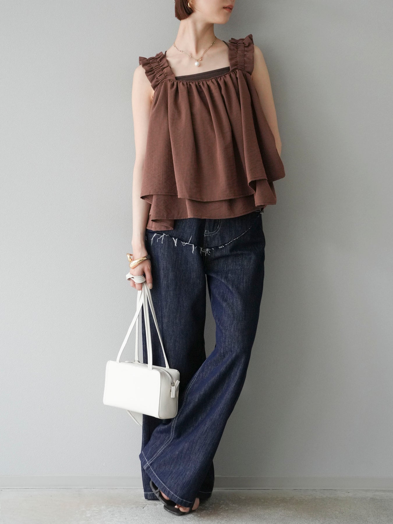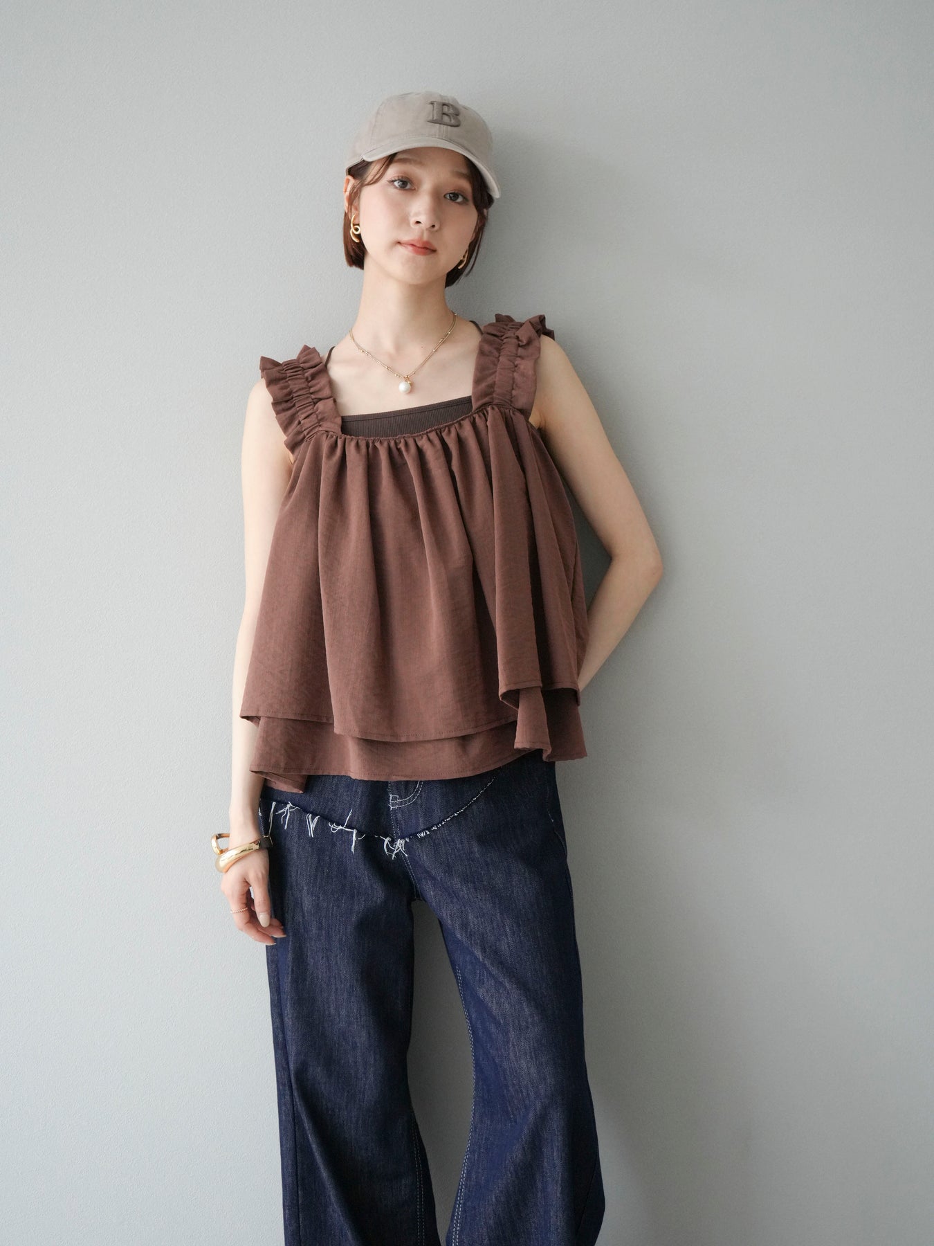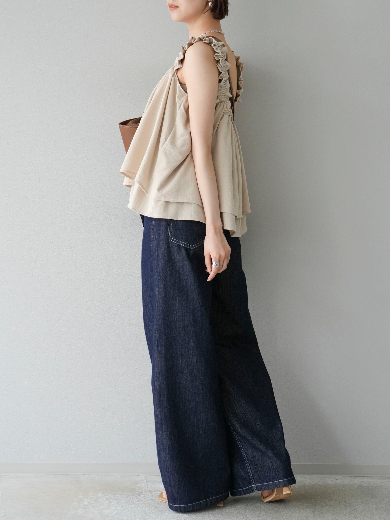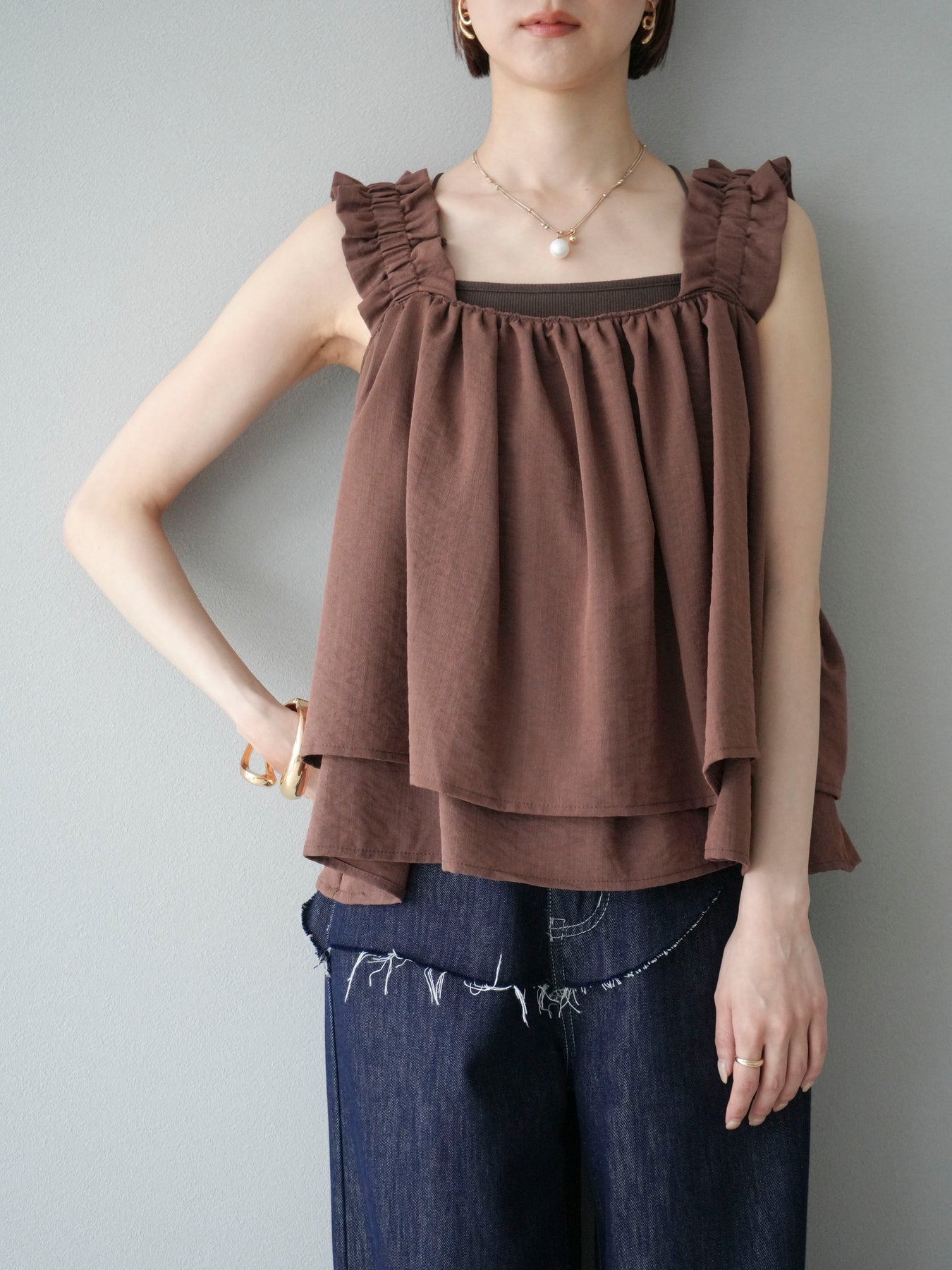◆ 【預購】肩部皺褶喇叭背心