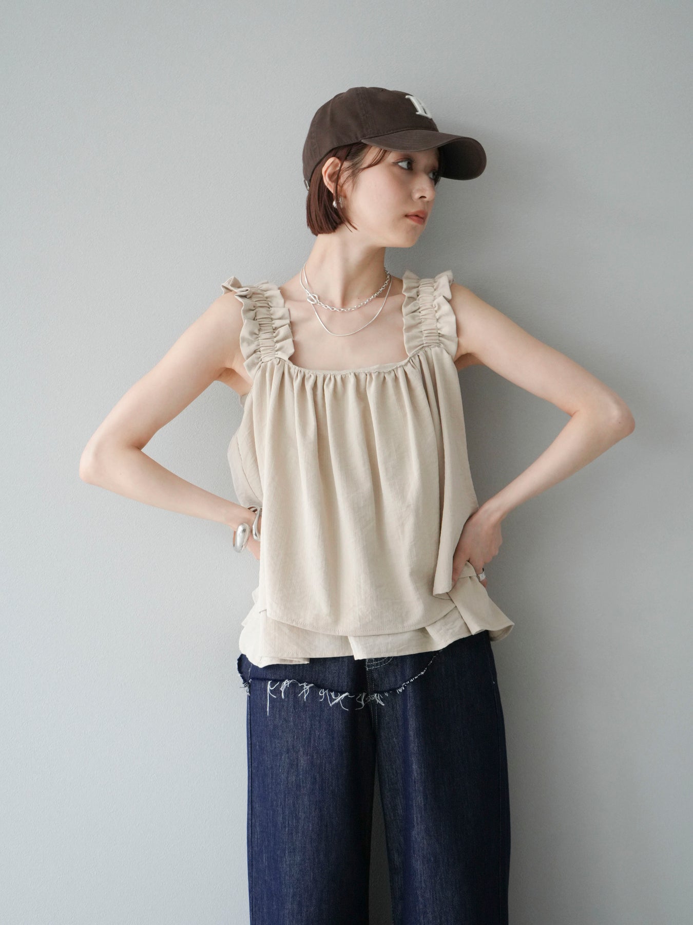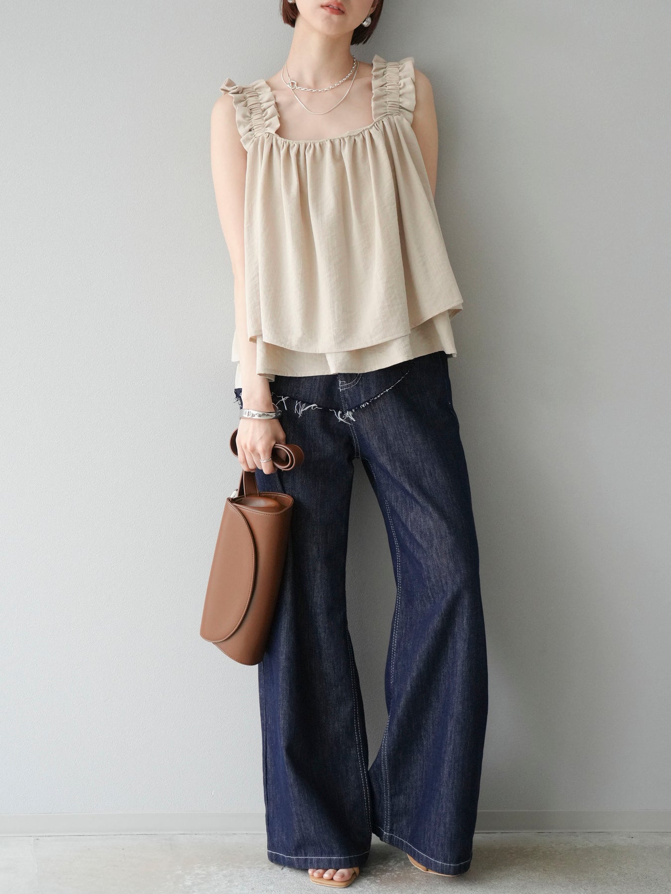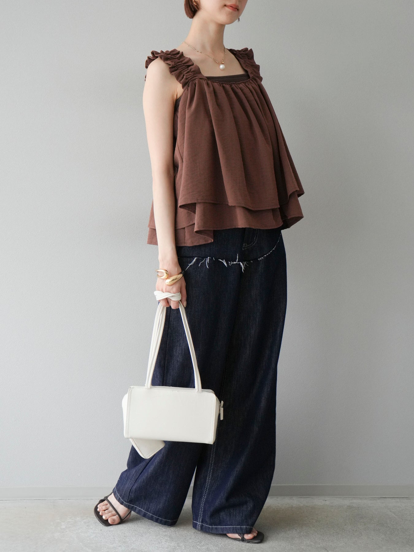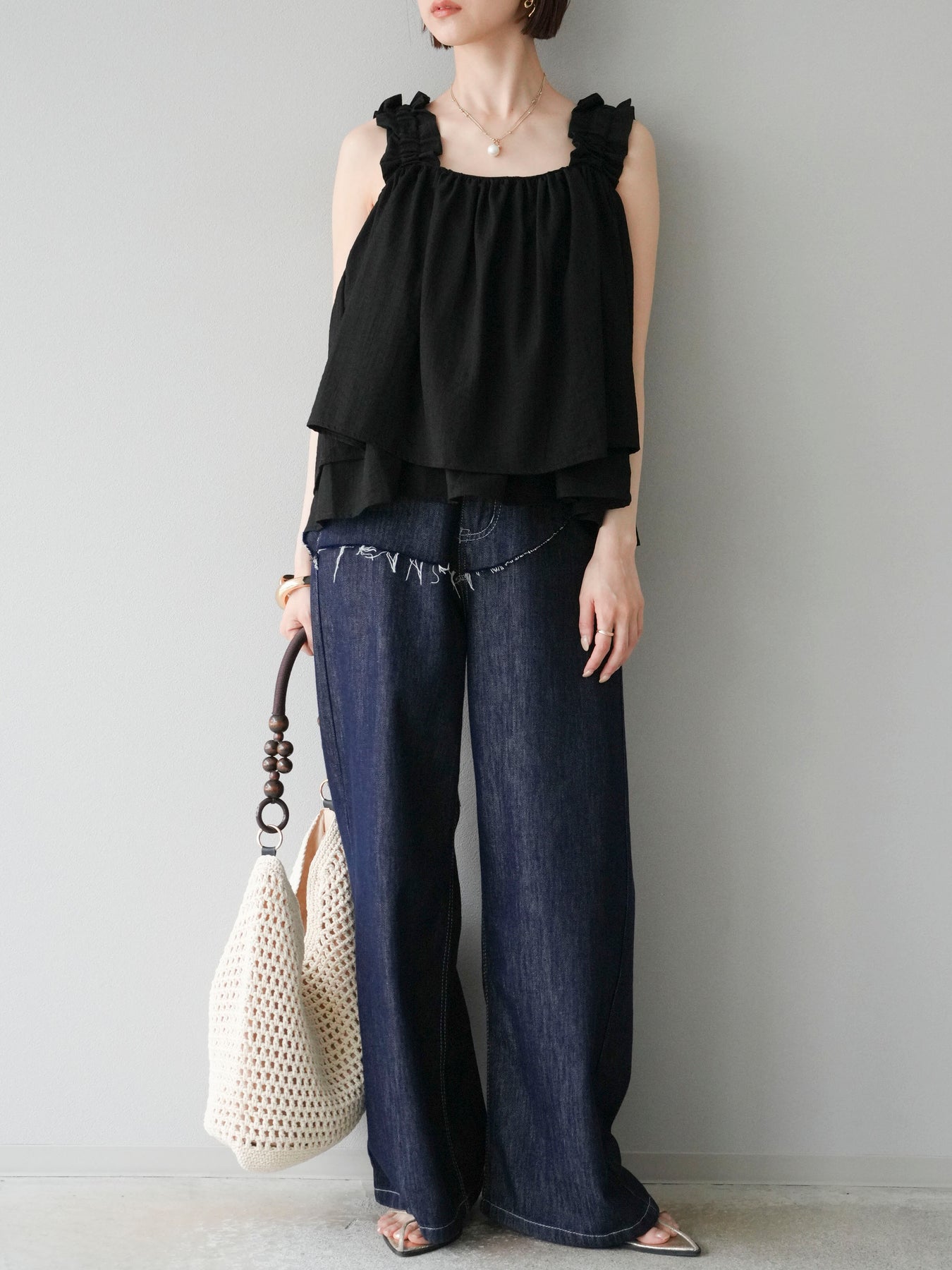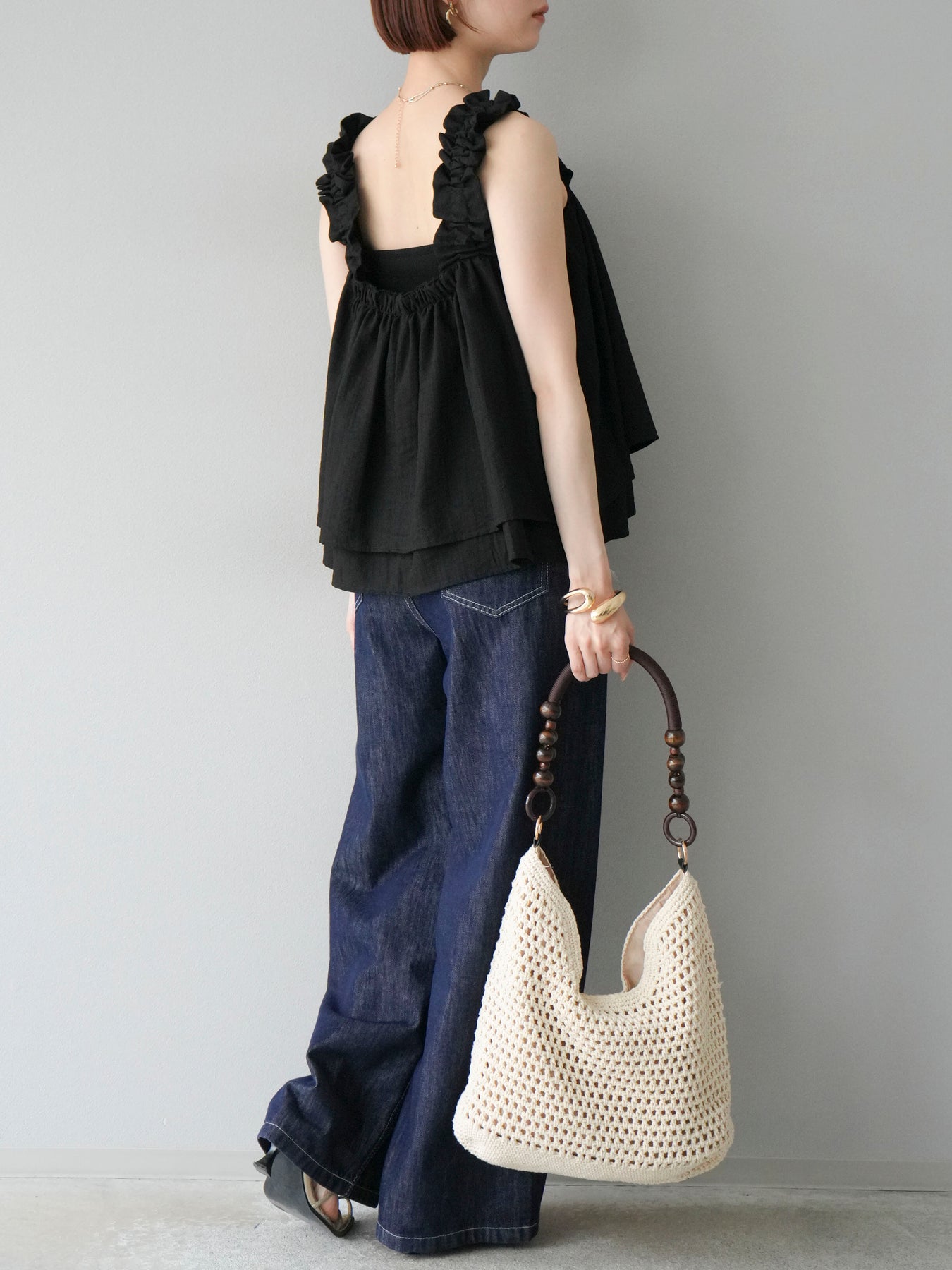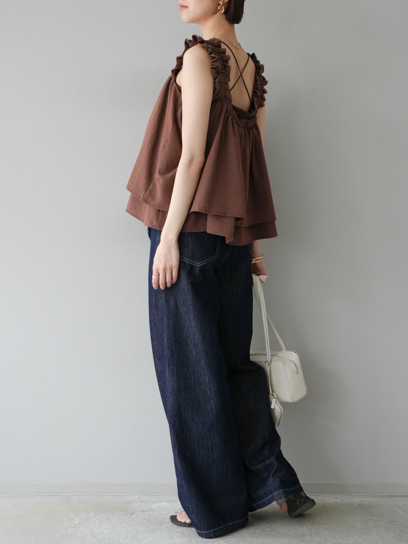 ◆ 【預購】肩部皺褶喇叭背心