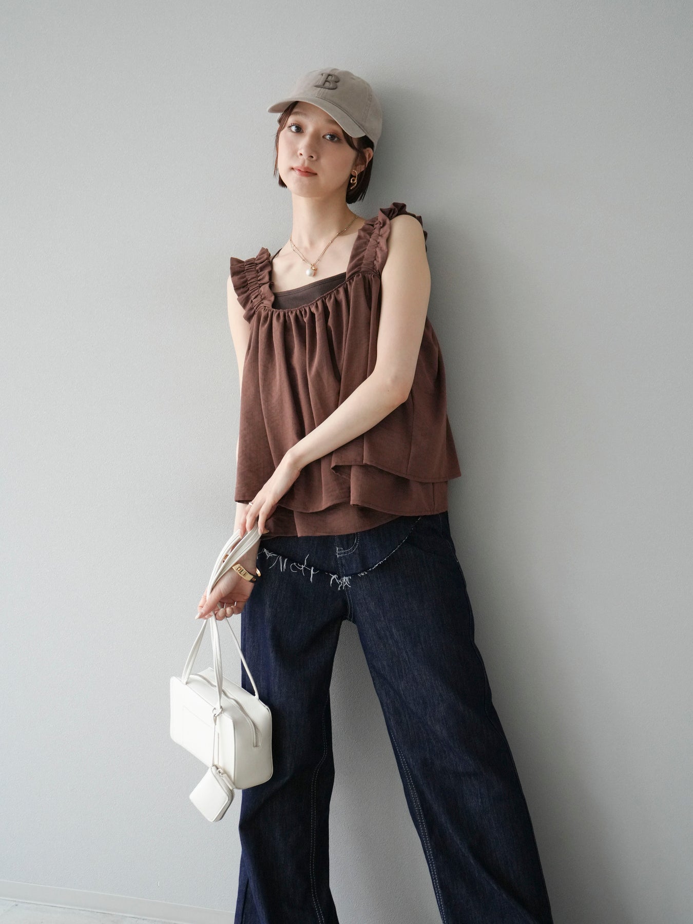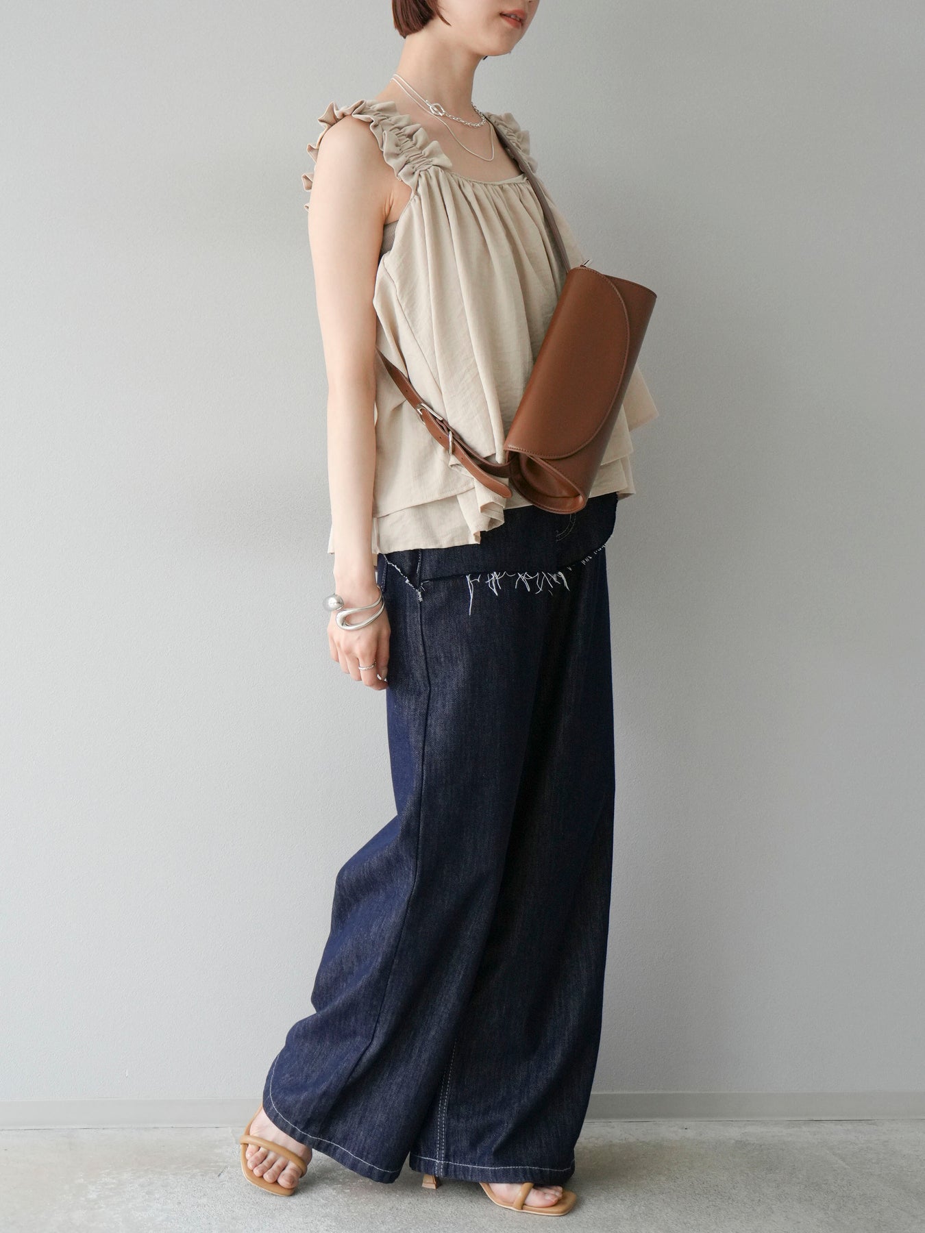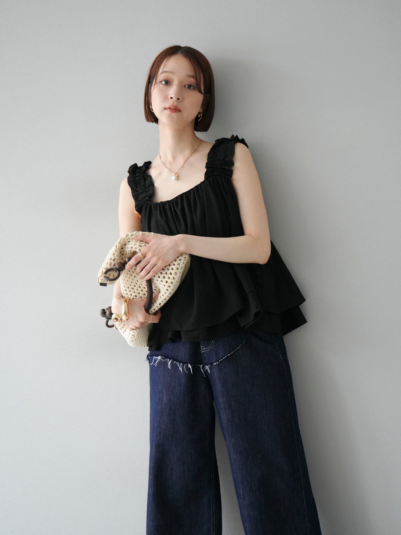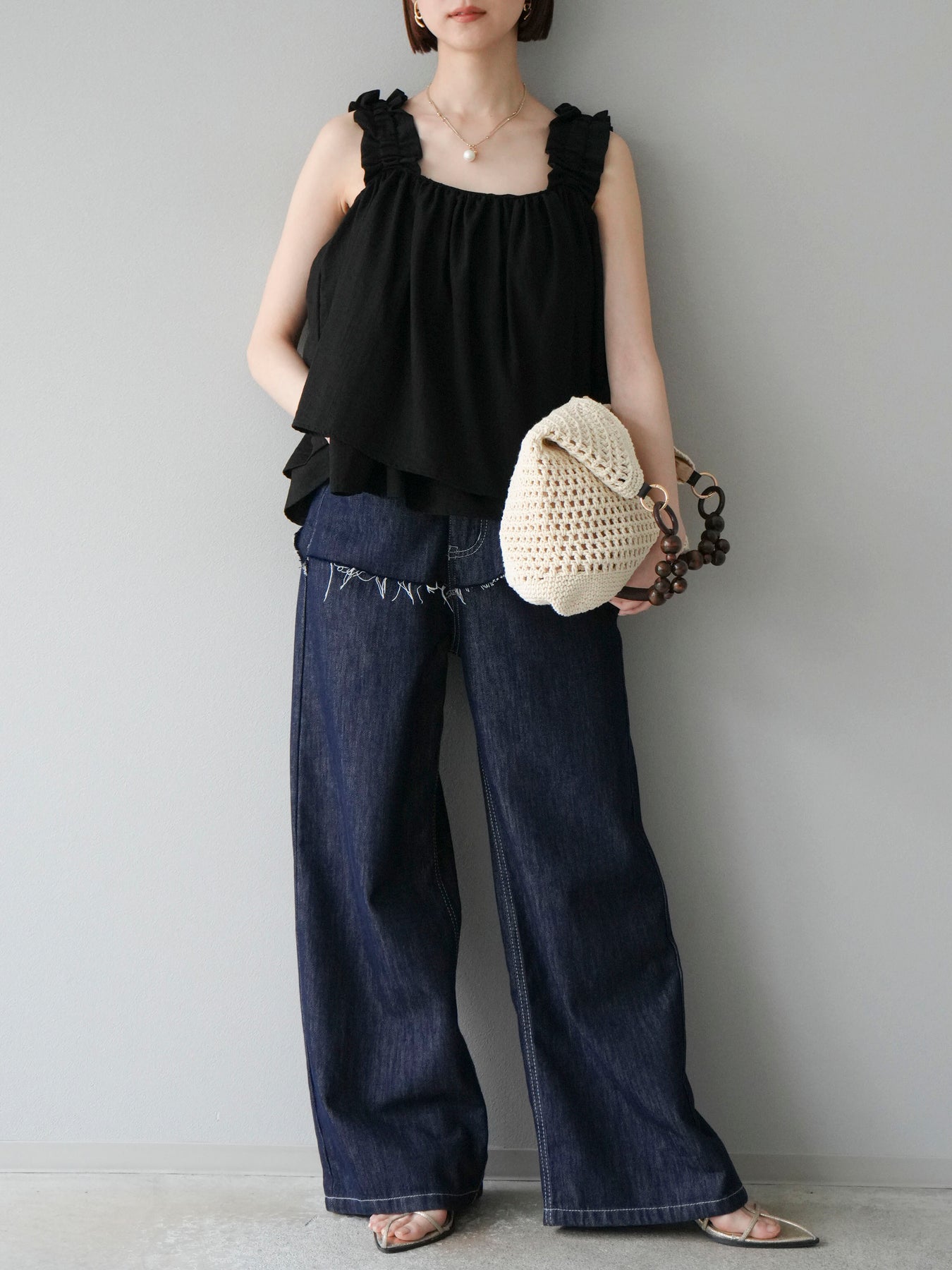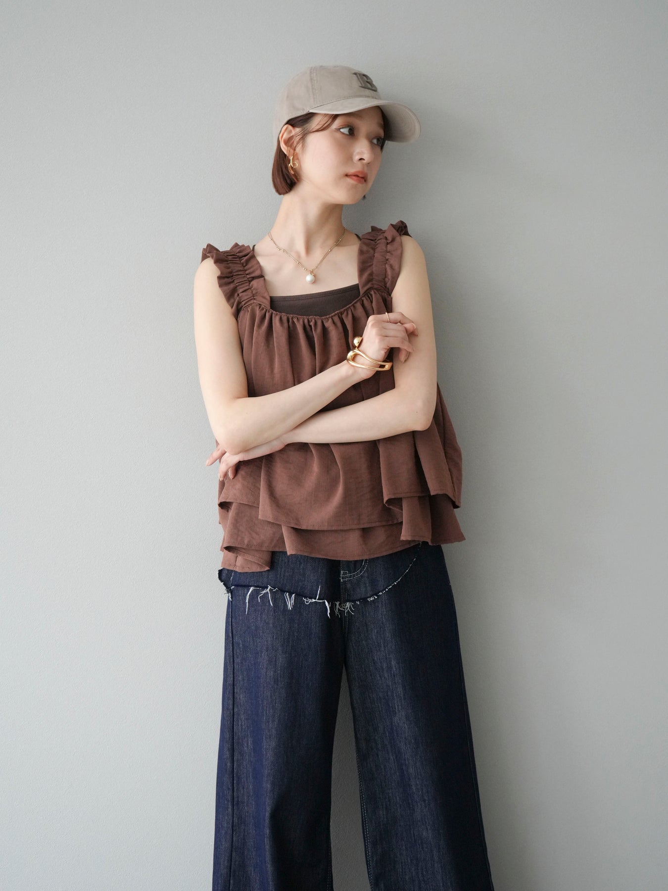 ◆ 【預購】肩部皺褶喇叭背心