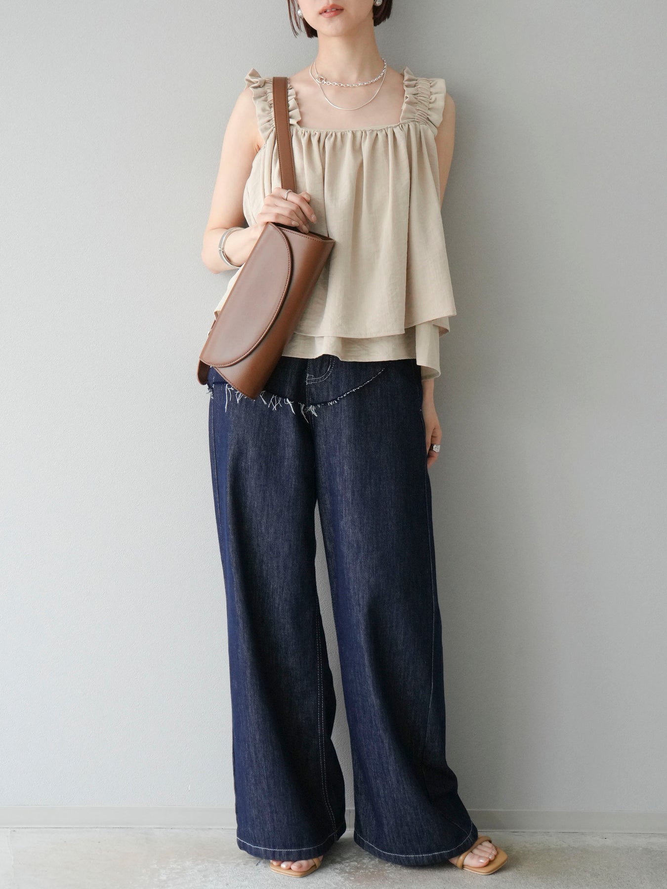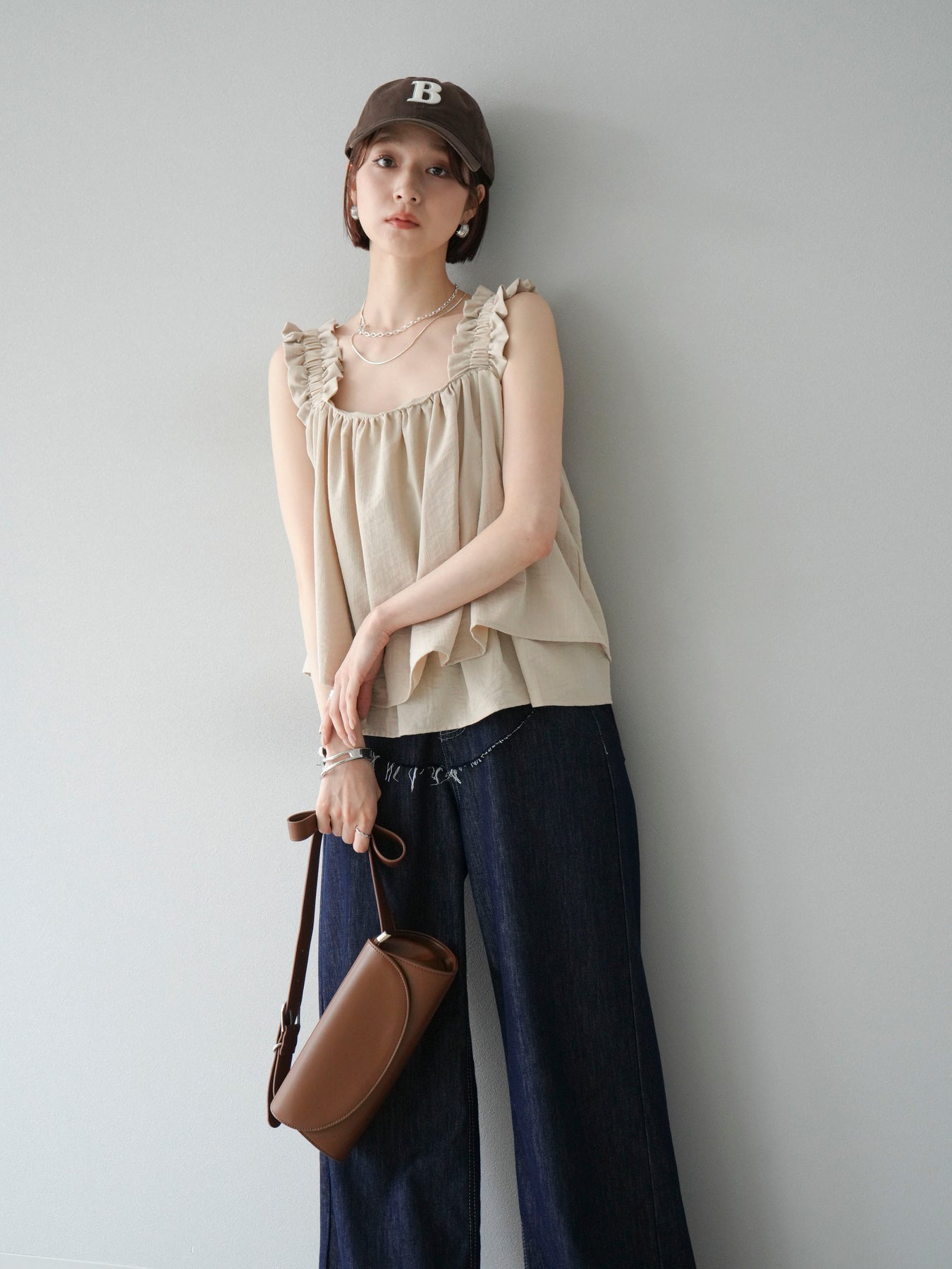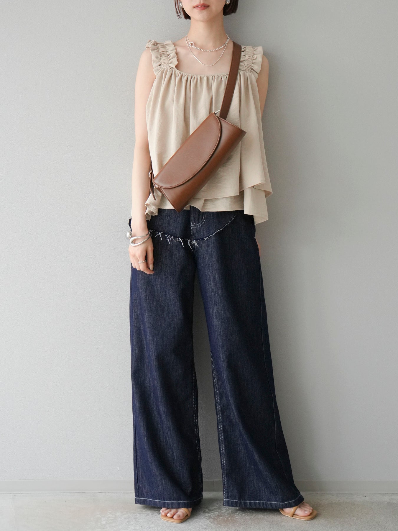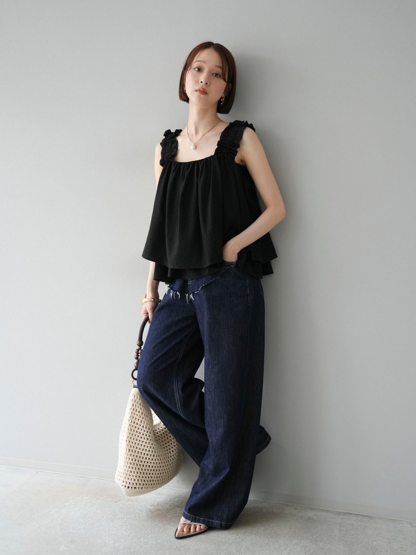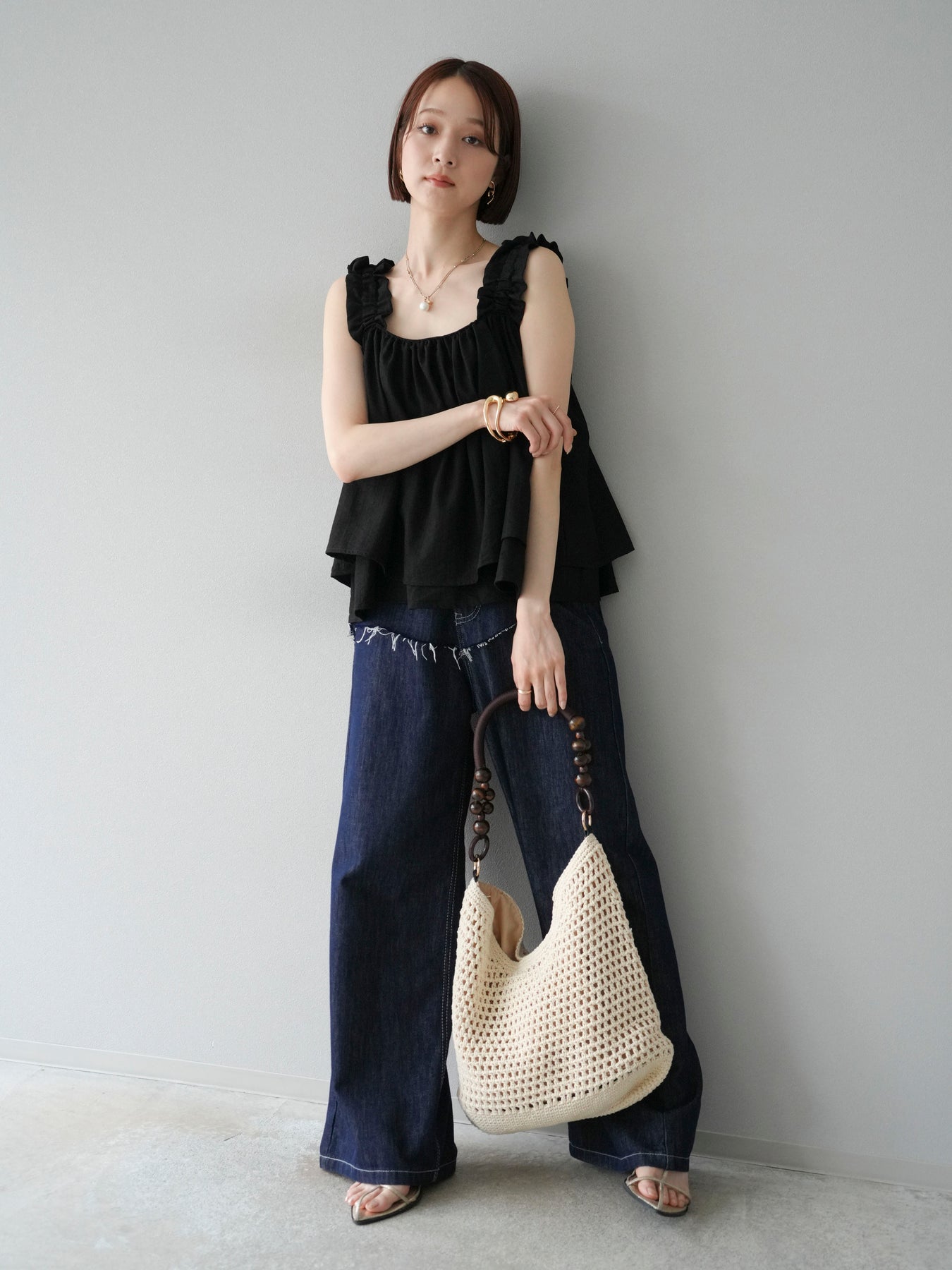 ◆ 【預購】肩部皺褶喇叭背心