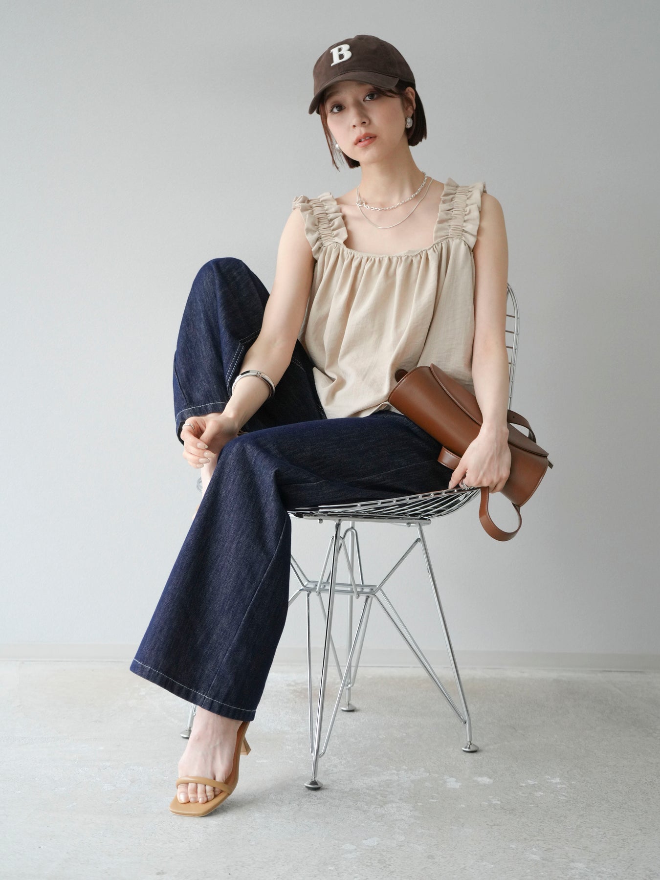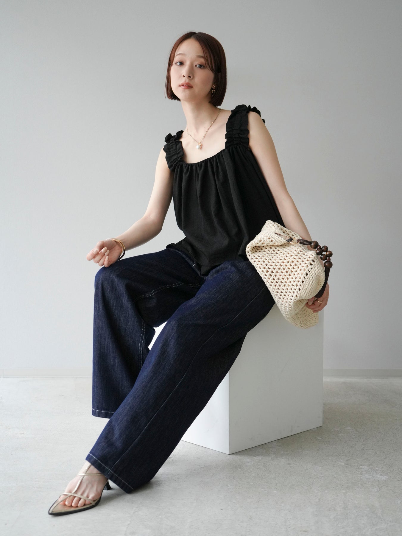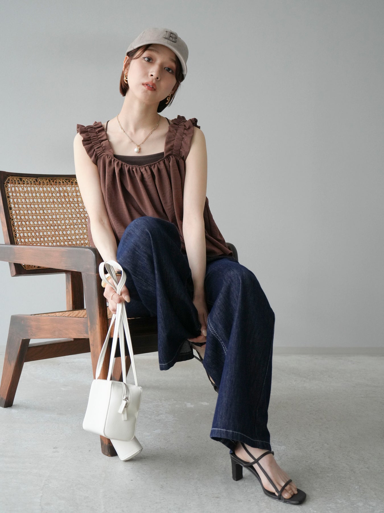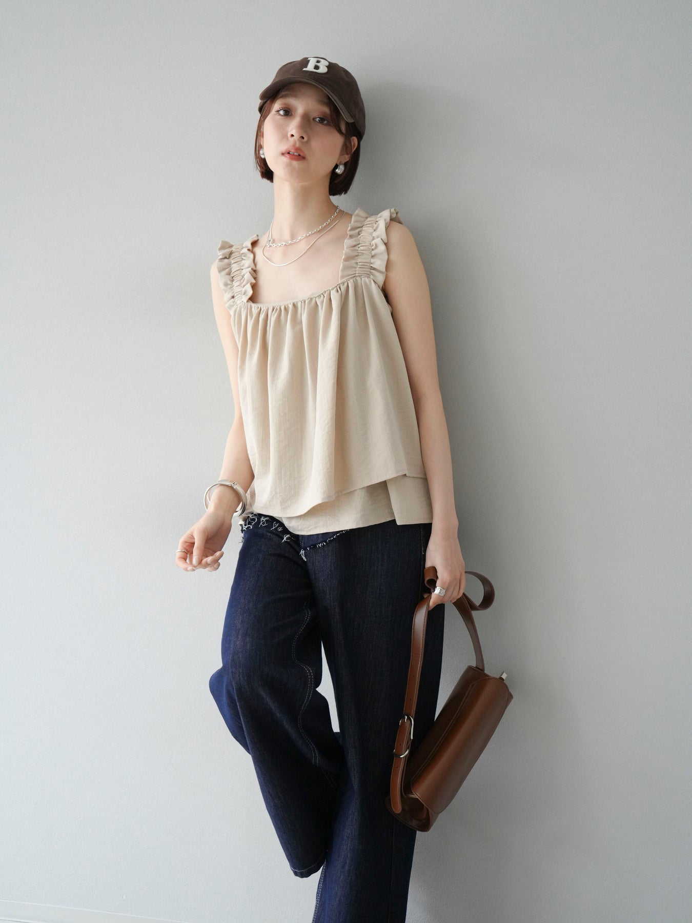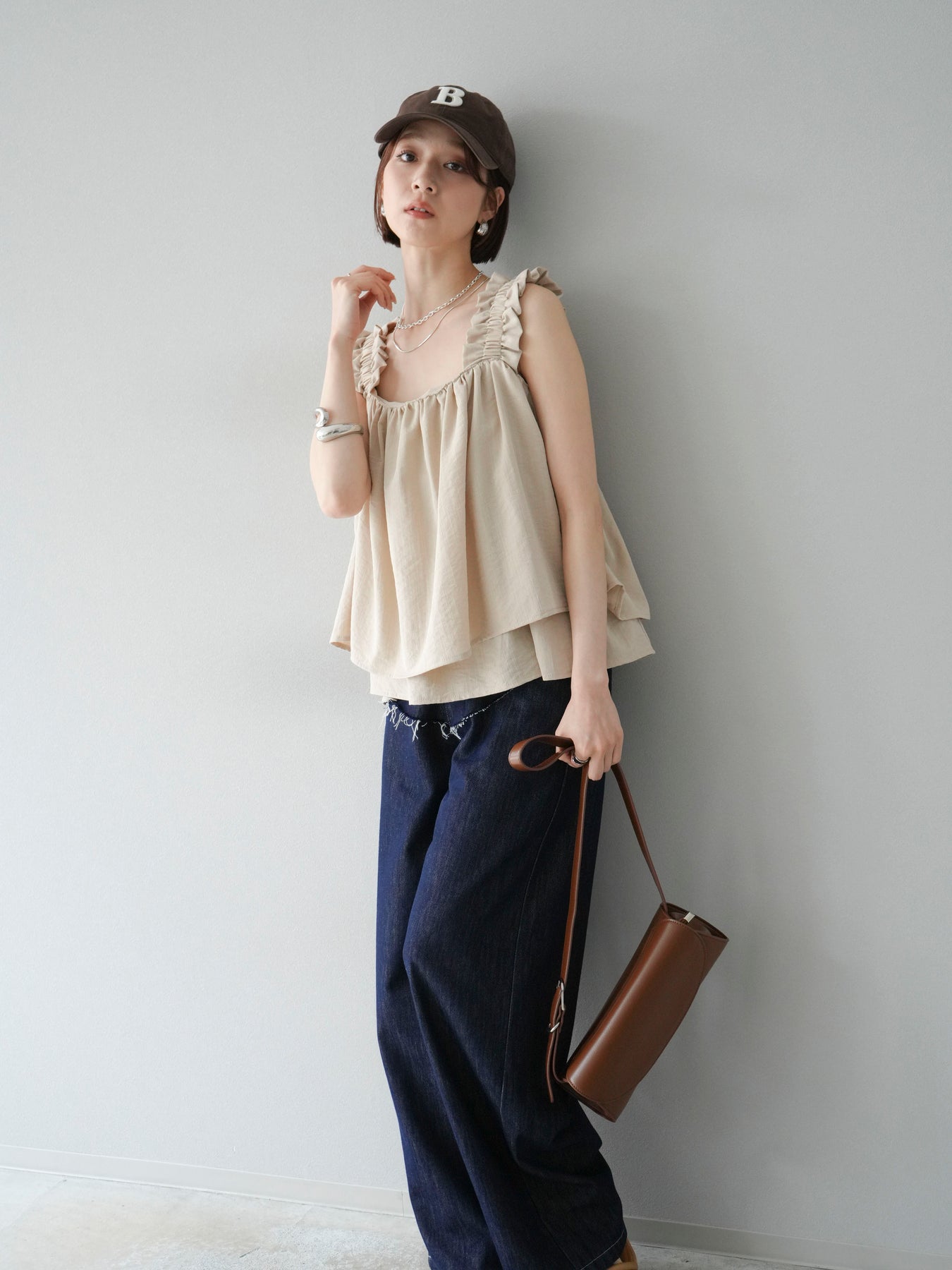 ◆ 【預購】肩部皺褶喇叭背心