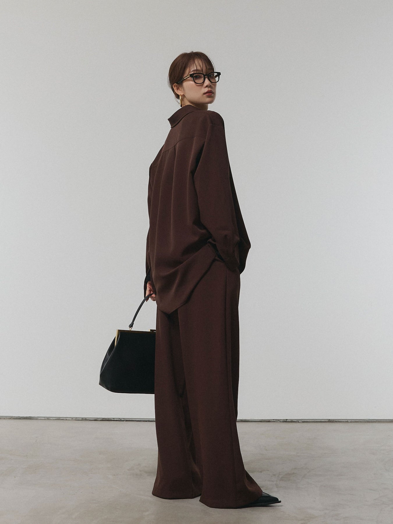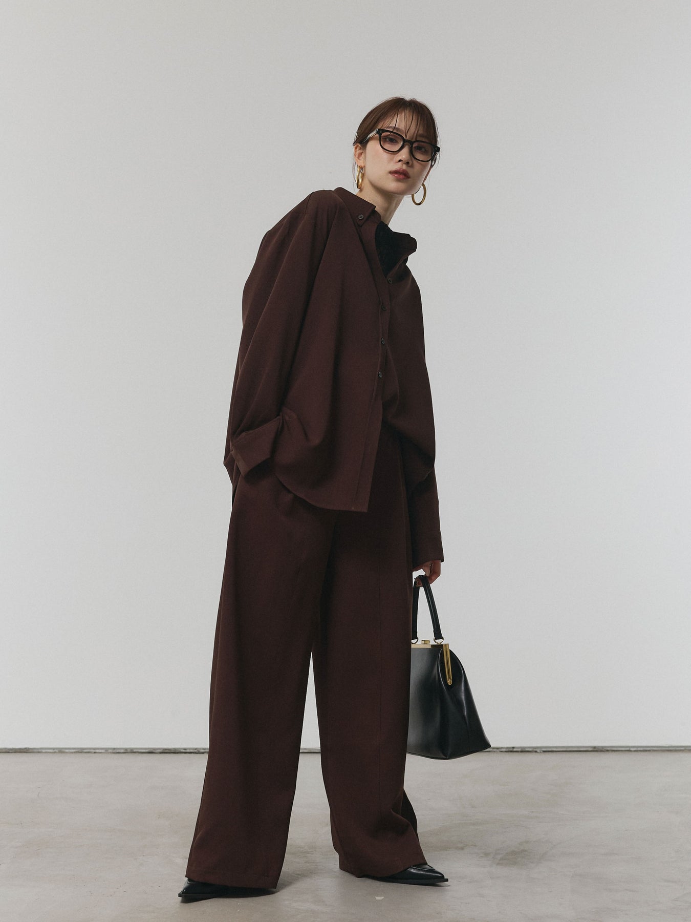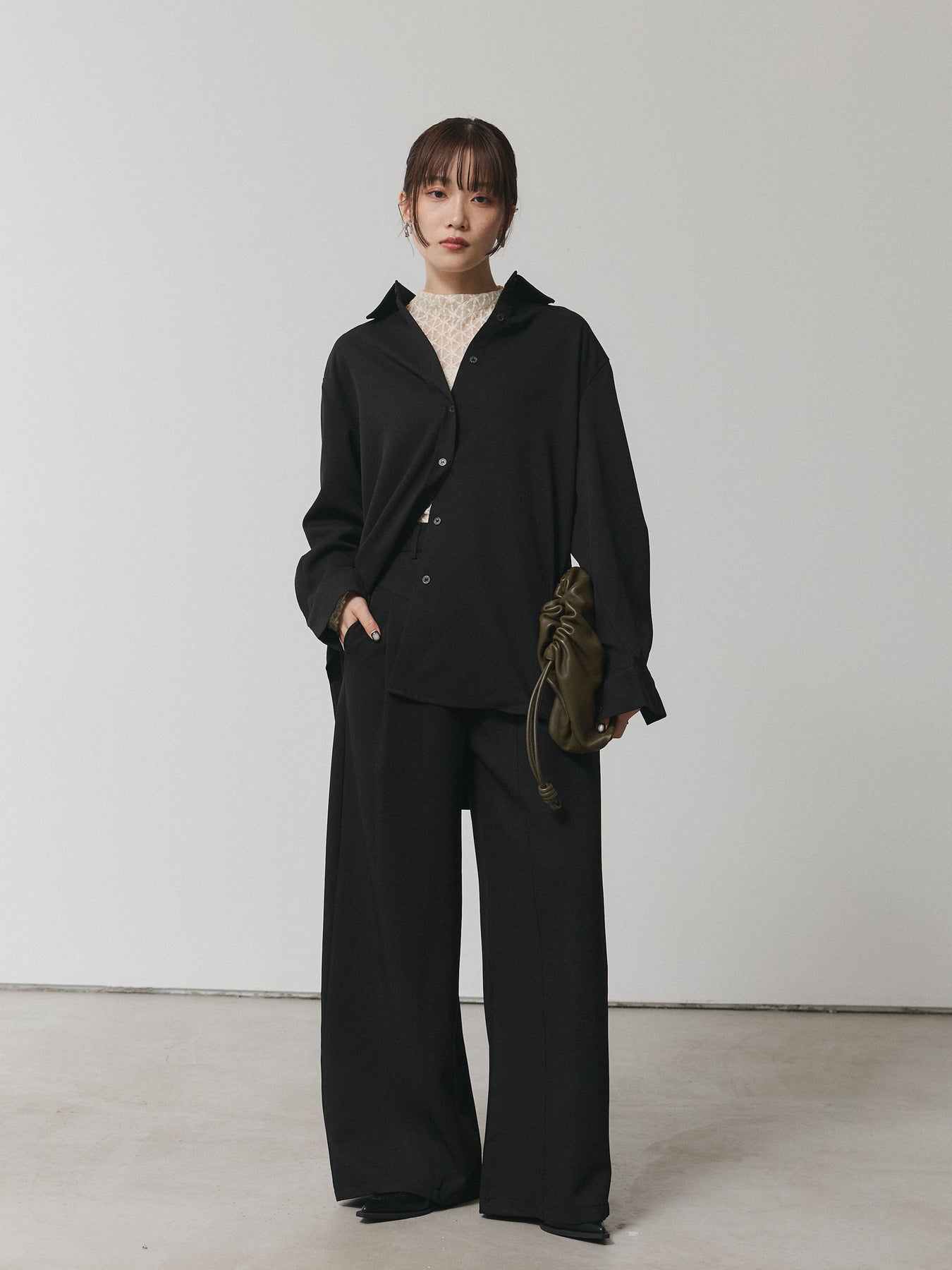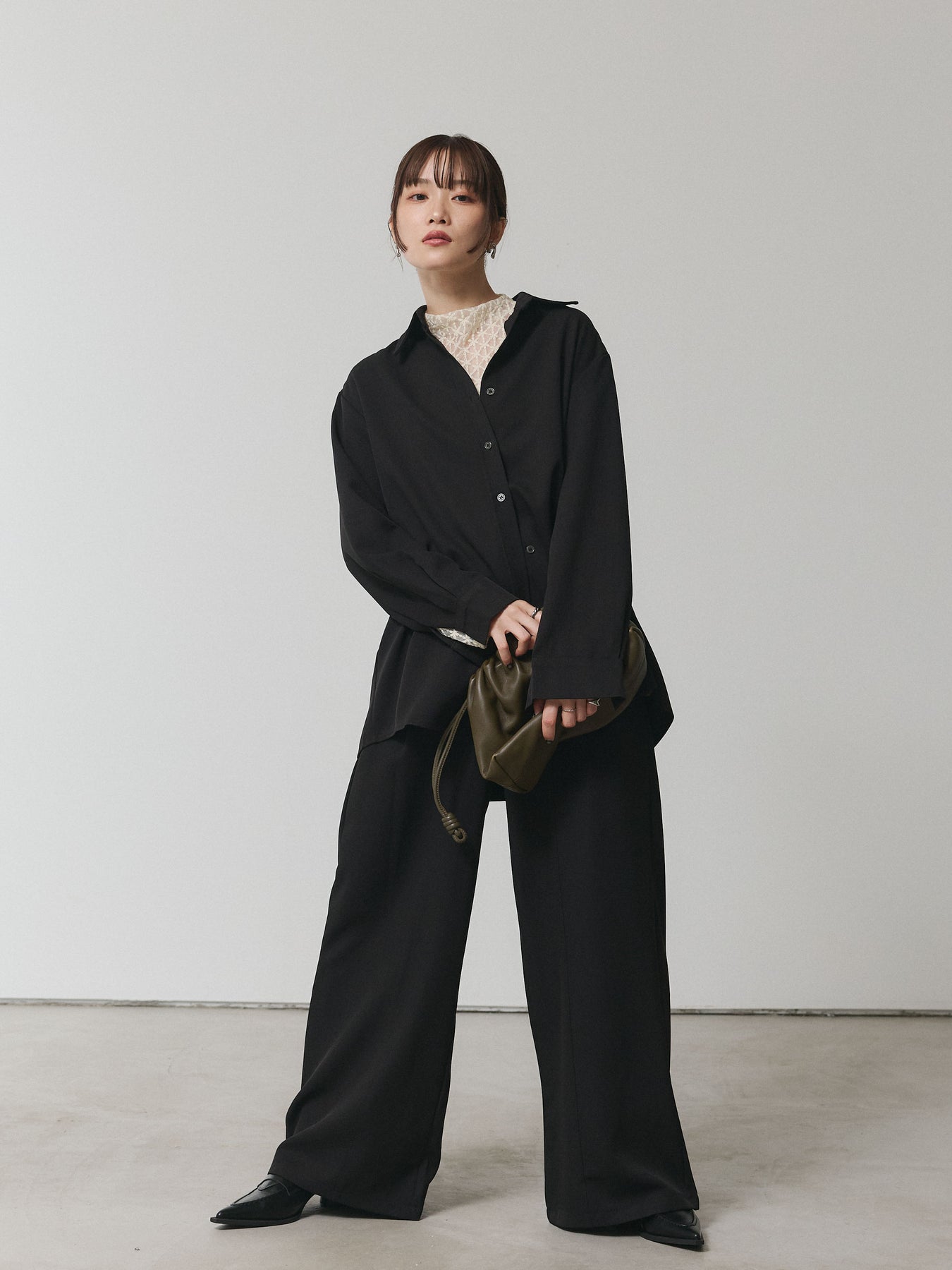 【Allure】[SET]ボタンダウンオーバーシャツ+デザインタックセンターシームアイドパンツ+フラワーレーストップス(3set)