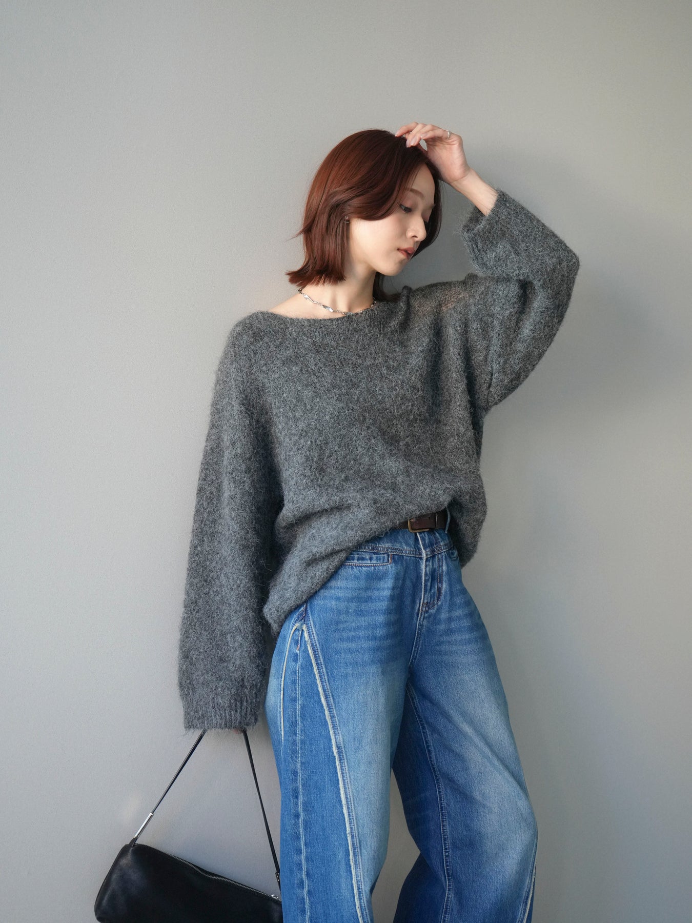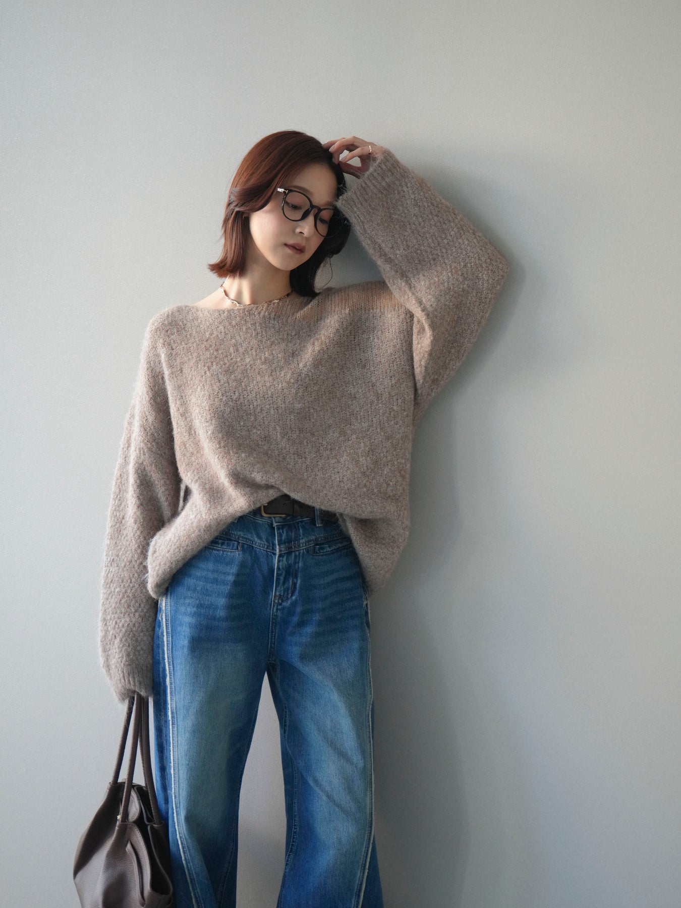 ふんわりとした柔らかなニットに透かし編みデザインをさりげなく組み合わせた、表情豊かなプルオーバー。ほんのりと見える編地の切り替えが抜け感を演出し、シンプルな中にも奥行きのある印象に仕上げています。ゆったりとしたシルエットがリラクシーな着心地を叶えつつ、女性らしいニュアンスをプラス。デニムにもスカートにも合わせやすく、デイリーに着回しやすい万能な一枚です。 ※ボトムス、キャミソール(インナー)以外の商品は一律でインナーは付属していません。