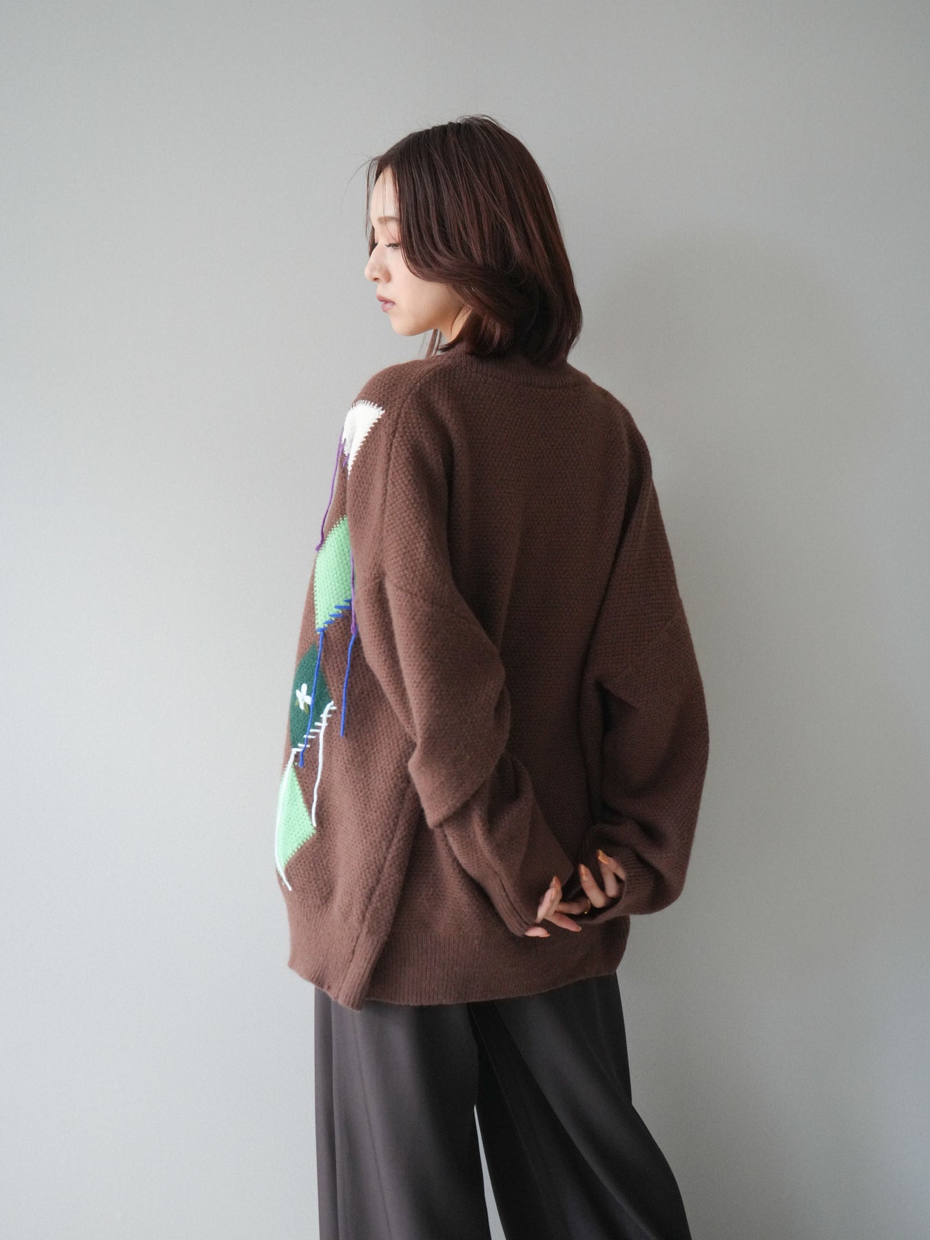 ◆ [予約]ハンドステッチアーガイルデザインニットカーディガン