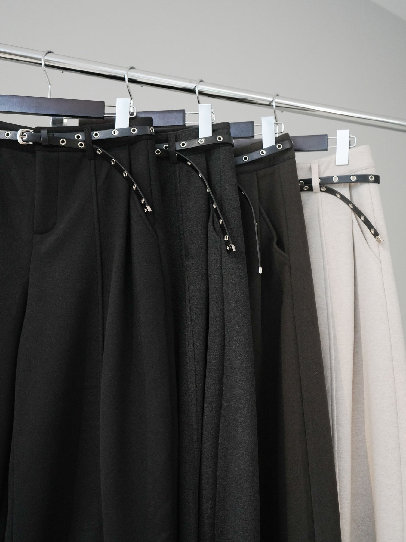 ◆ [予約]ベルト付き裏起毛ワイドパンツ