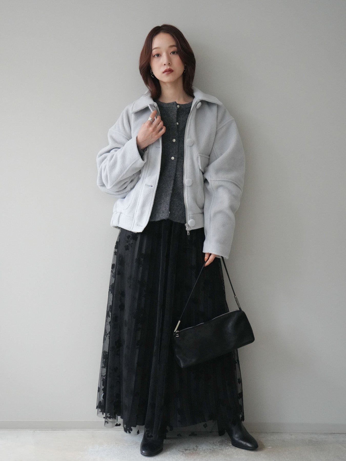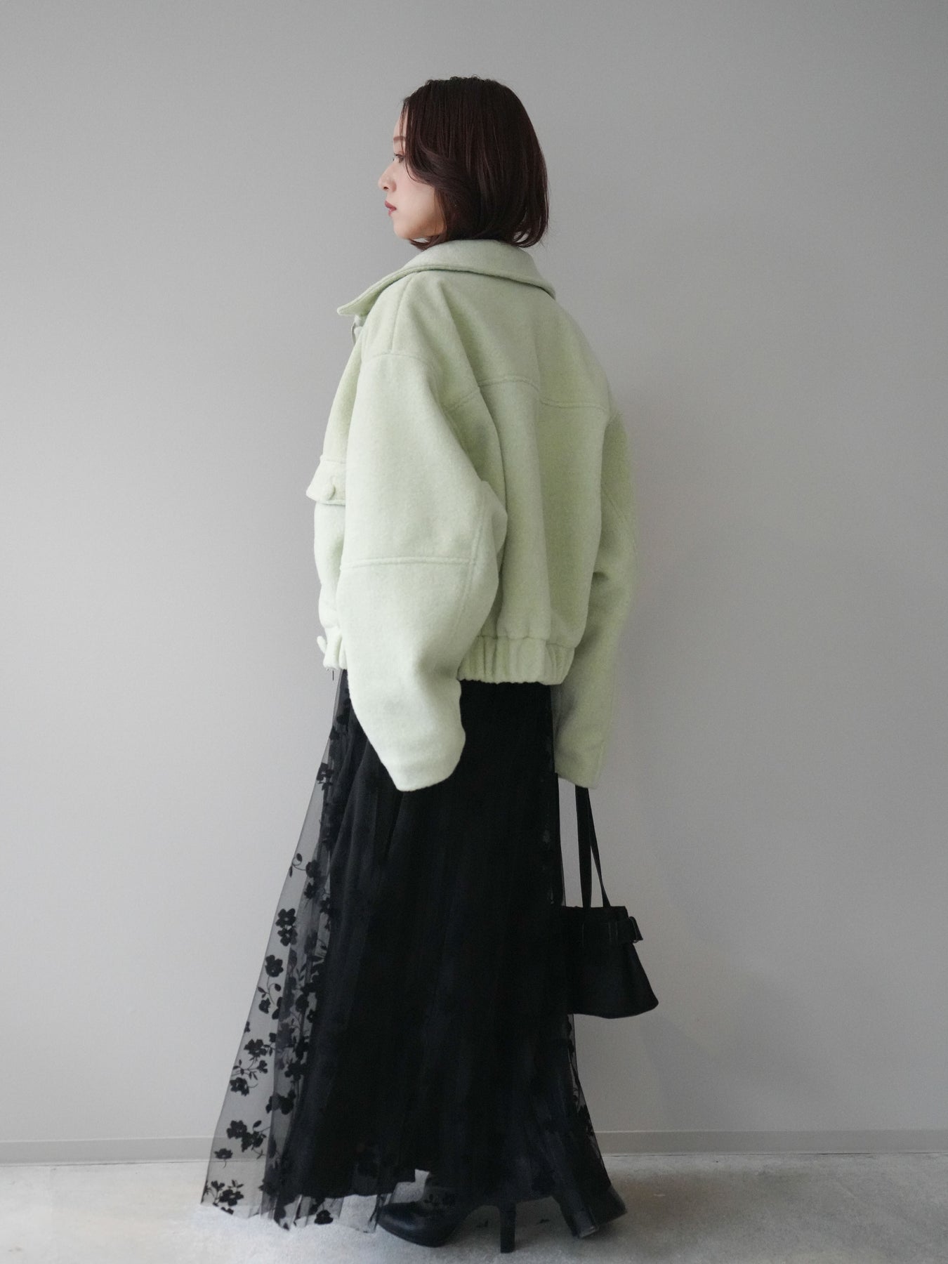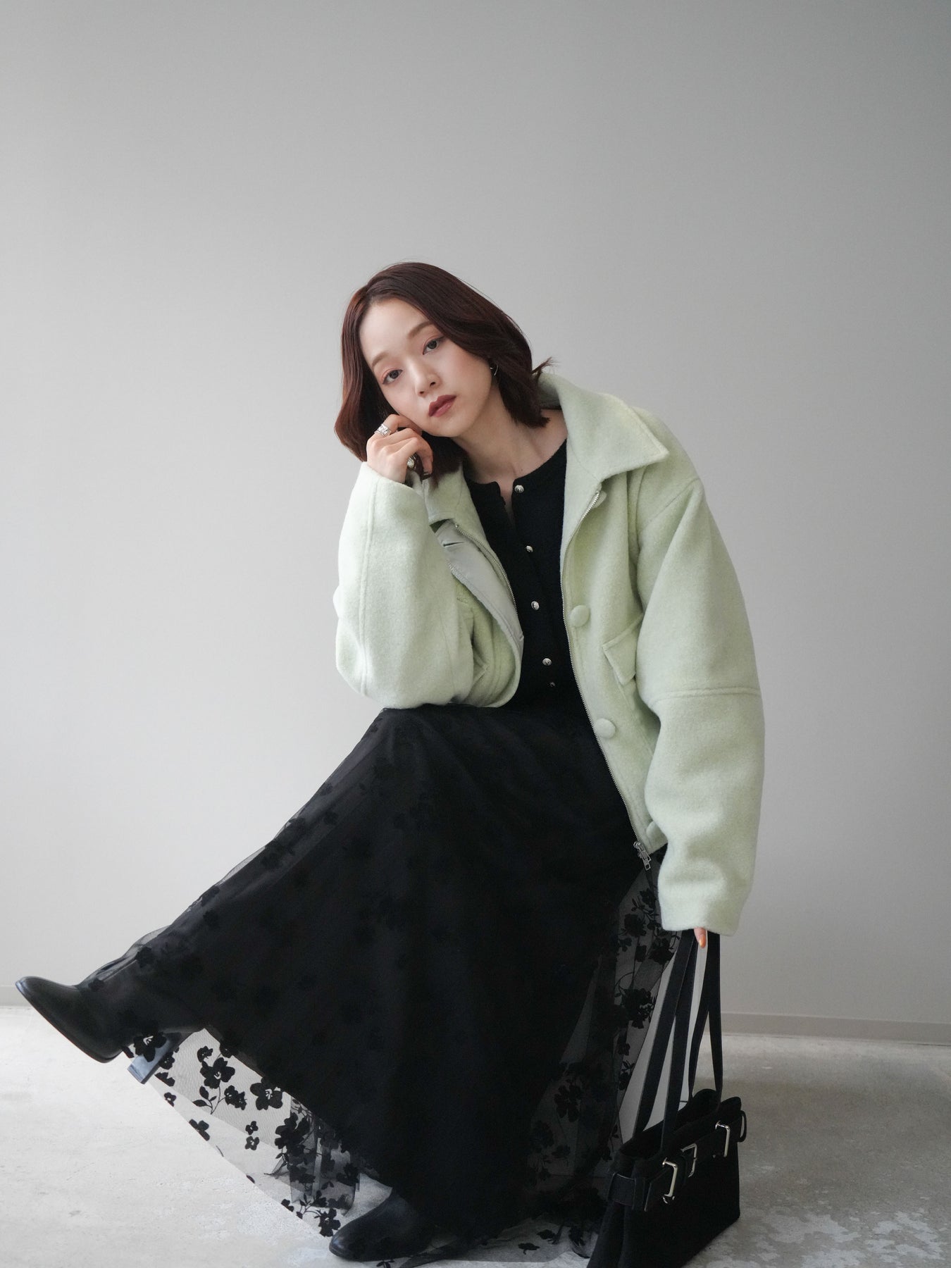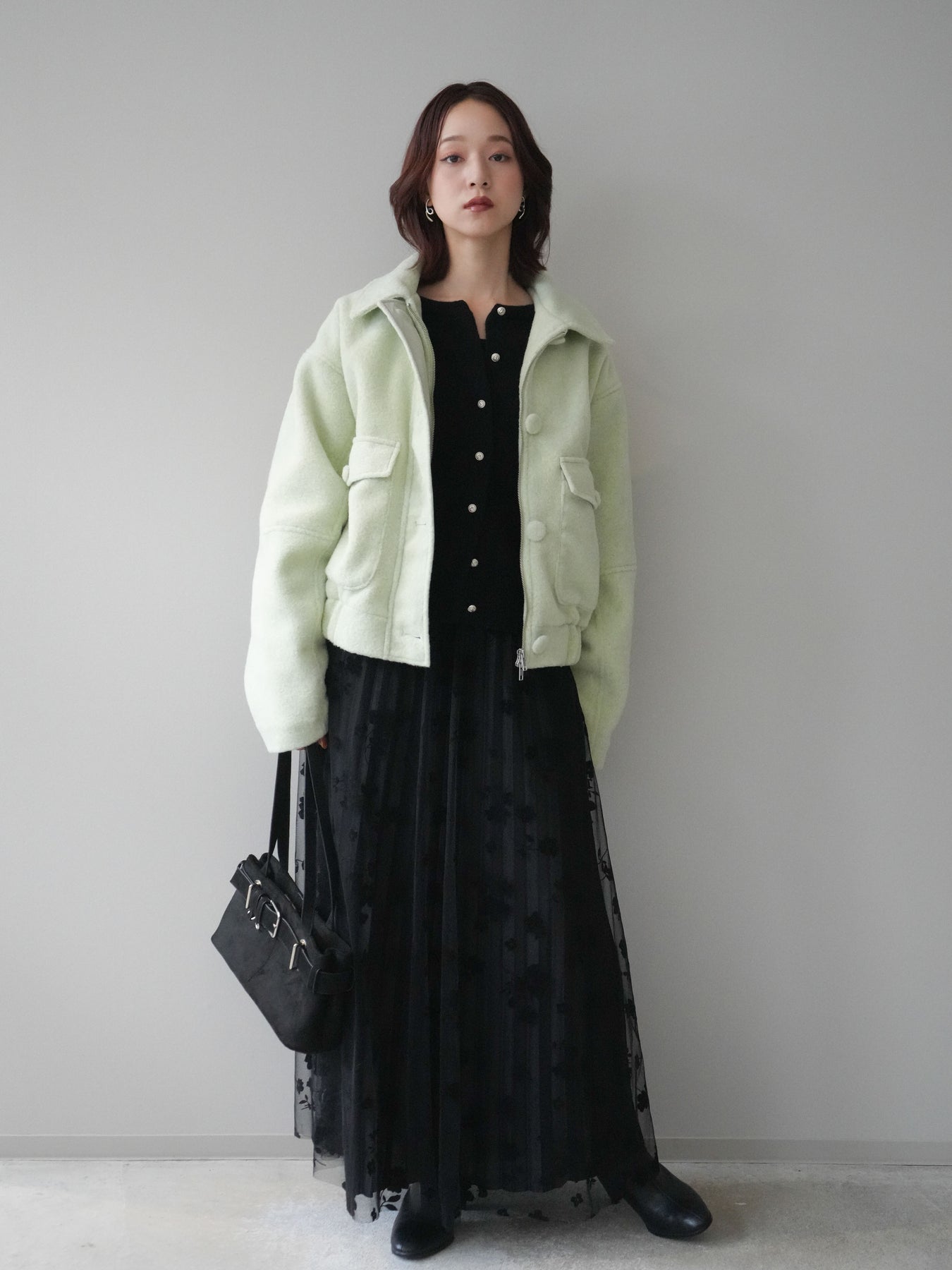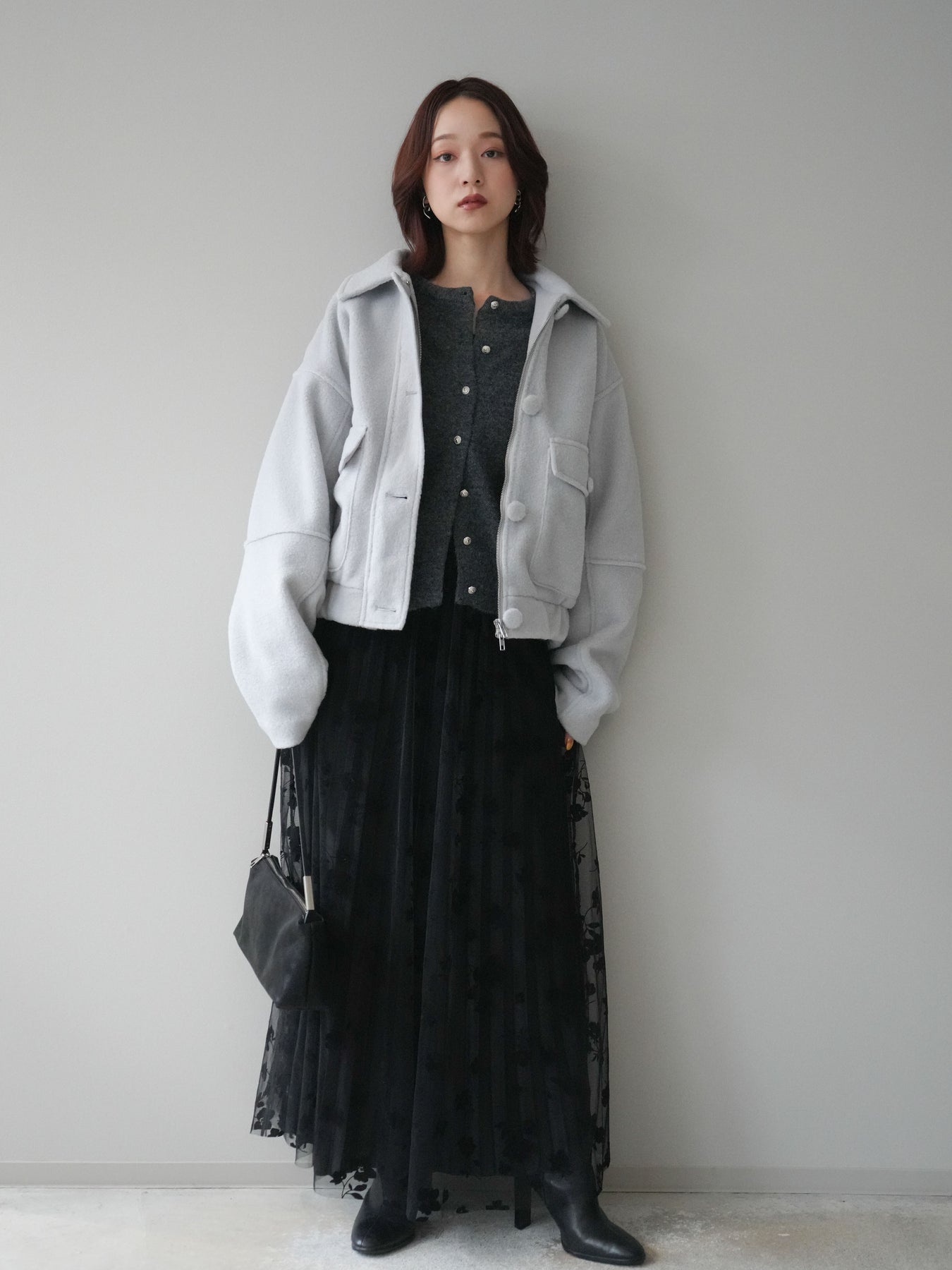 [SET]ウールライクフライトジャケット+フラワーフロッキーチュールプリーツスカート(2set)