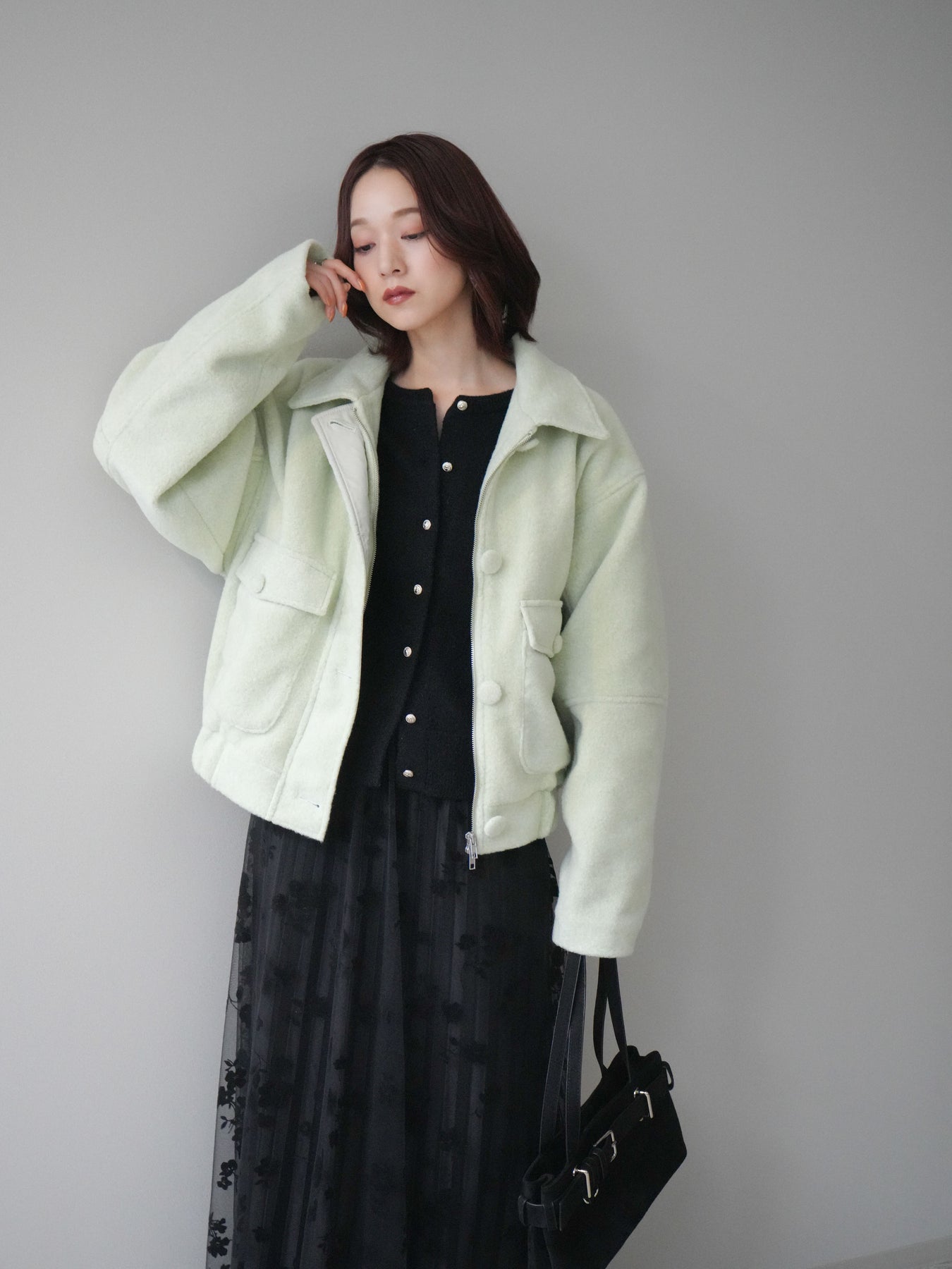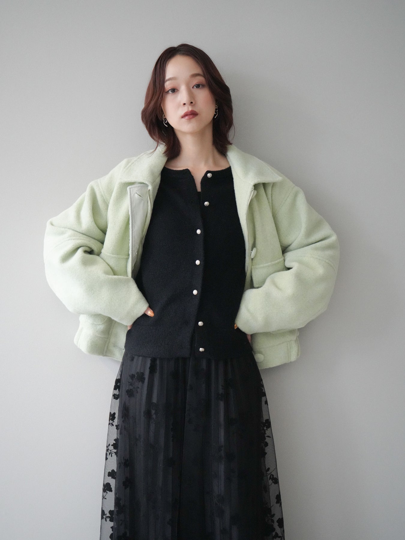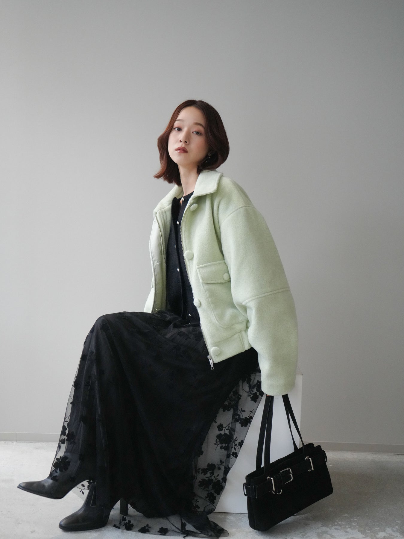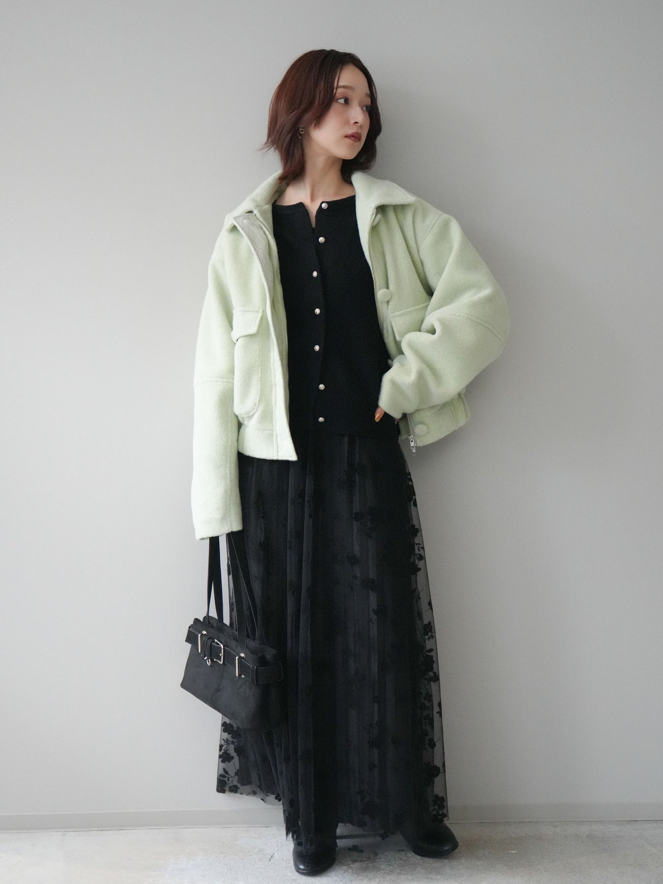 [SET]ウールライクフライトジャケット+フラワーフロッキーチュールプリーツスカート(2set)