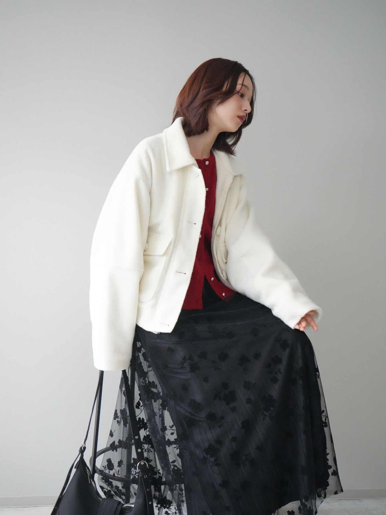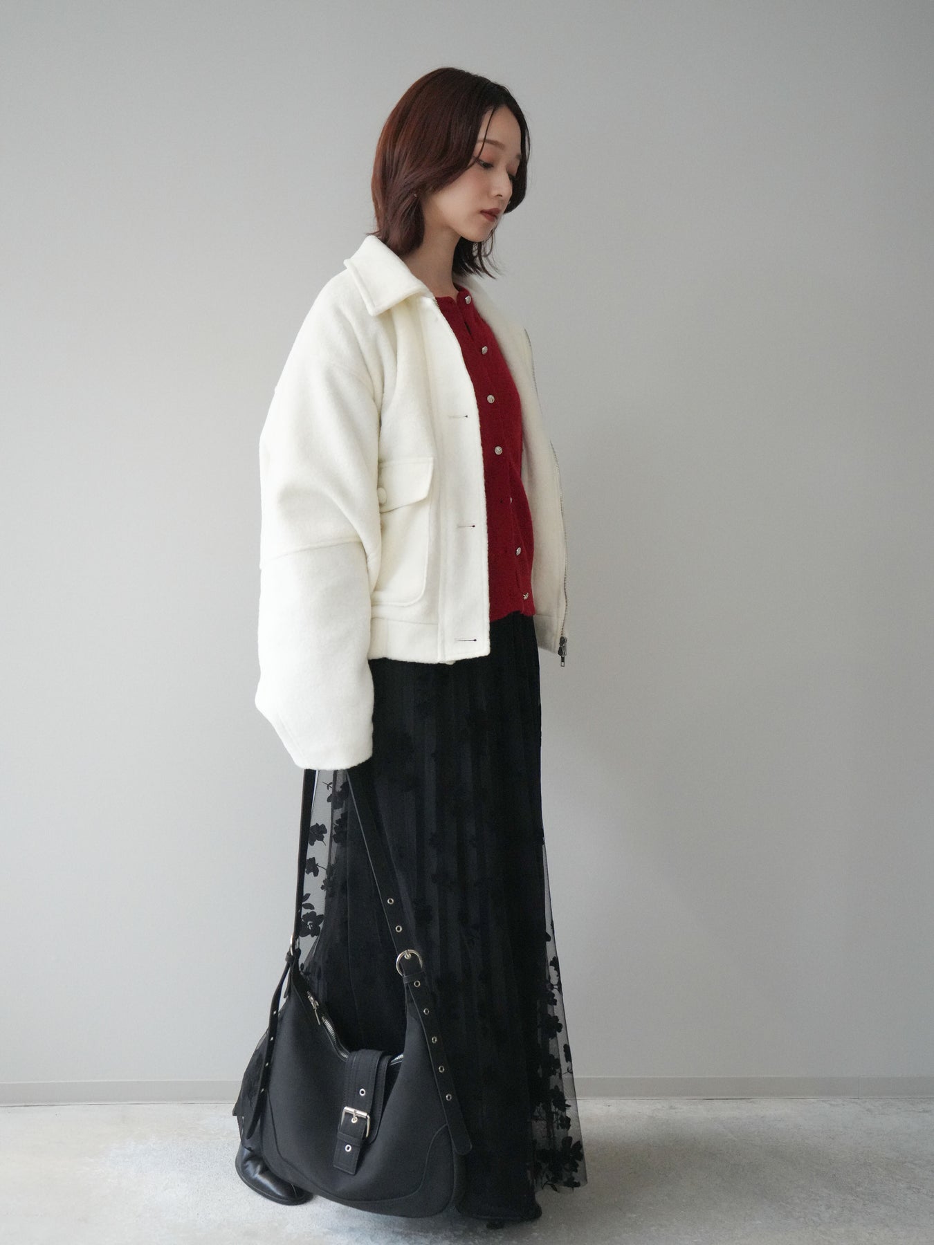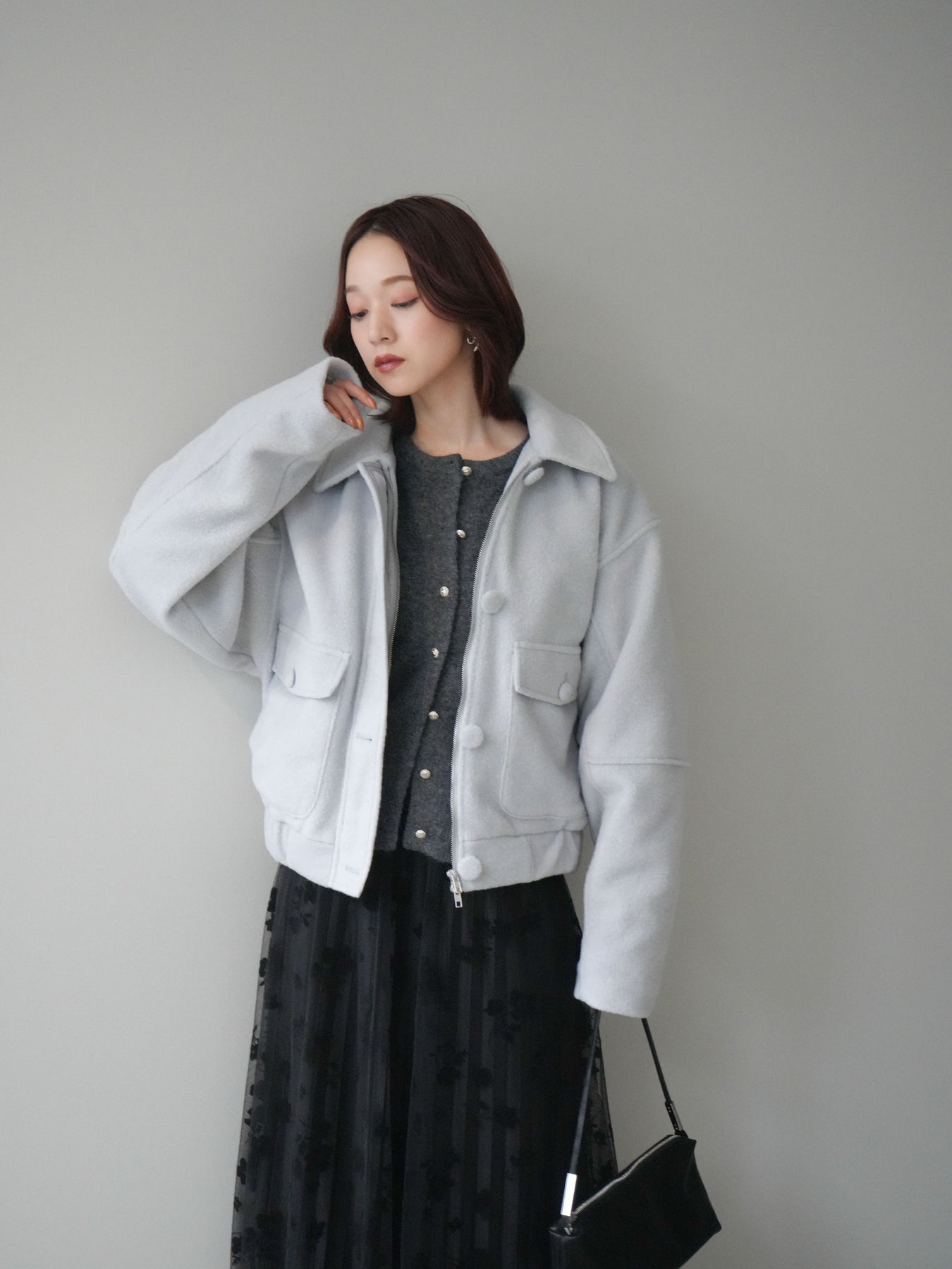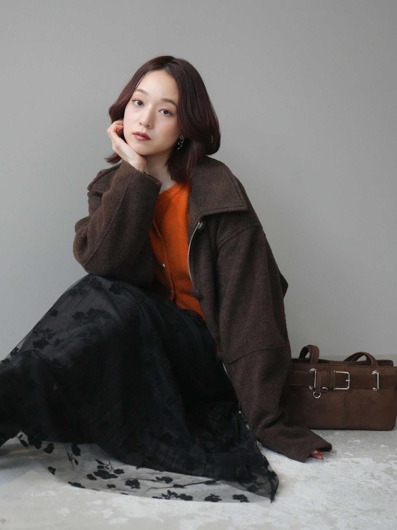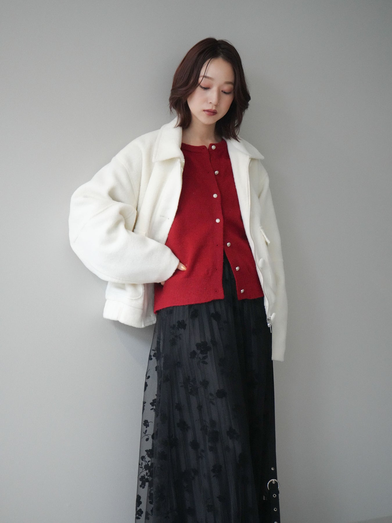 [SET]ウールライクフライトジャケット+フラワーフロッキーチュールプリーツスカート(2set)