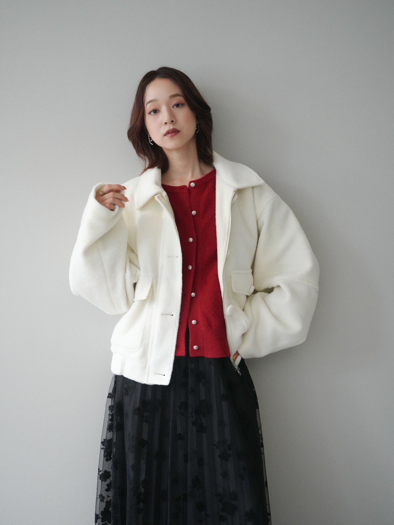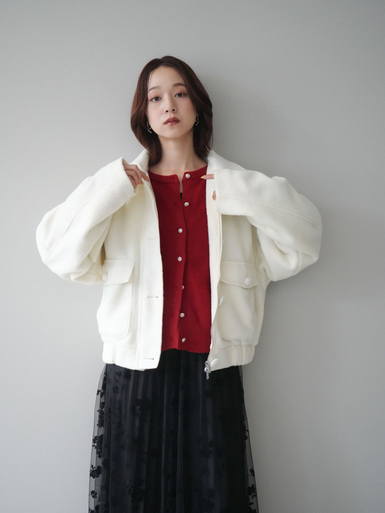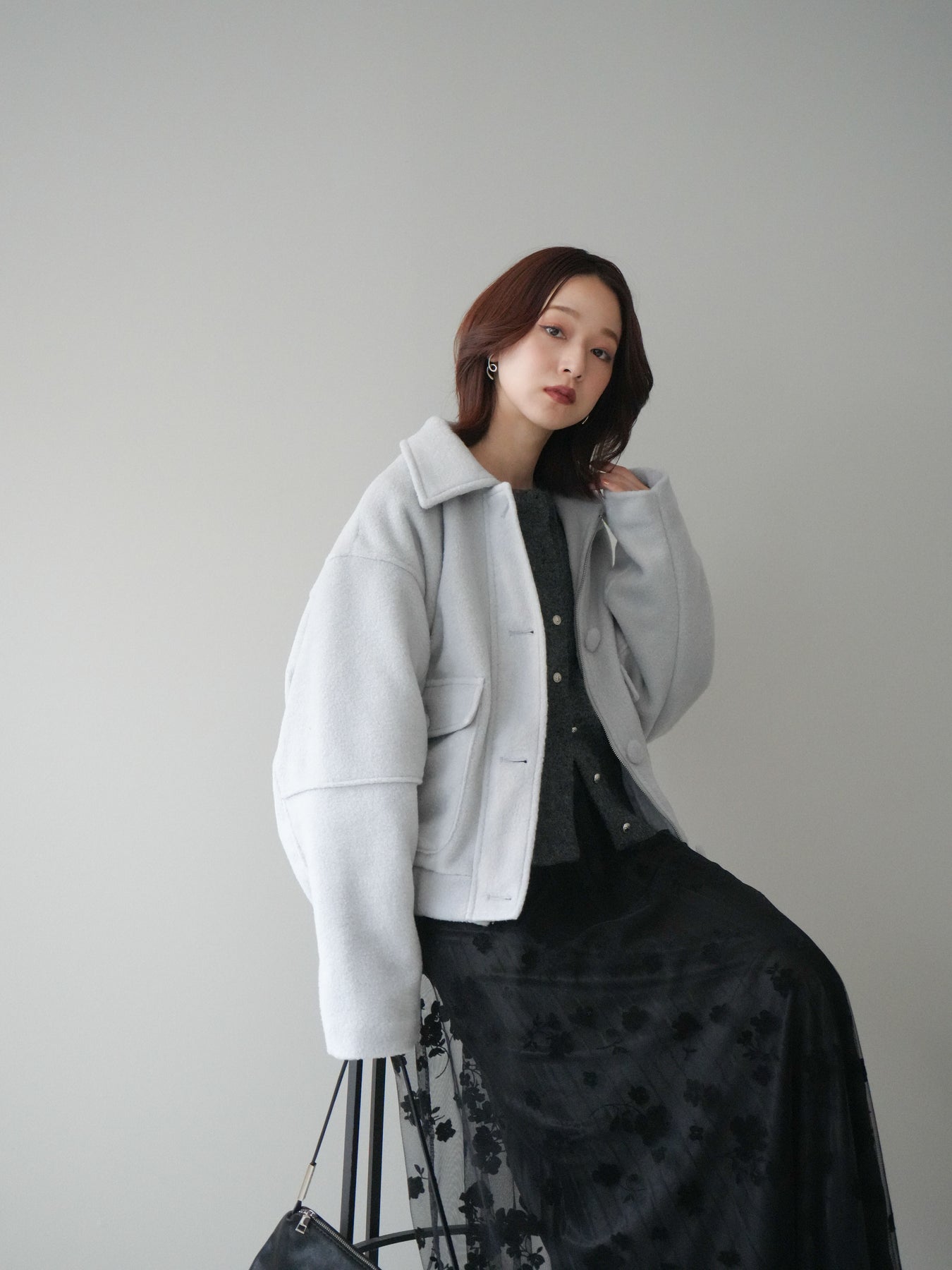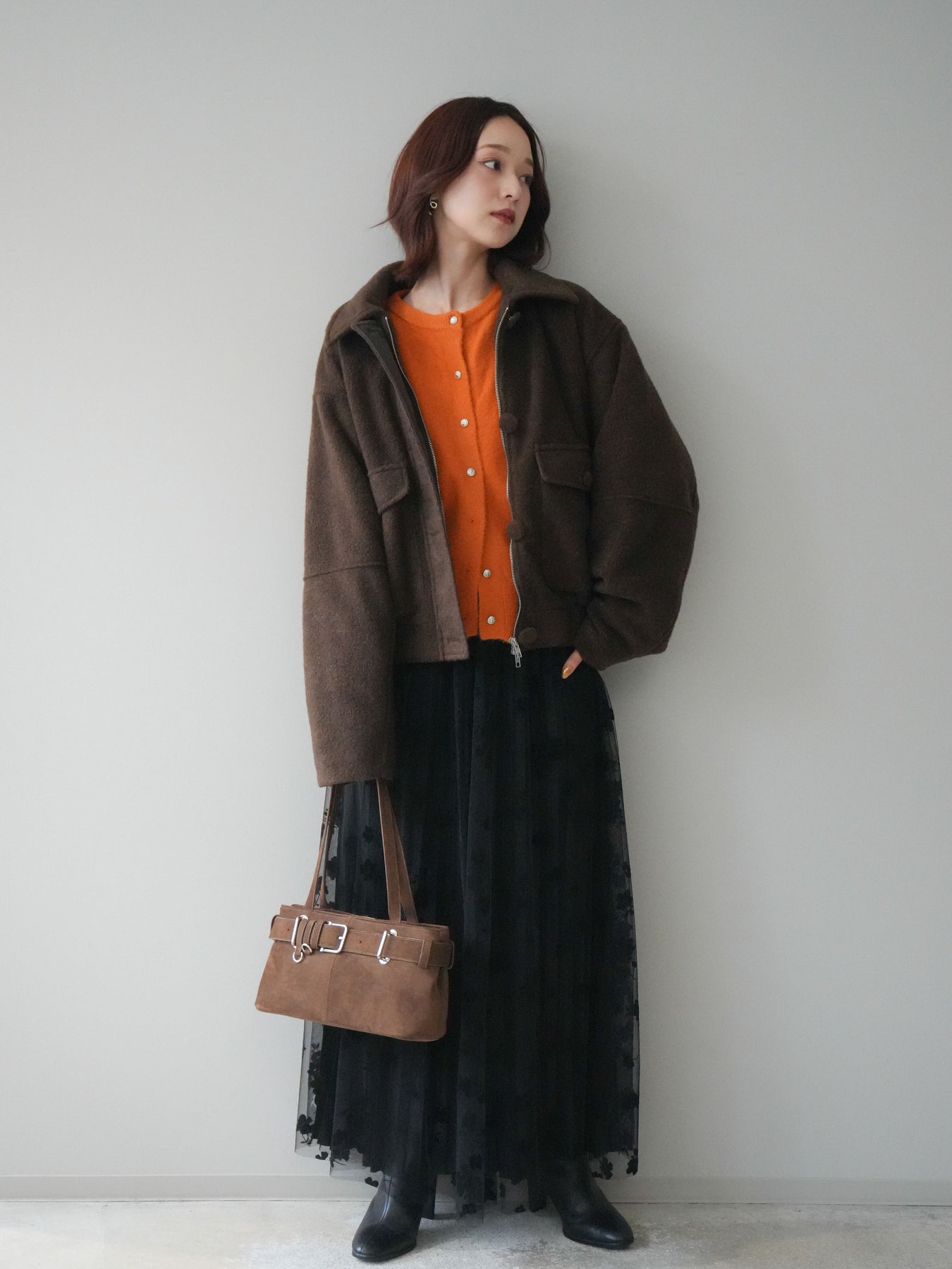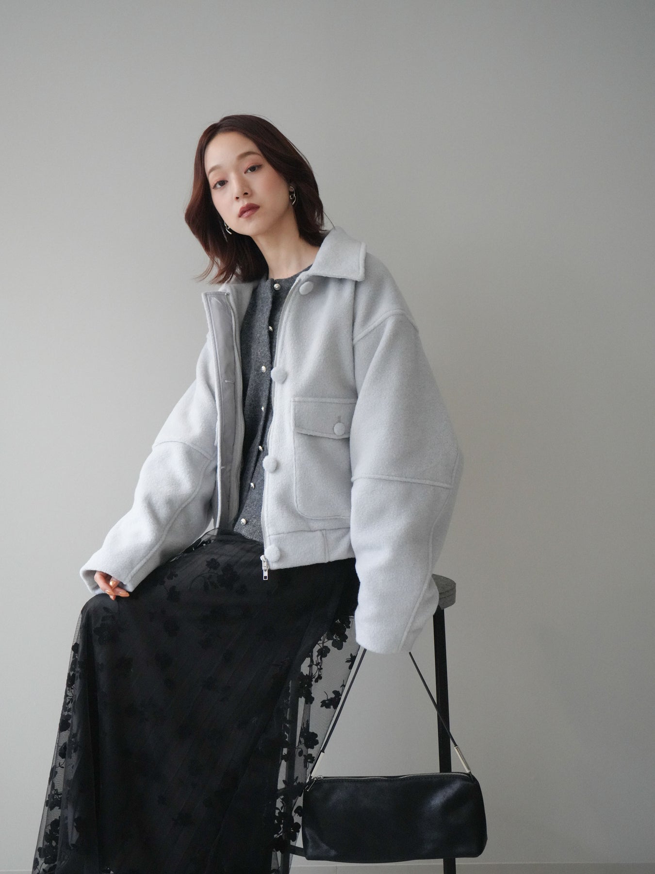 [SET]ウールライクフライトジャケット+フラワーフロッキーチュールプリーツスカート(2set)