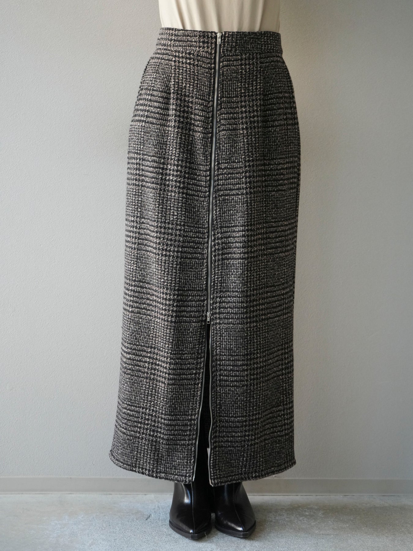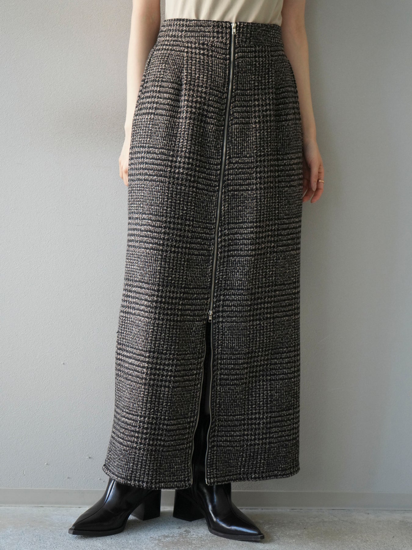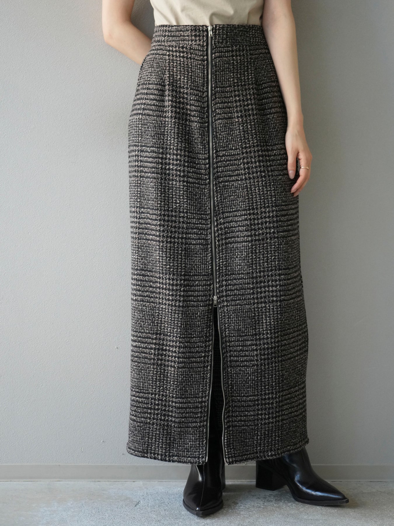 [予約]ツイードジップタイトスカート/brown