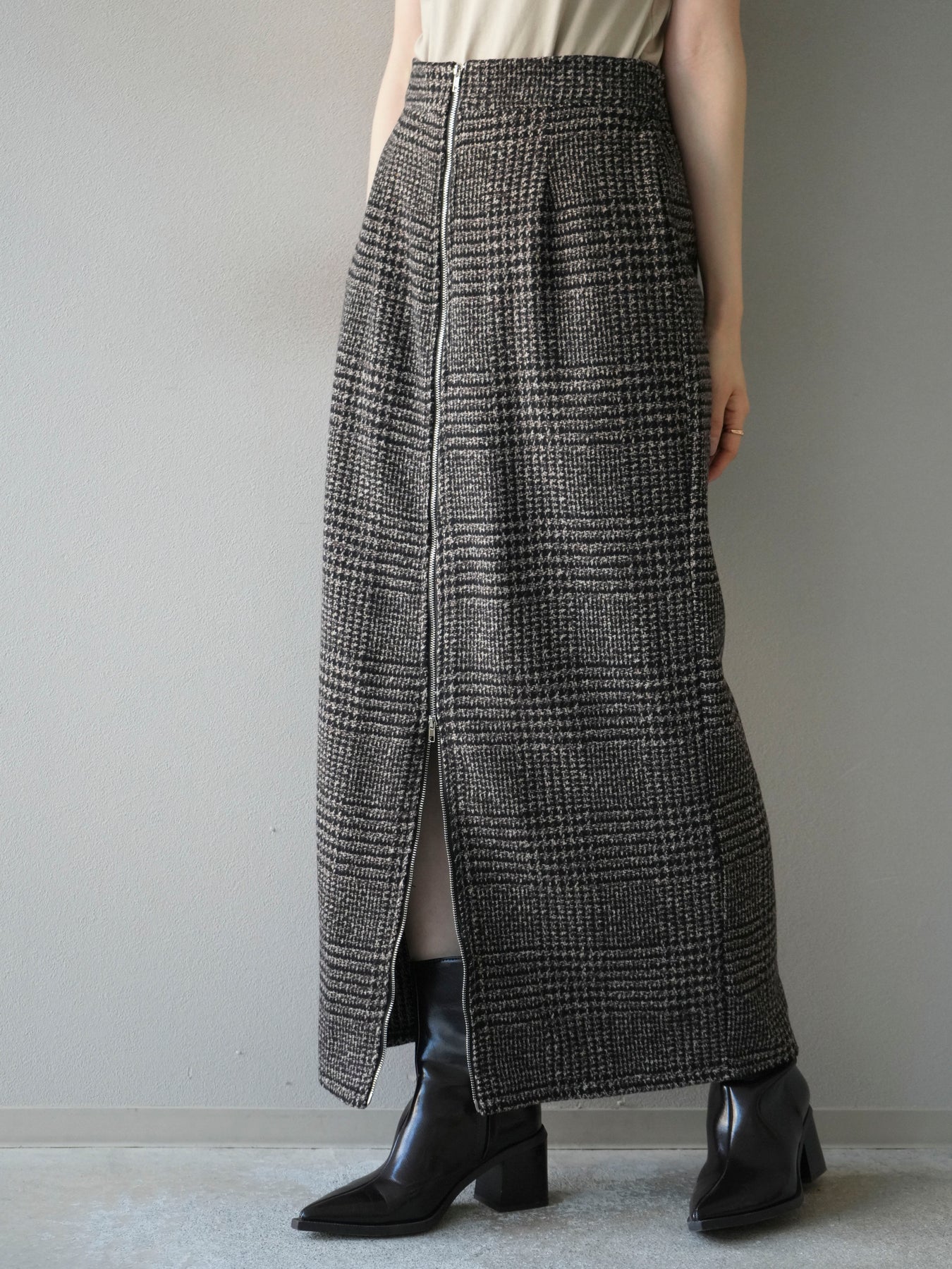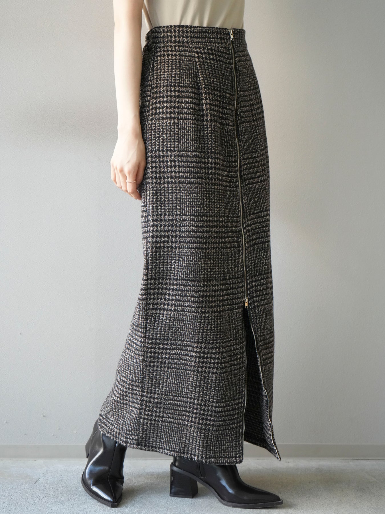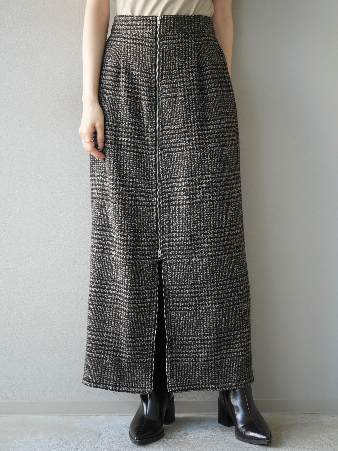 [予約]ツイードジップタイトスカート/brown