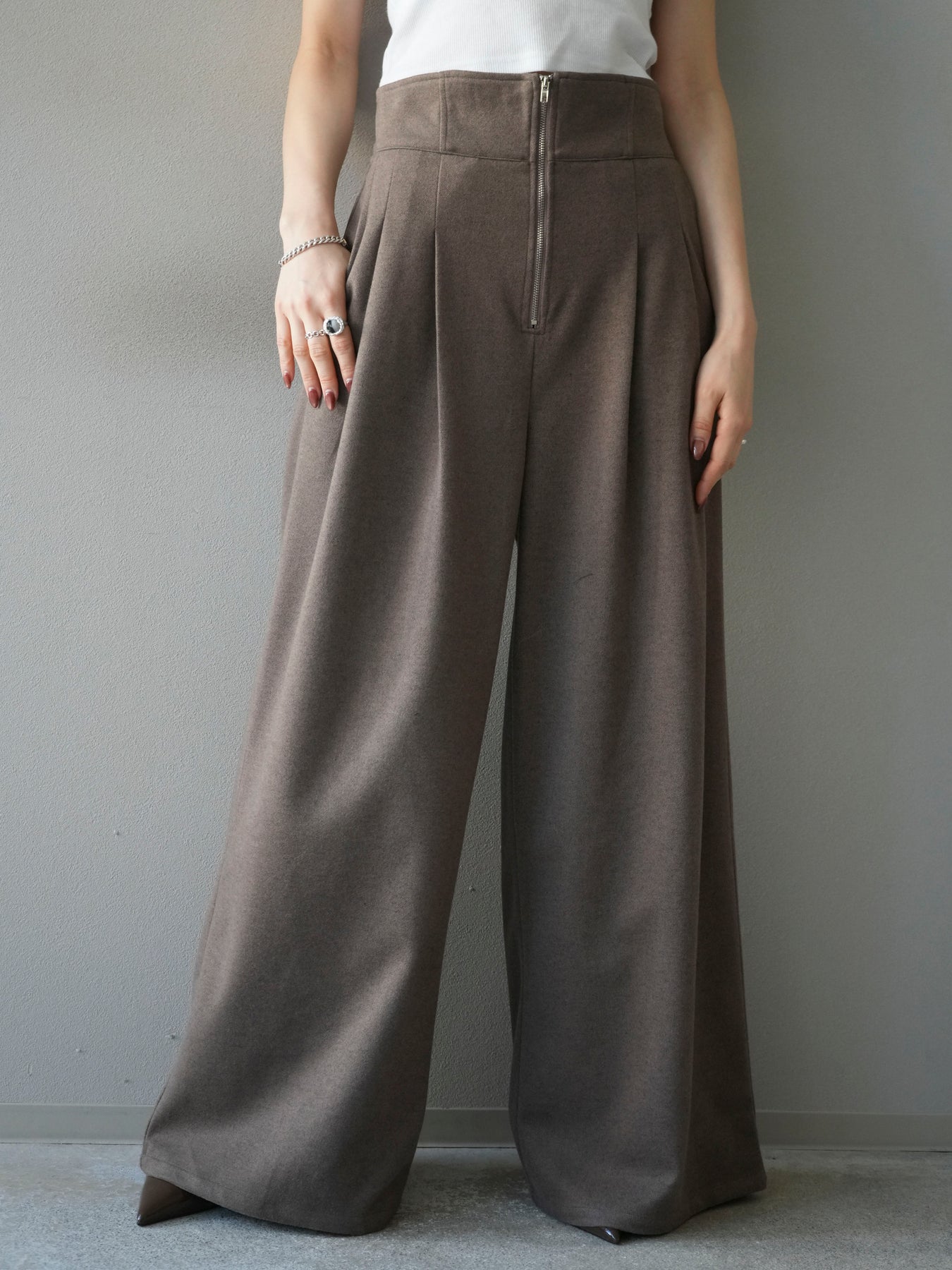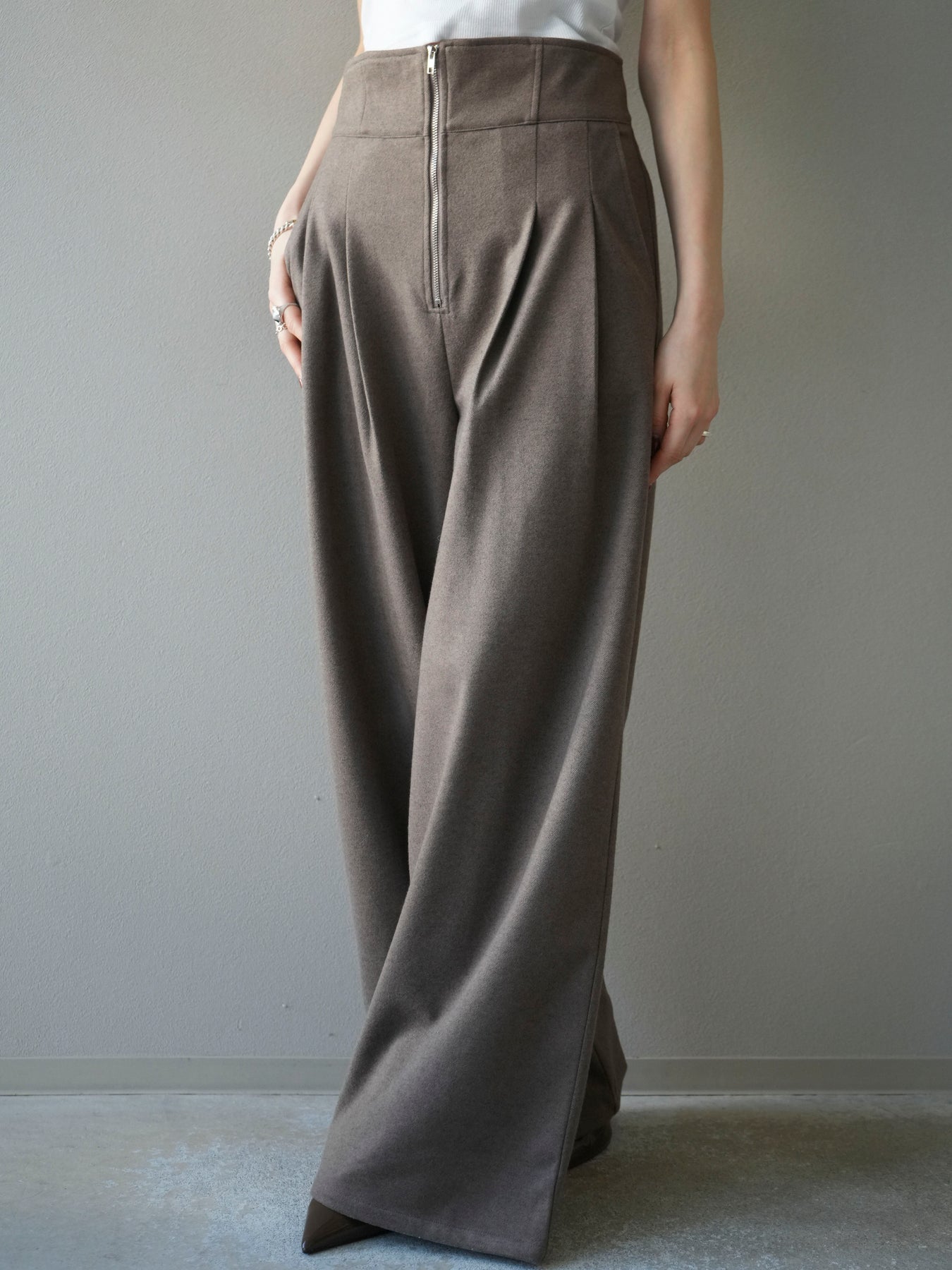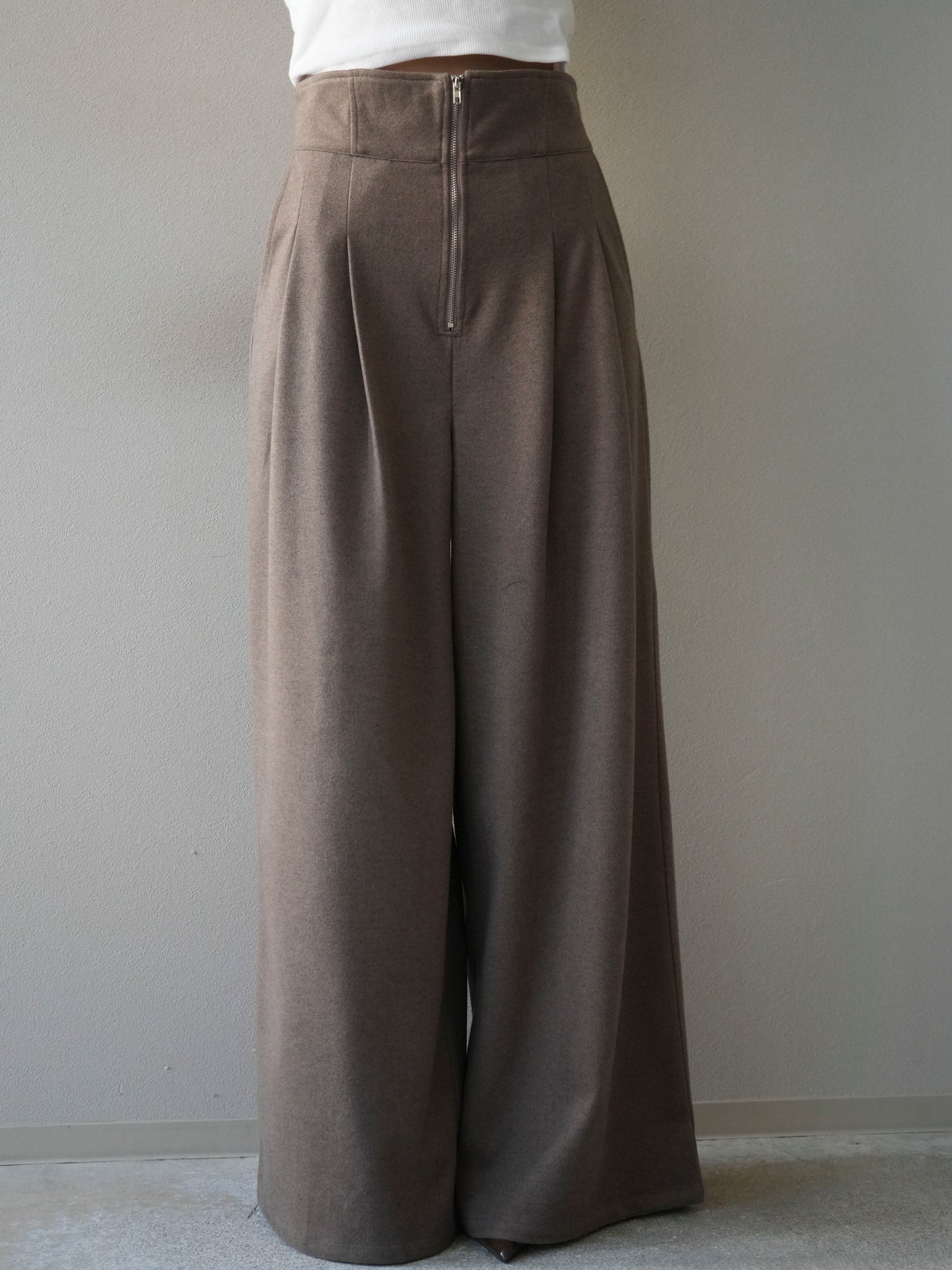 [予約]ウールタッチフロントジップパンツ/mocha