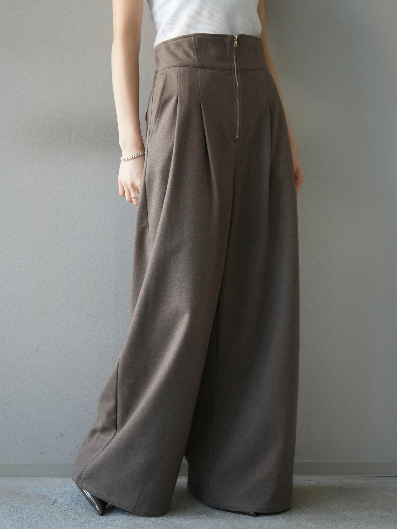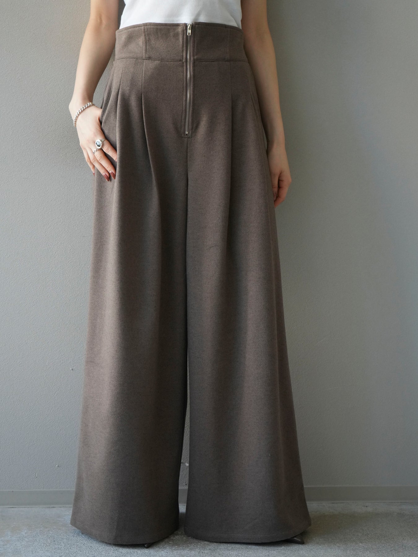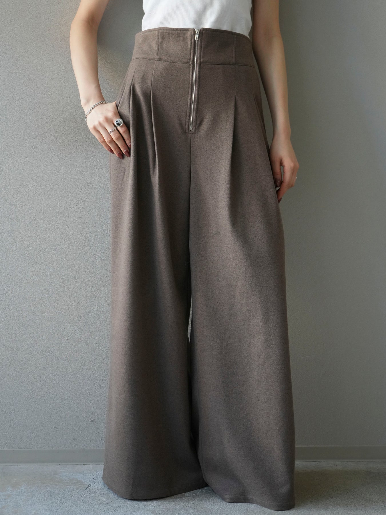 [予約]ウールタッチフロントジップパンツ/mocha