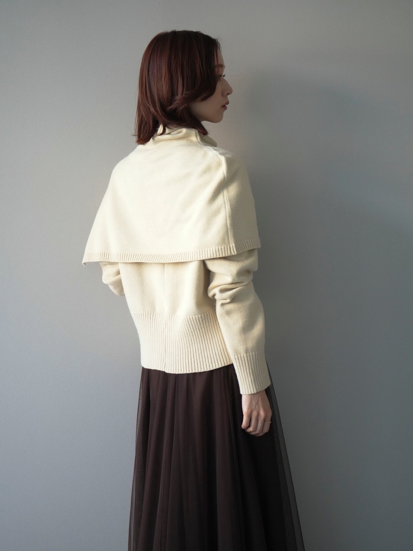 【ニット】肩幅51cm バスト96cm アームホール34cm 袖丈55cm 袖口20cm 着丈54cm 透け感なし 伸縮性あり 【スヌード】首元幅26cm 着丈42cm